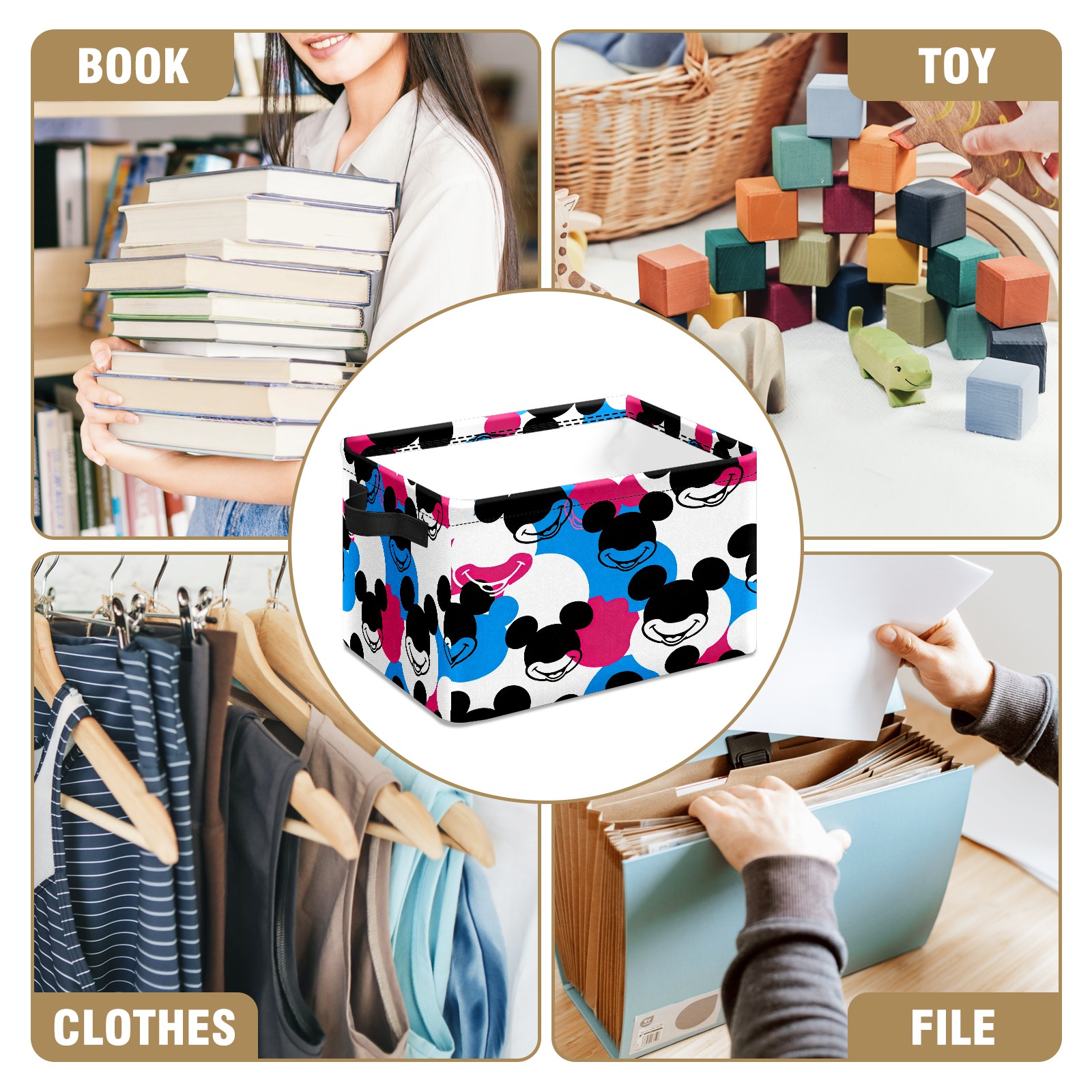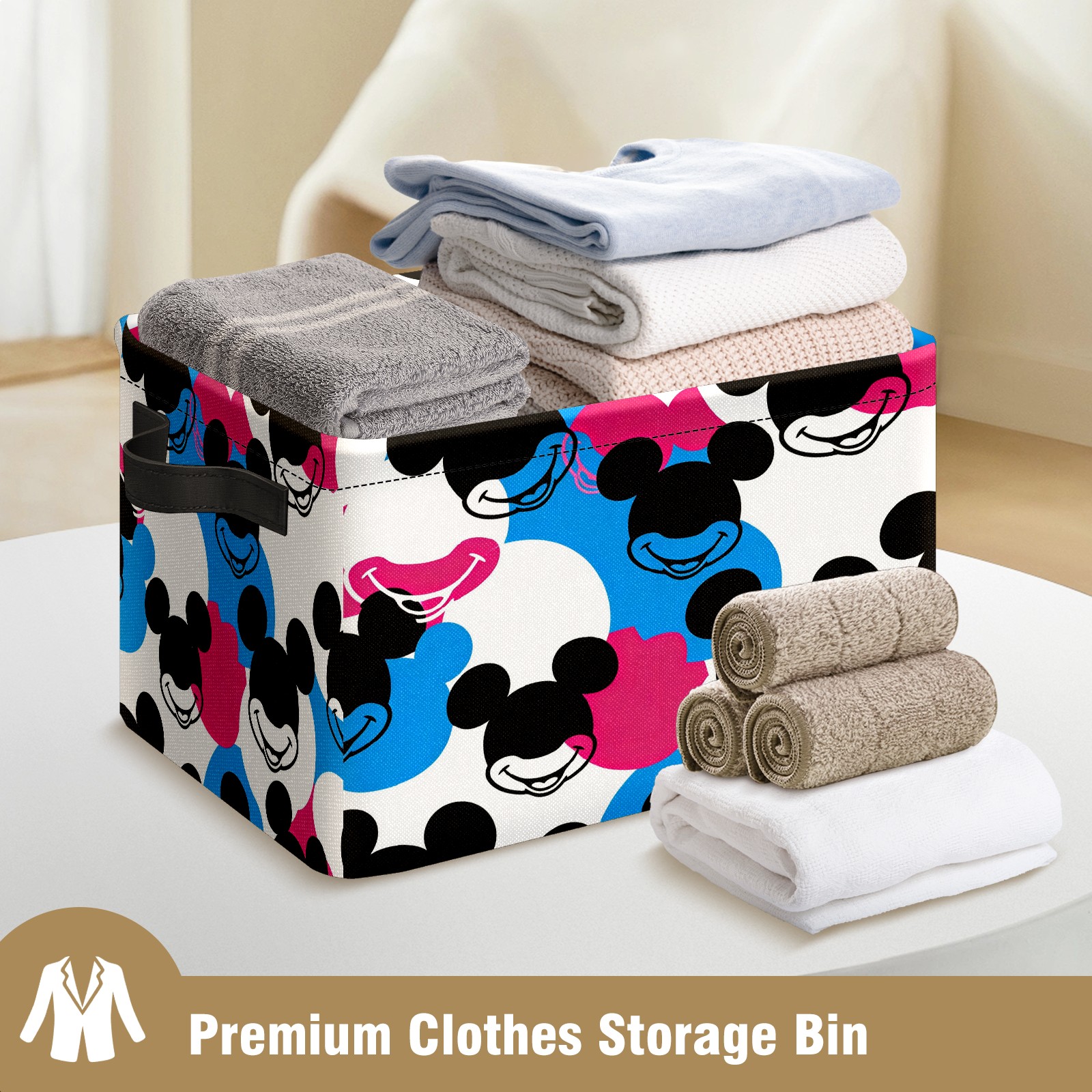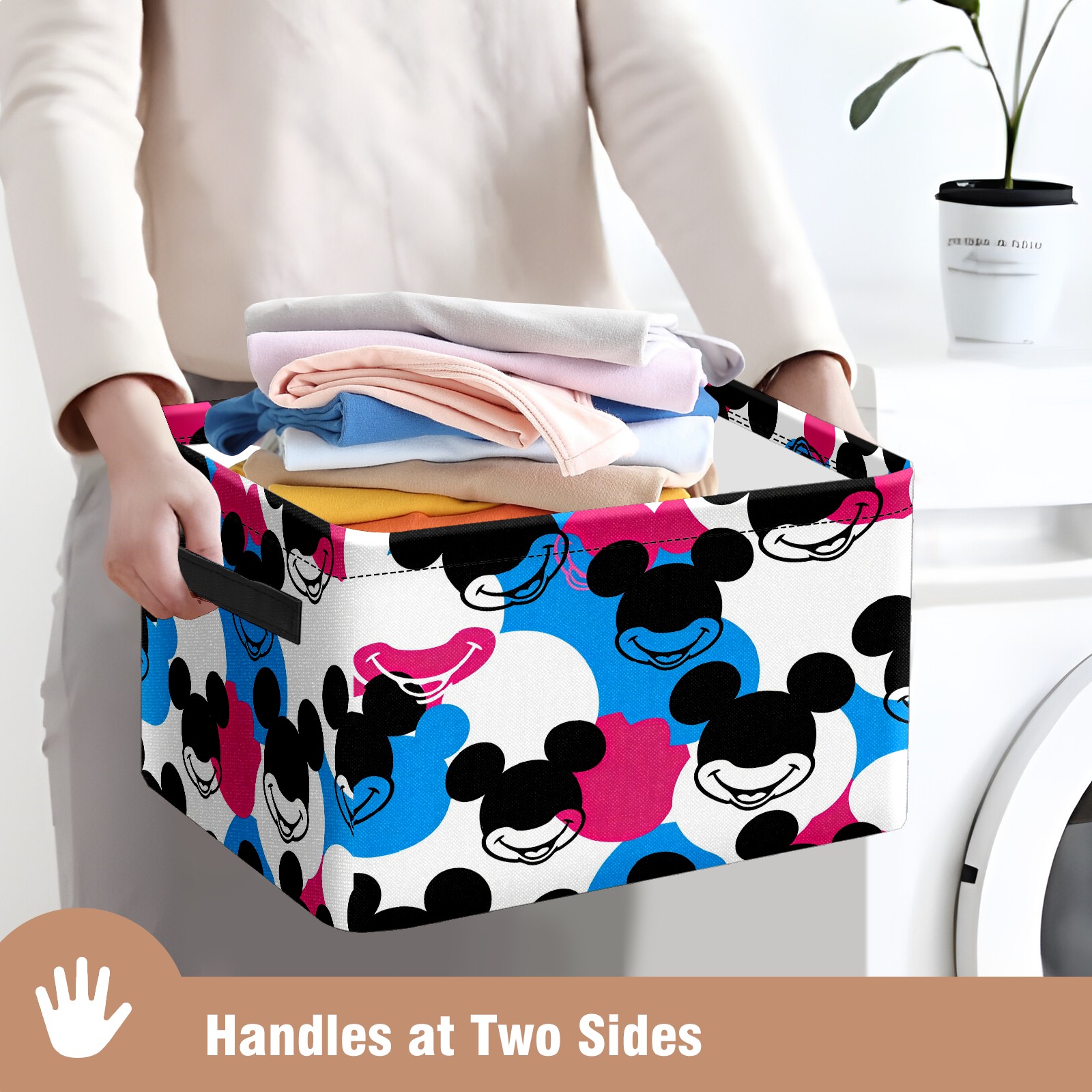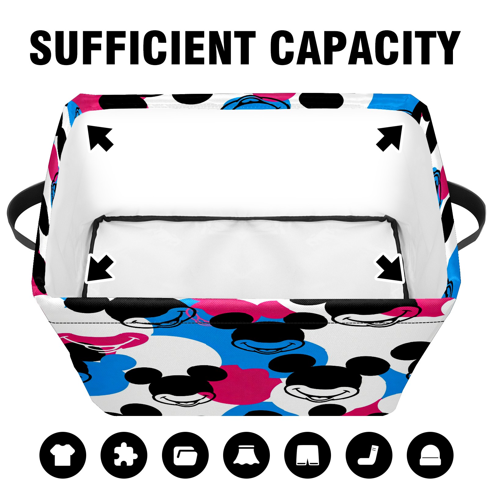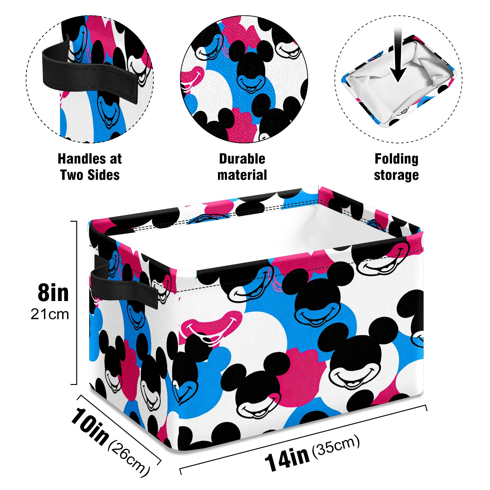 Foldable and Stackable Fabric Storage Basket for Home Organization with Handles, Decorative Closet Bins for Shelves and Laundry Storage( Dynamic Mouse Black)