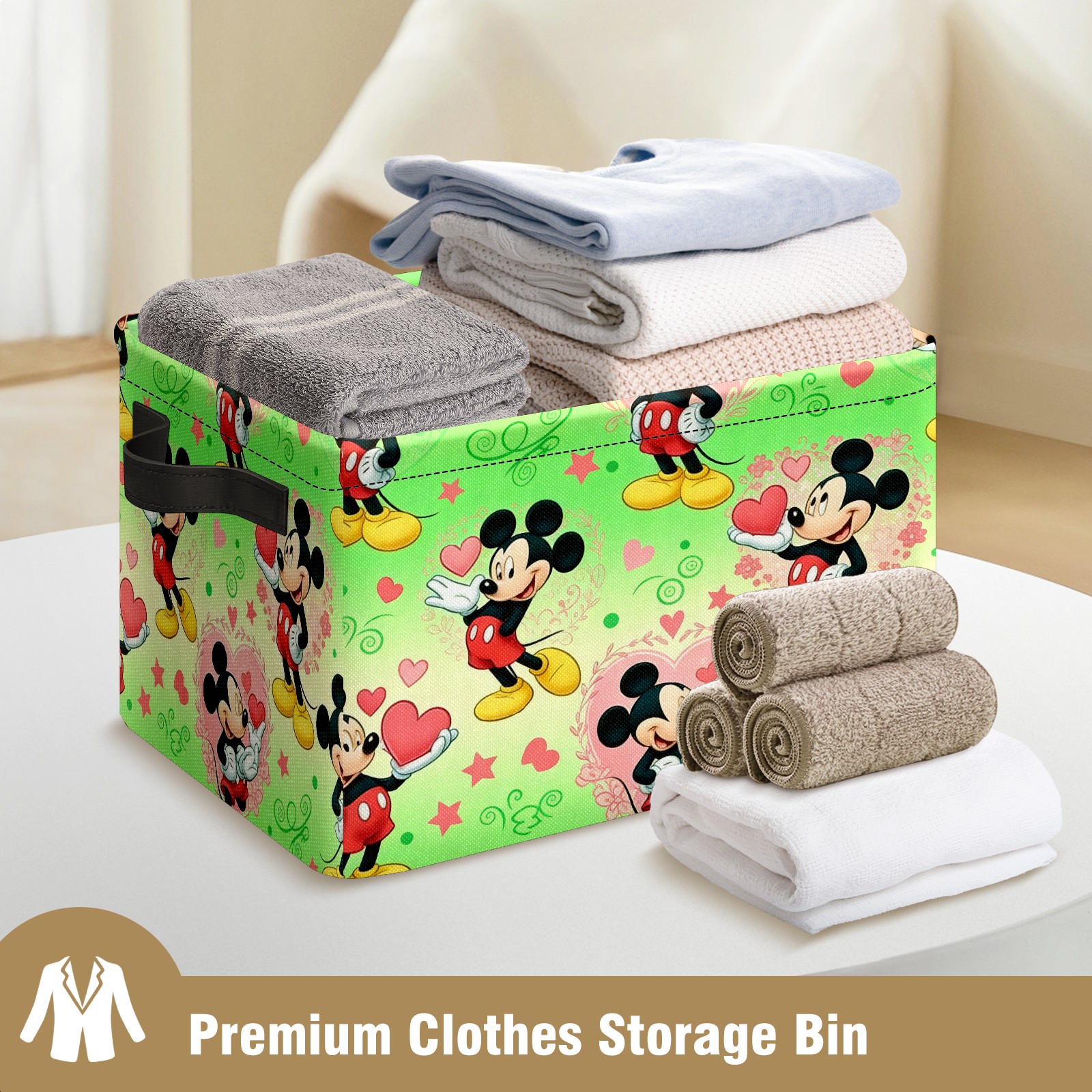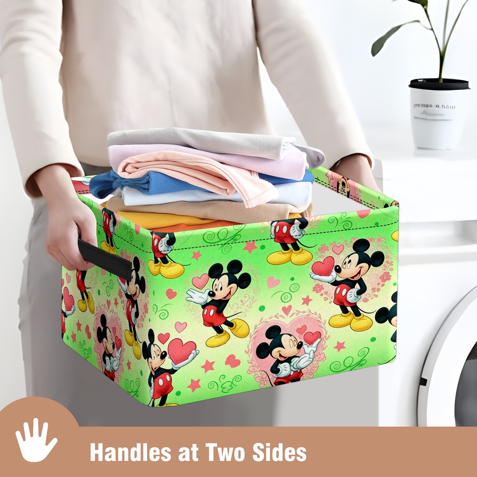 Foldable and Stackable Fabric Storage Basket for Home Organization with Handles, Decorative Closet Bins for Shelves and Laundry Storage( Fresh Mouse Green)
