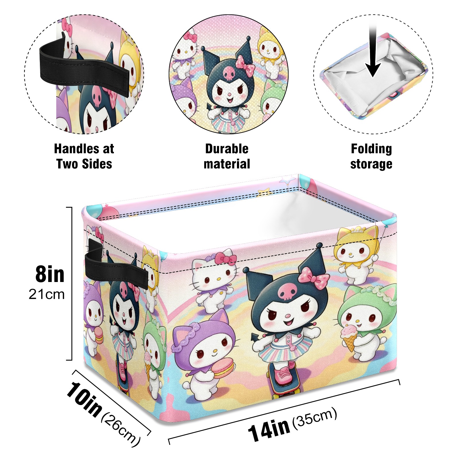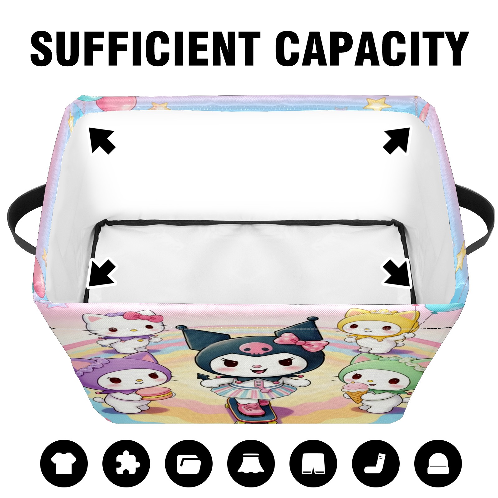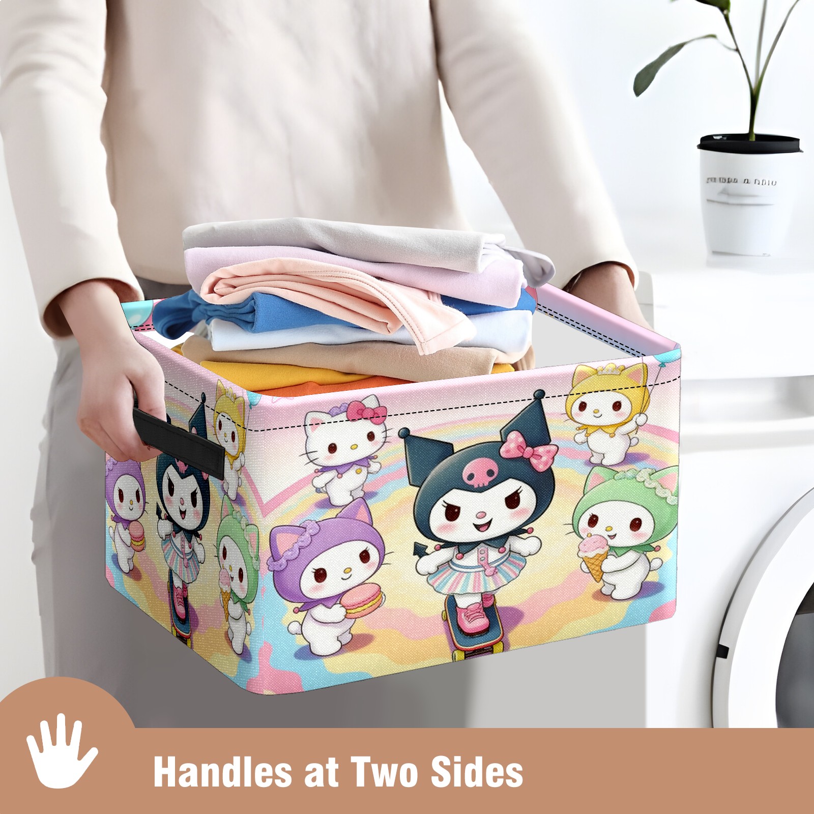 Foldable and Stackable Fabric Storage Basket for Home Organization with Handles, Decorative Closet Bins for Shelves and Laundry Storage( Sanrio Character Pink)