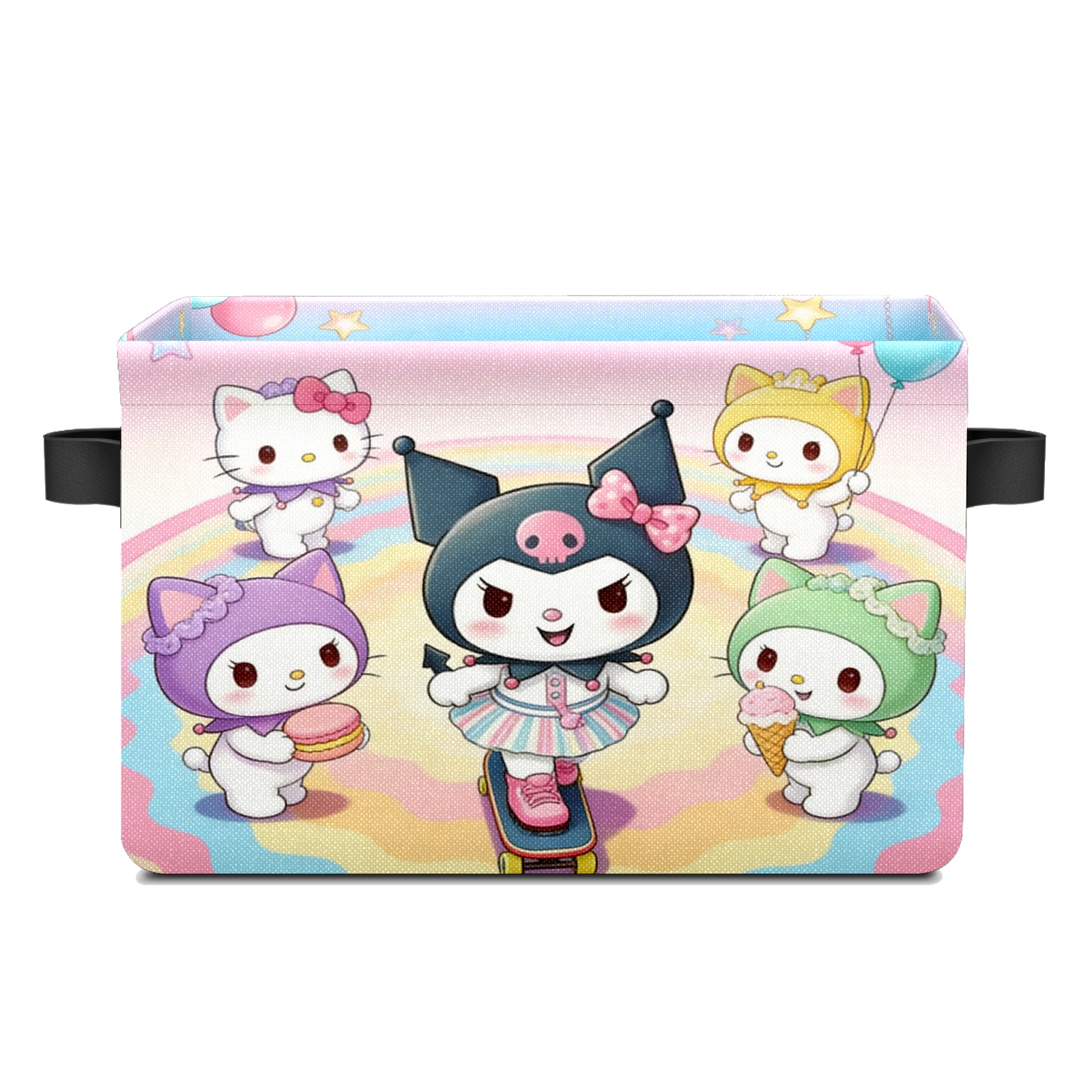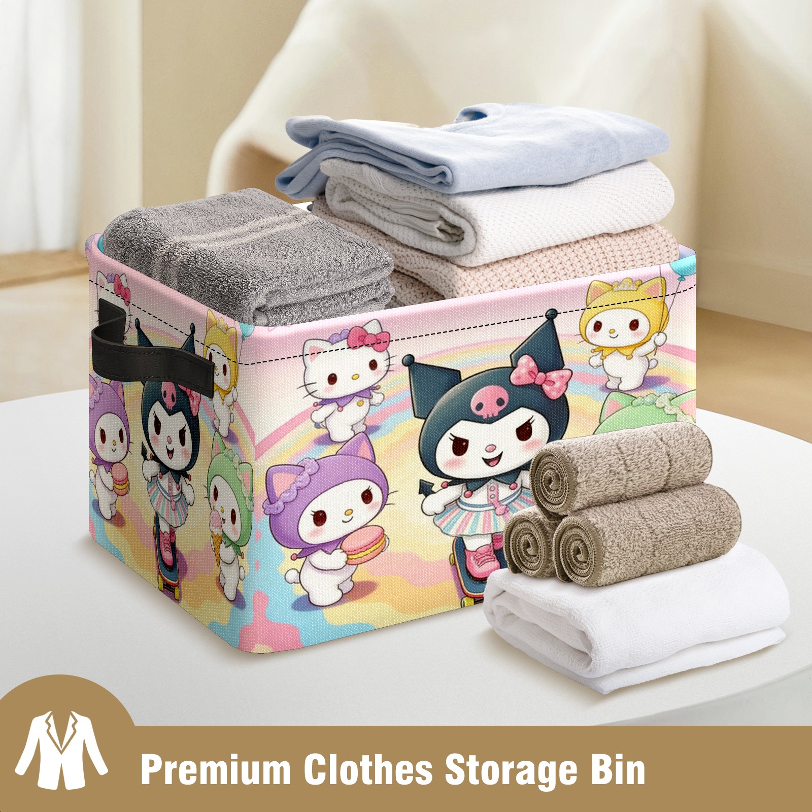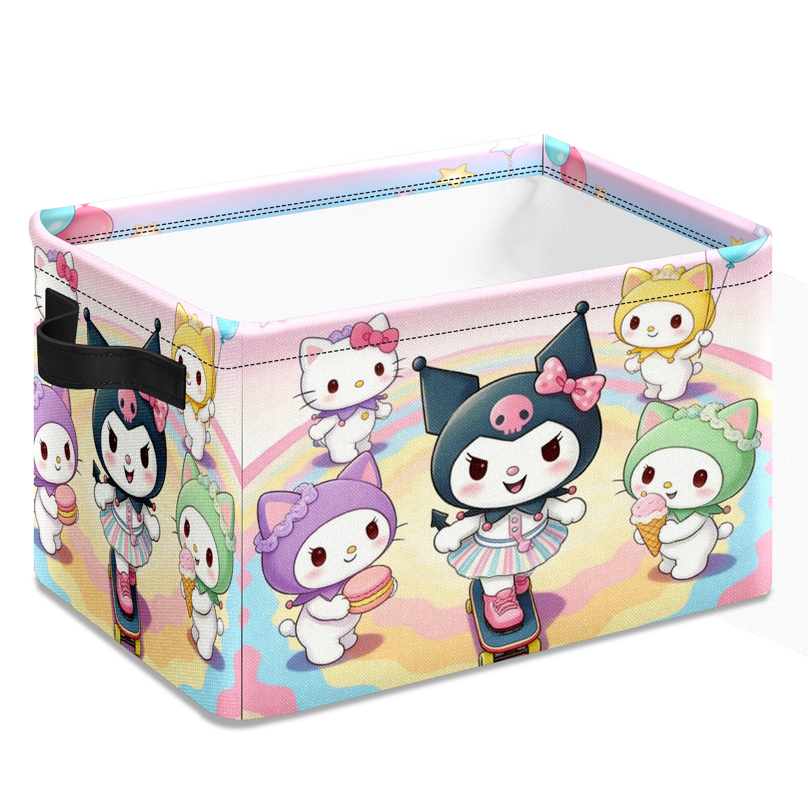 Foldable and Stackable Fabric Storage Basket for Home Organization with Handles, Decorative Closet Bins for Shelves and Laundry Storage( Sanrio Character Pink)