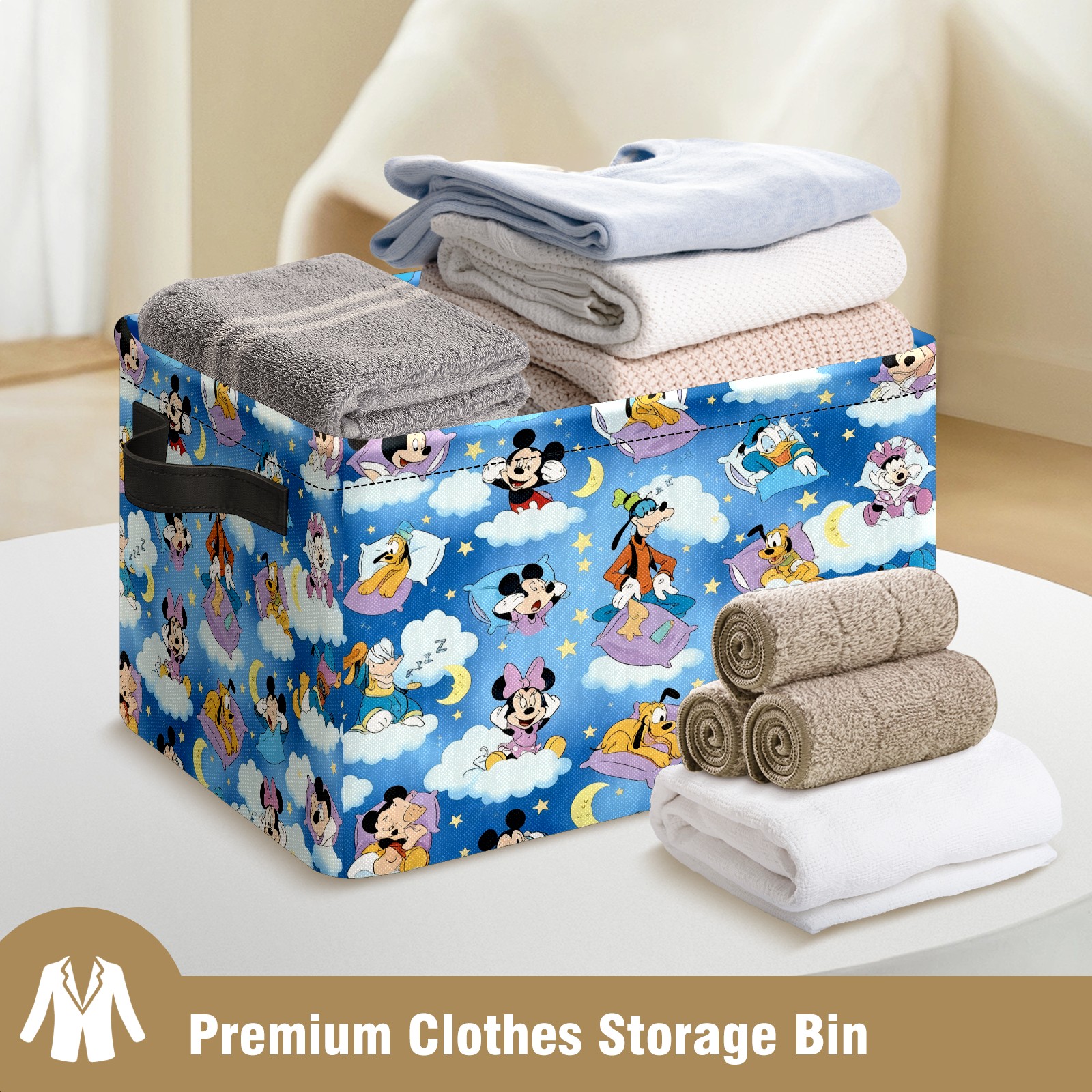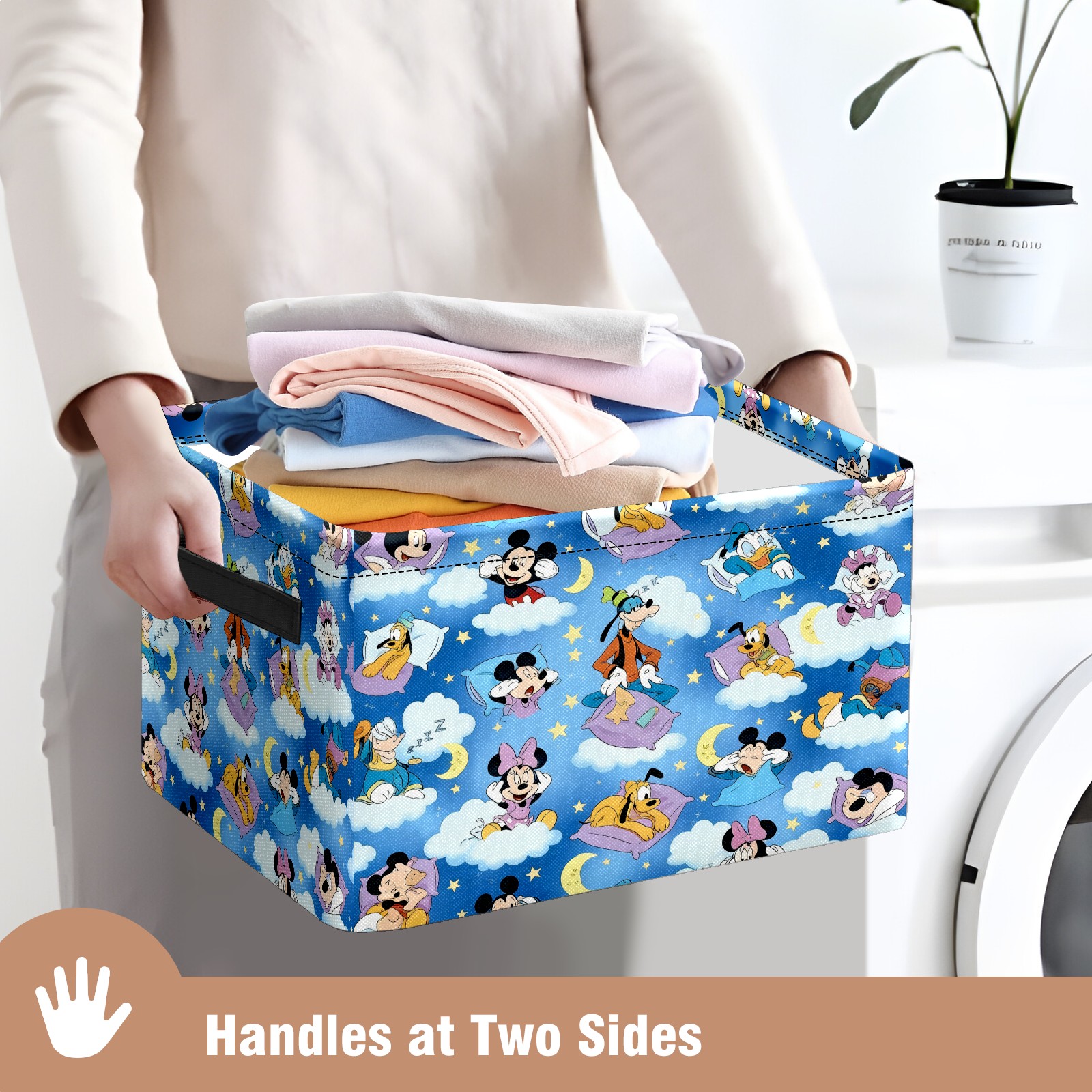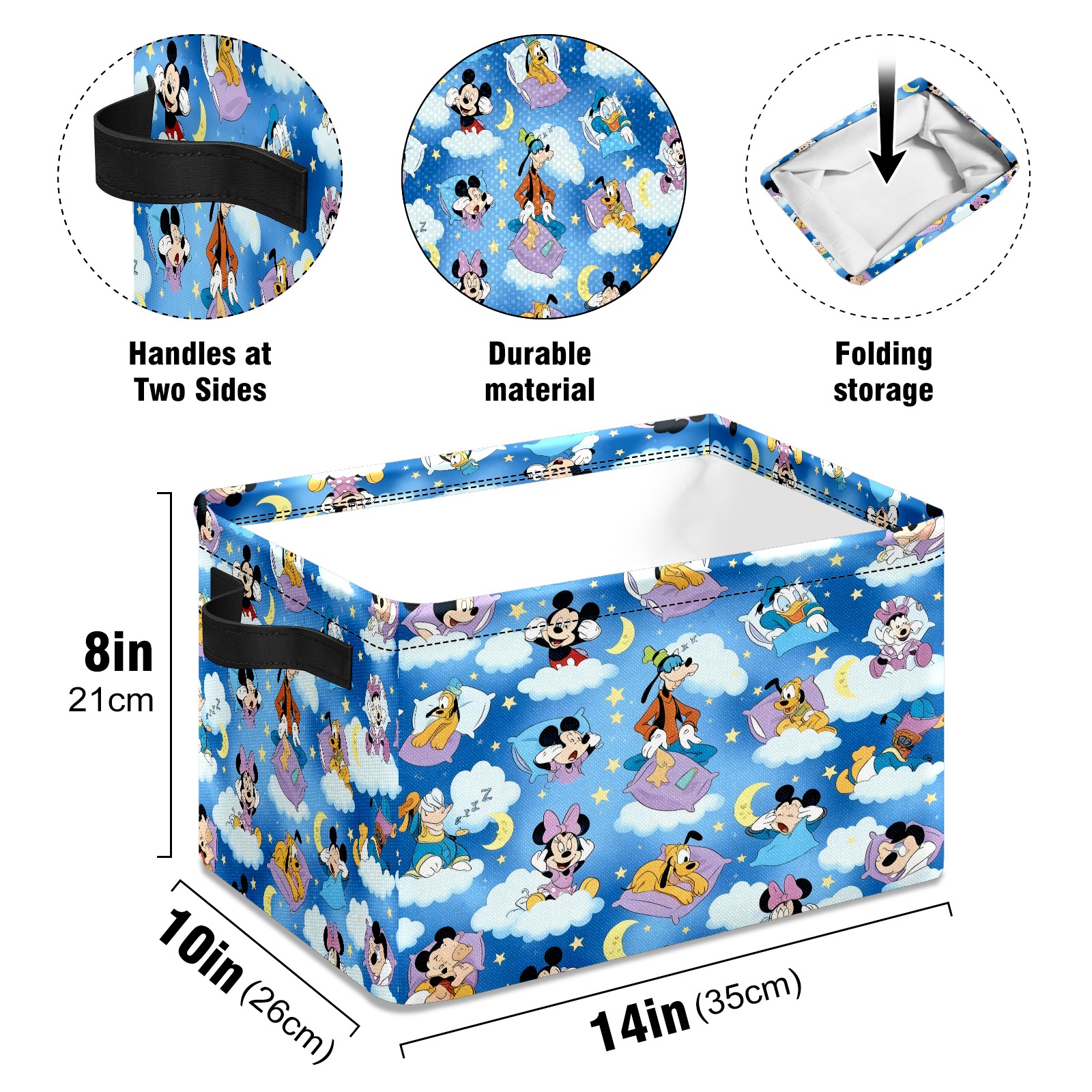 Foldable and Stackable Fabric Storage Basket for Home Organization with Handles, Decorative Closet Bins for Shelves and Laundry Storage( Vibrant Character Blue)
