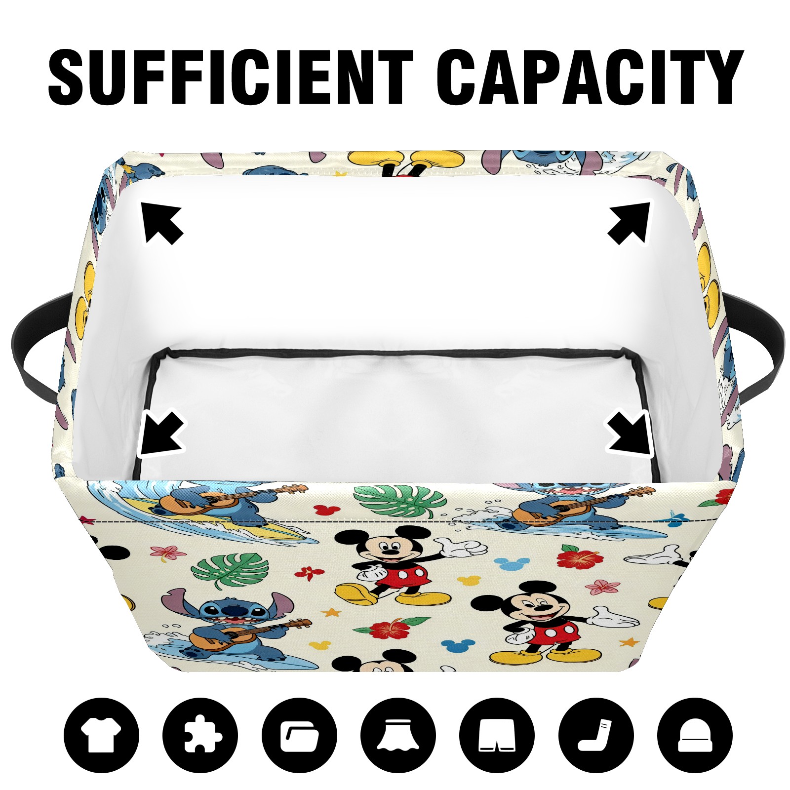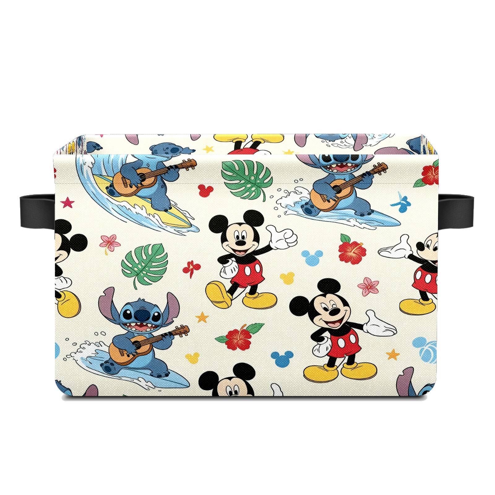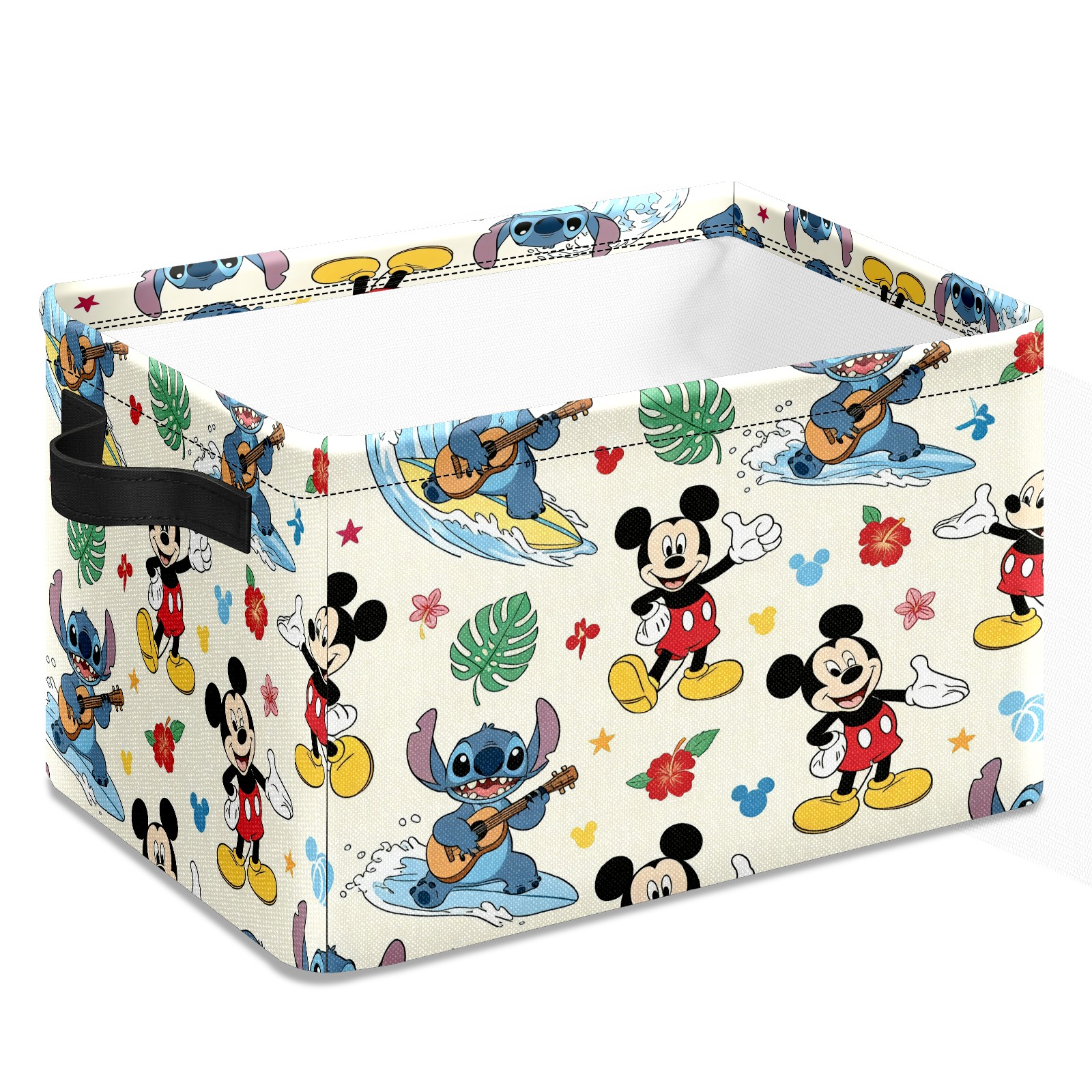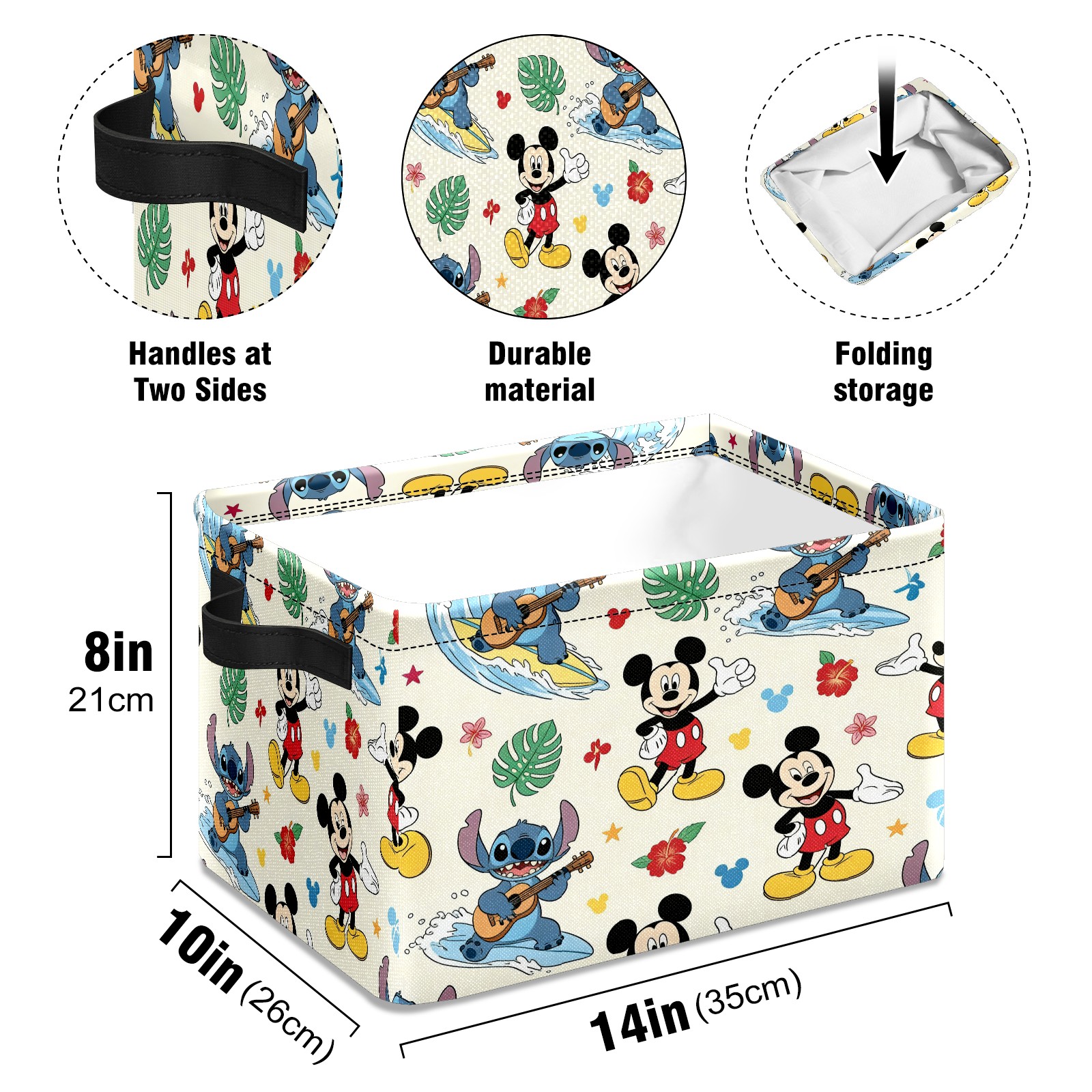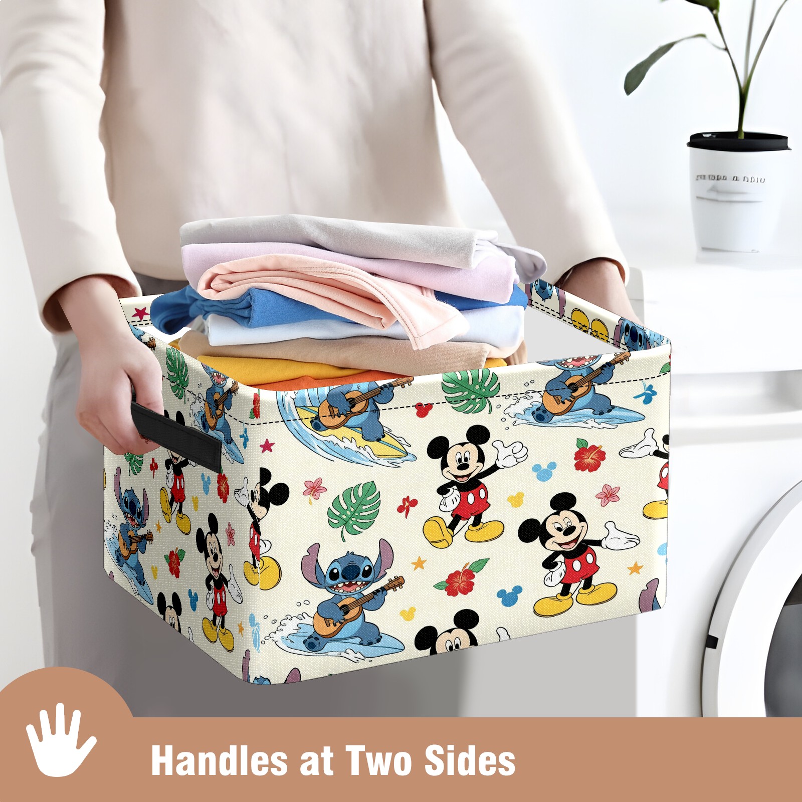 Foldable and Stackable Fabric Storage Basket for Home Organization with Handles, Decorative Closet Bins for Shelves and Laundry Storage( Stitch&Mi Brown)