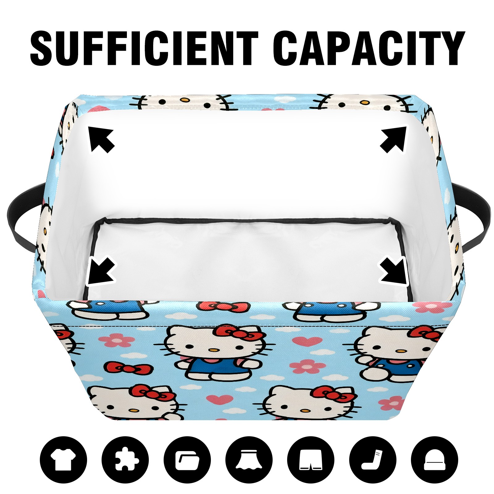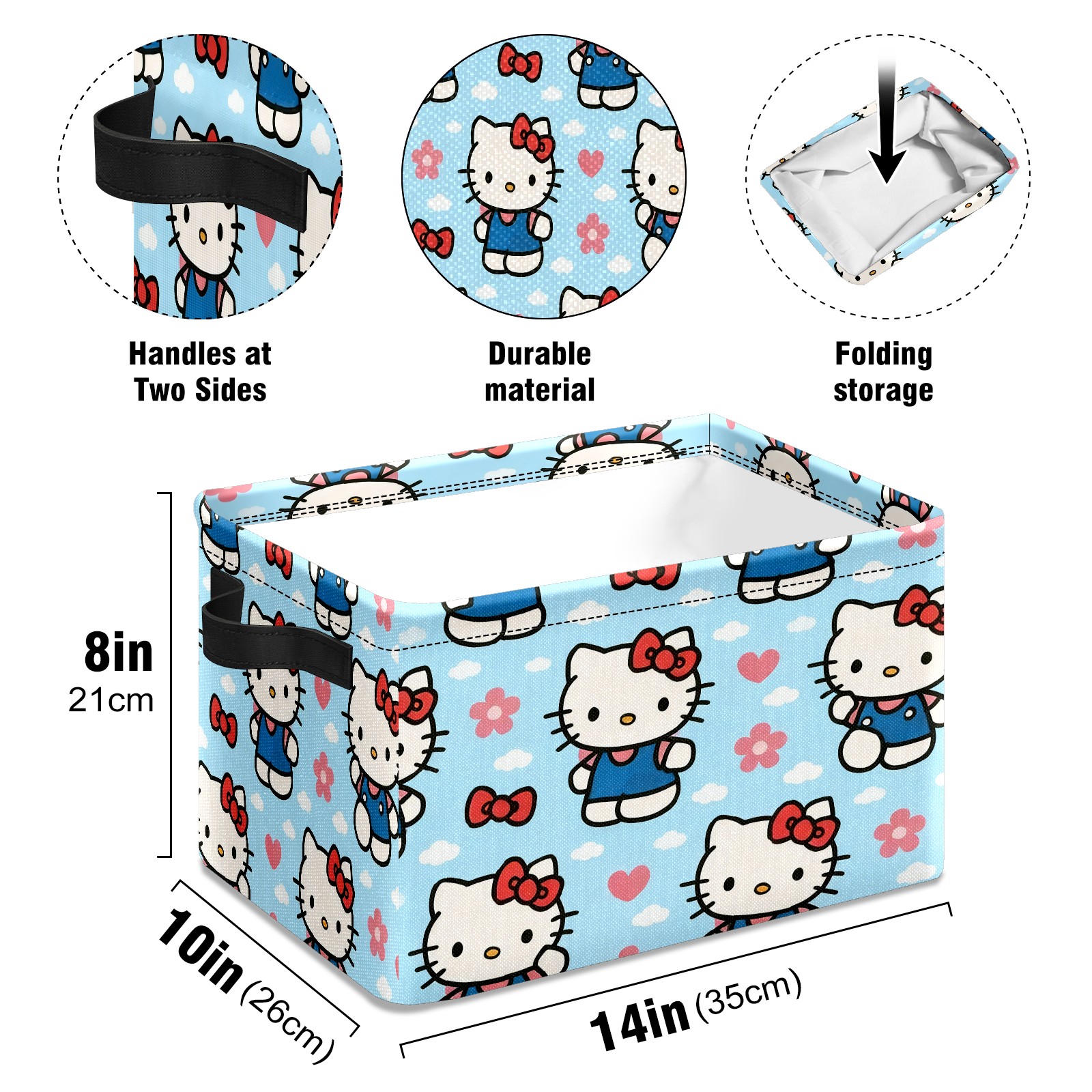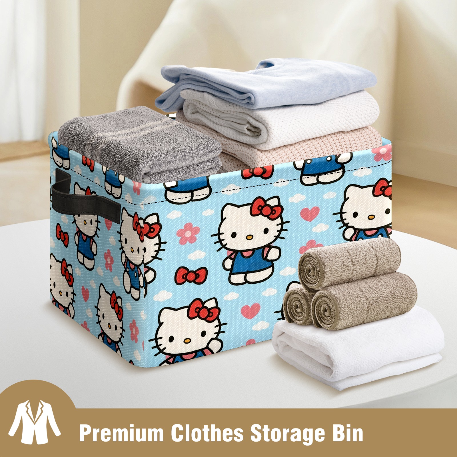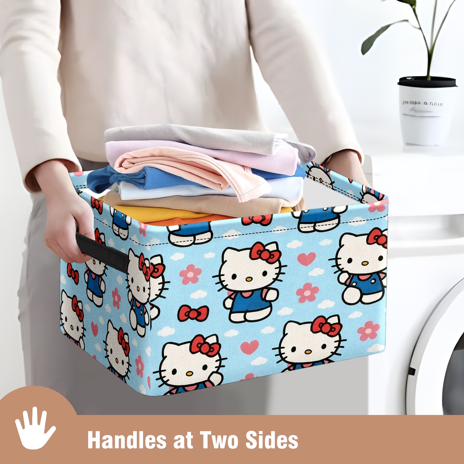 Foldable and Stackable Fabric Storage Basket for Home Organization with Handles, Decorative Closet Bins for Shelves and Laundry Storage( Warm Hello Kitty Pink)