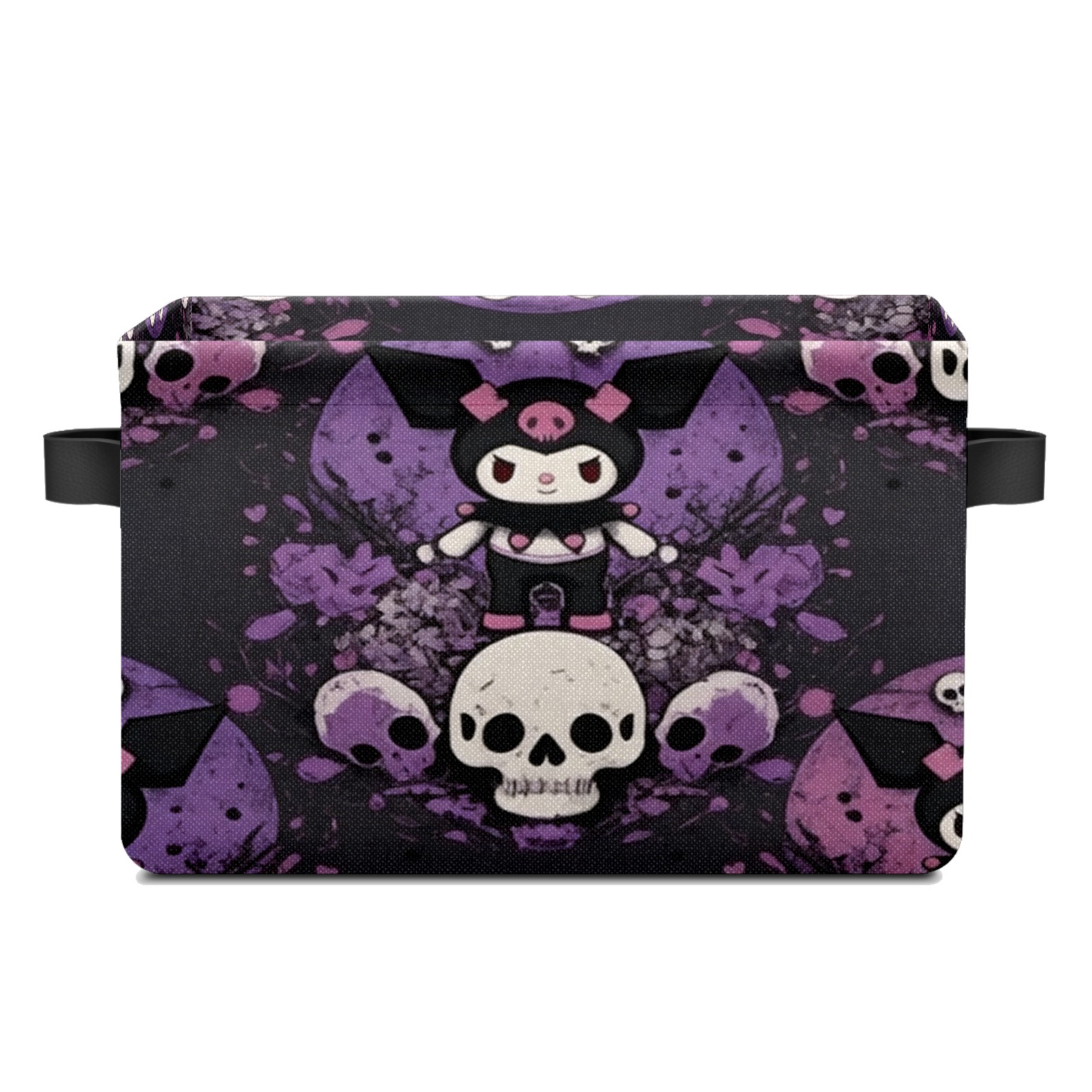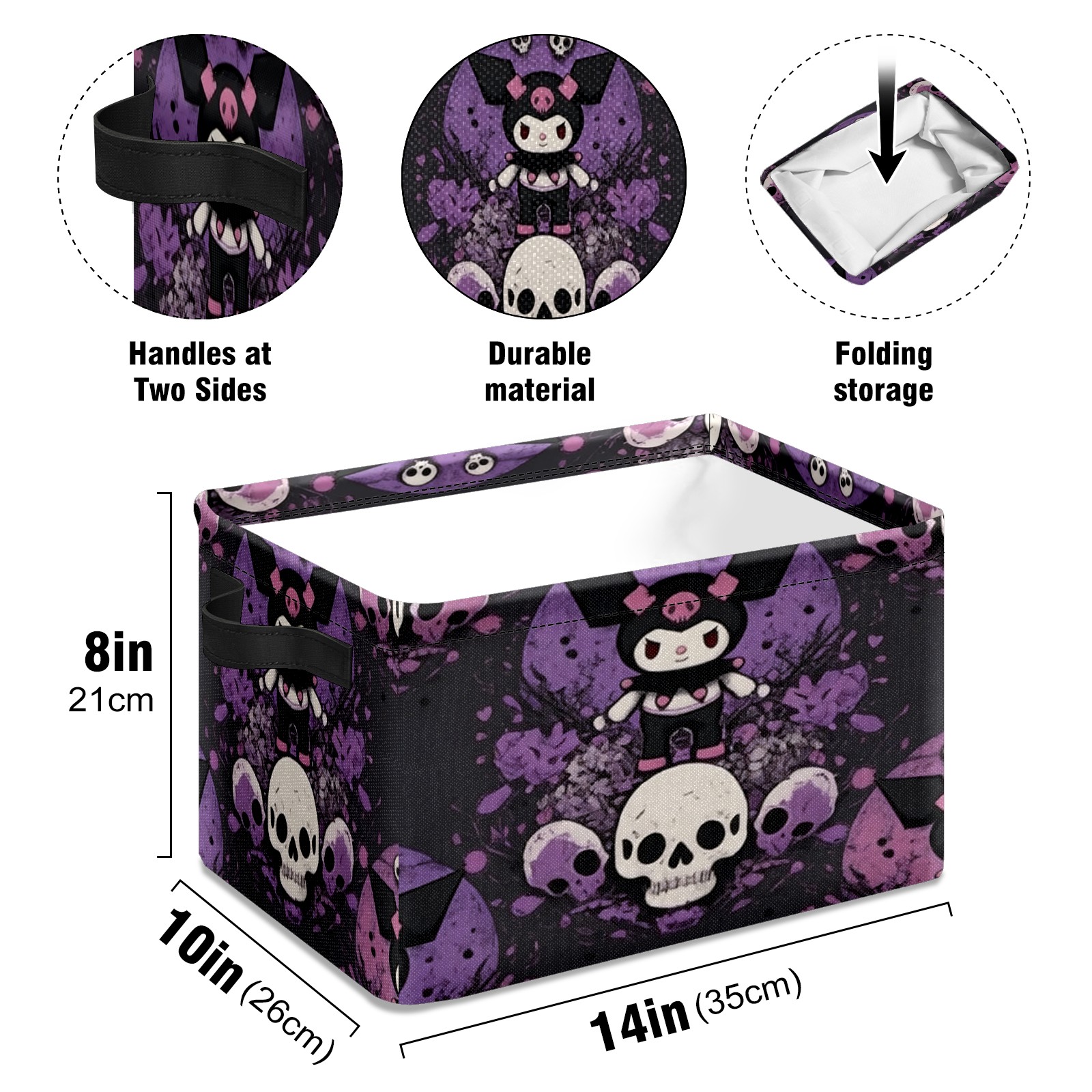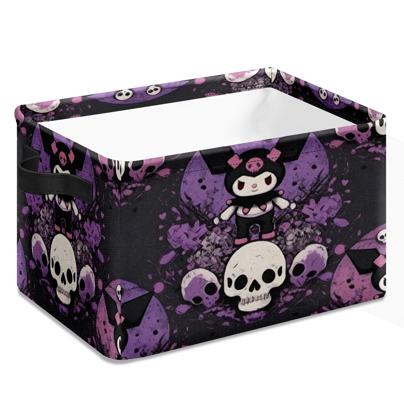 Foldable and Stackable Fabric Storage Basket for Home Organization with Handles, Decorative Closet Bins for Shelves and Laundry Storage( Dark Kuromi Purple)