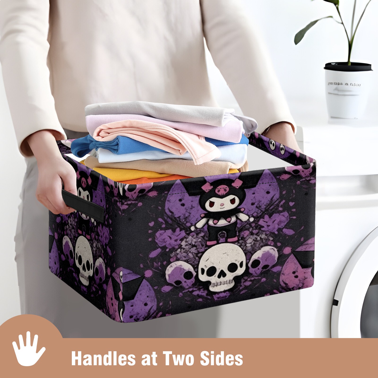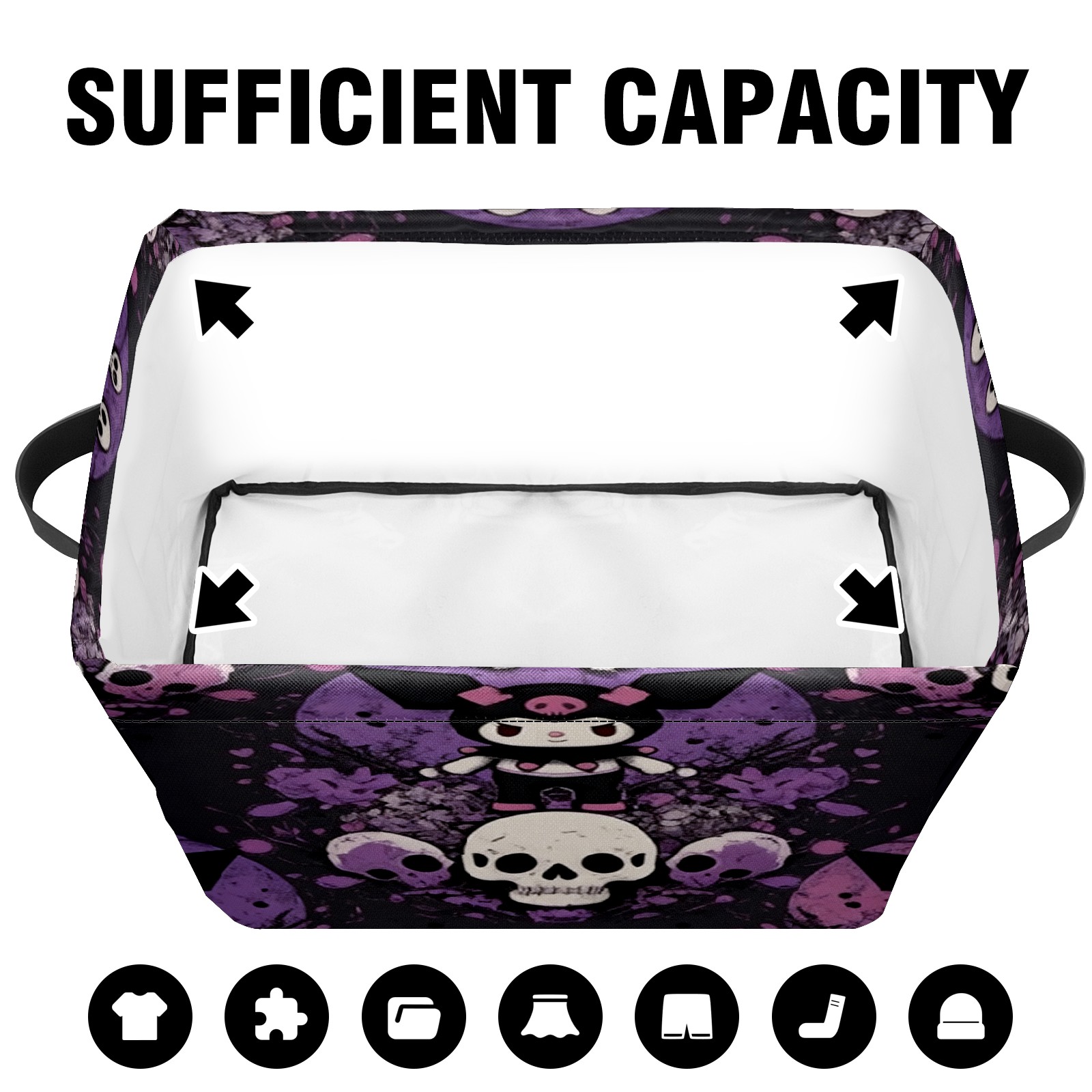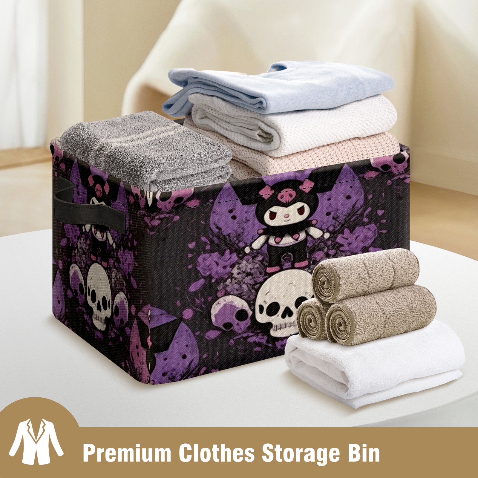 Foldable and Stackable Fabric Storage Basket for Home Organization with Handles, Decorative Closet Bins for Shelves and Laundry Storage( Dark Kuromi Purple)