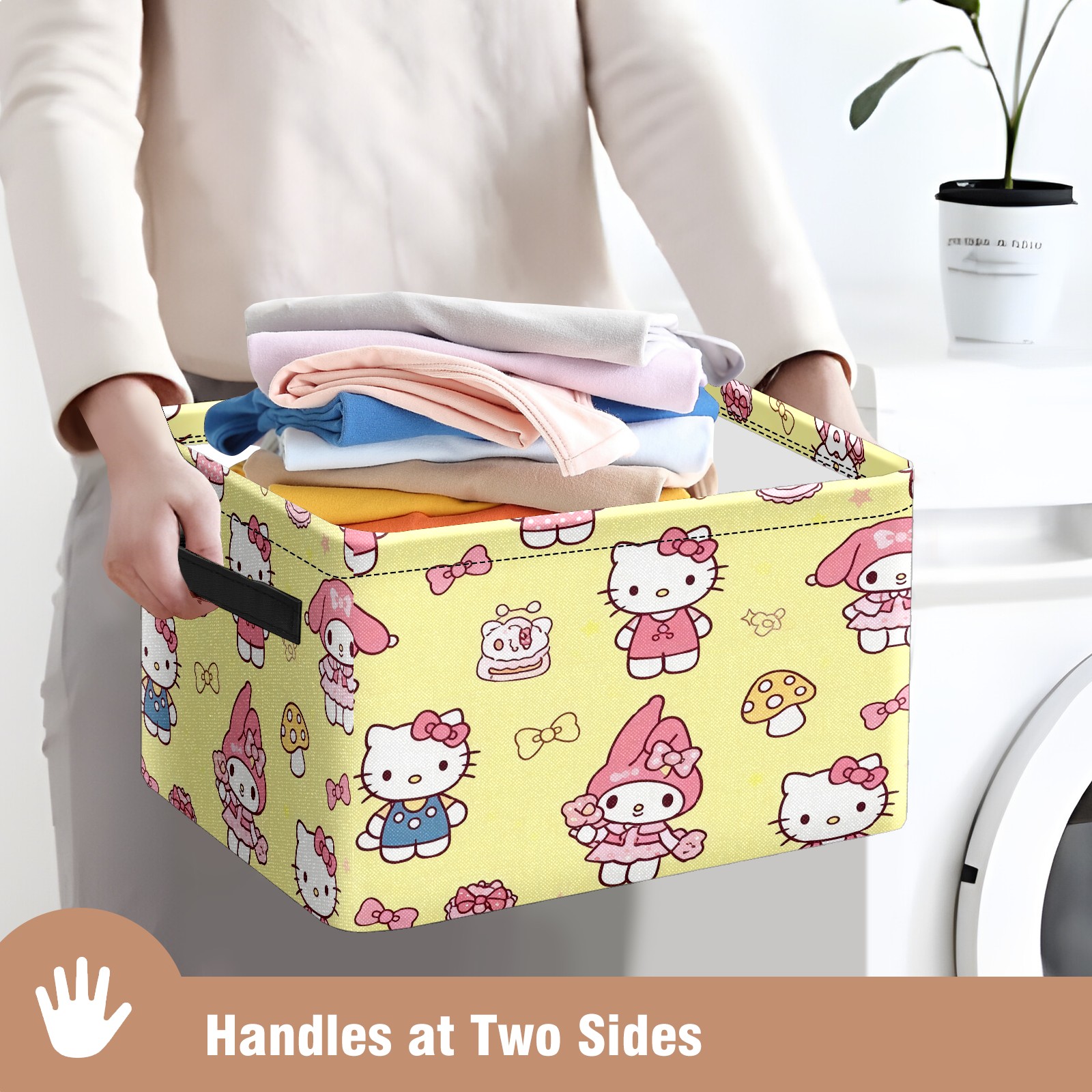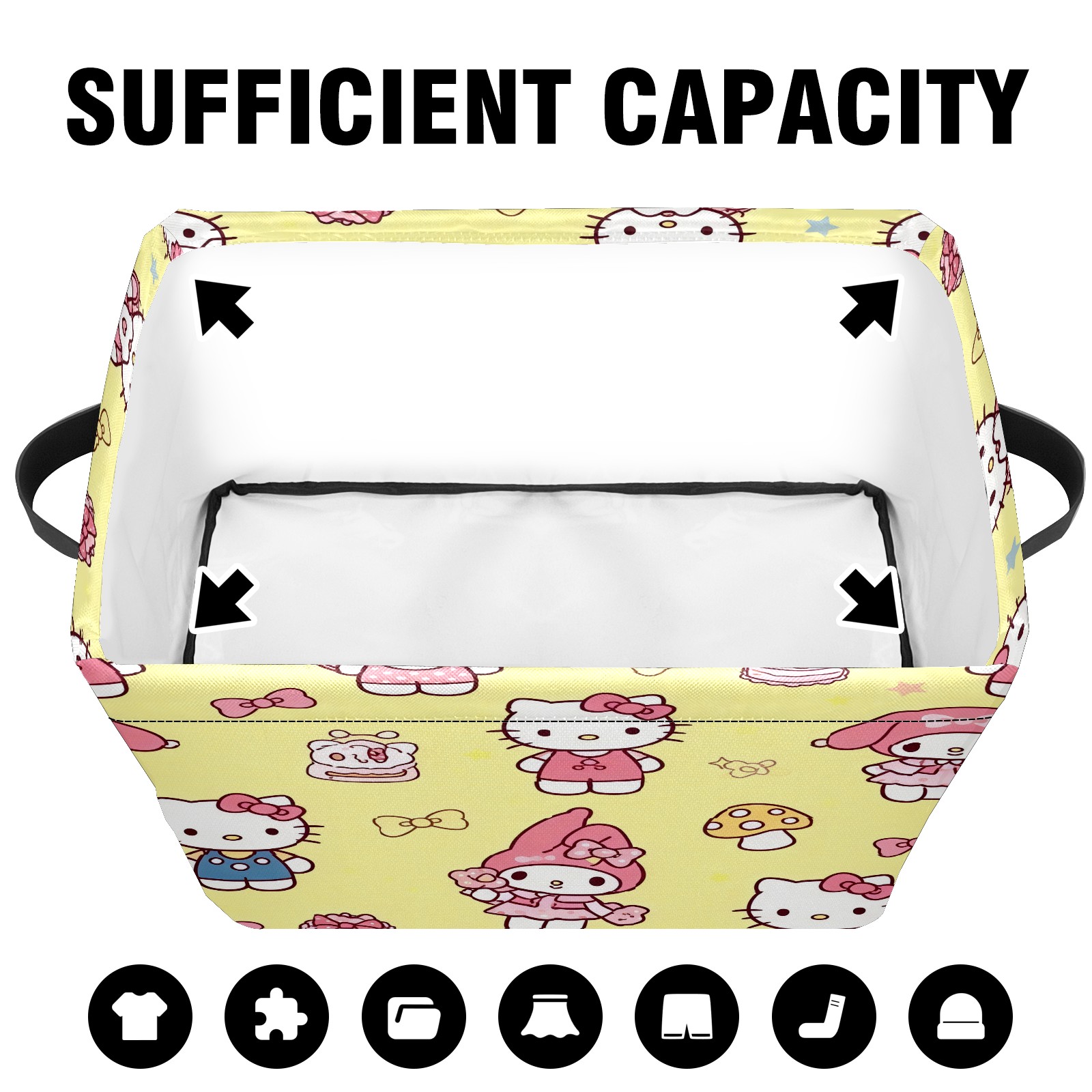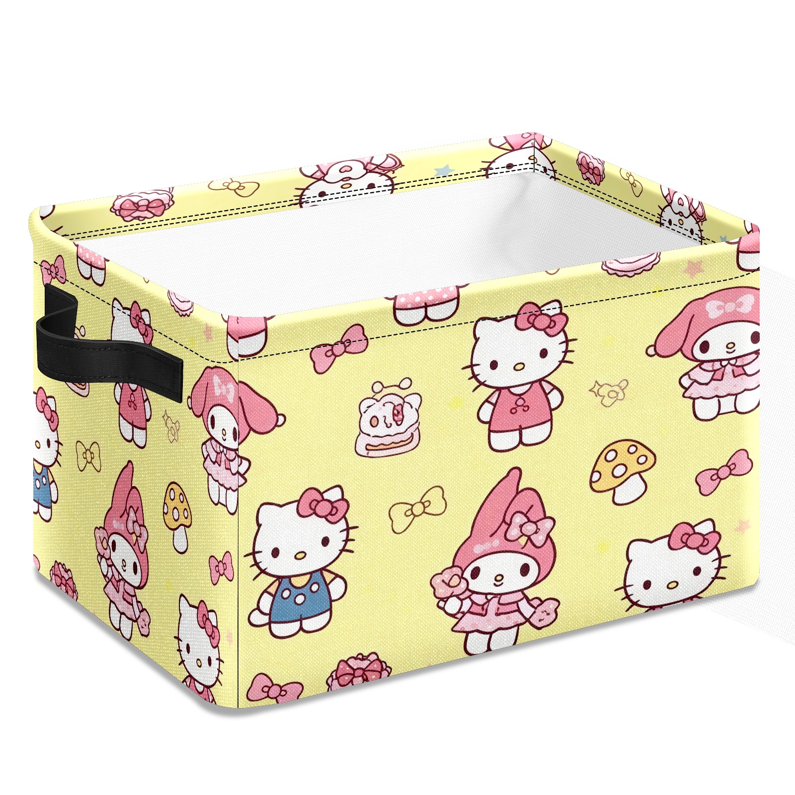Foldable and Stackable Fabric Storage Basket for Home Organization with Handles, Decorative Closet Bins for Shelves and Laundry Storage( Bright Cat Yellow)
