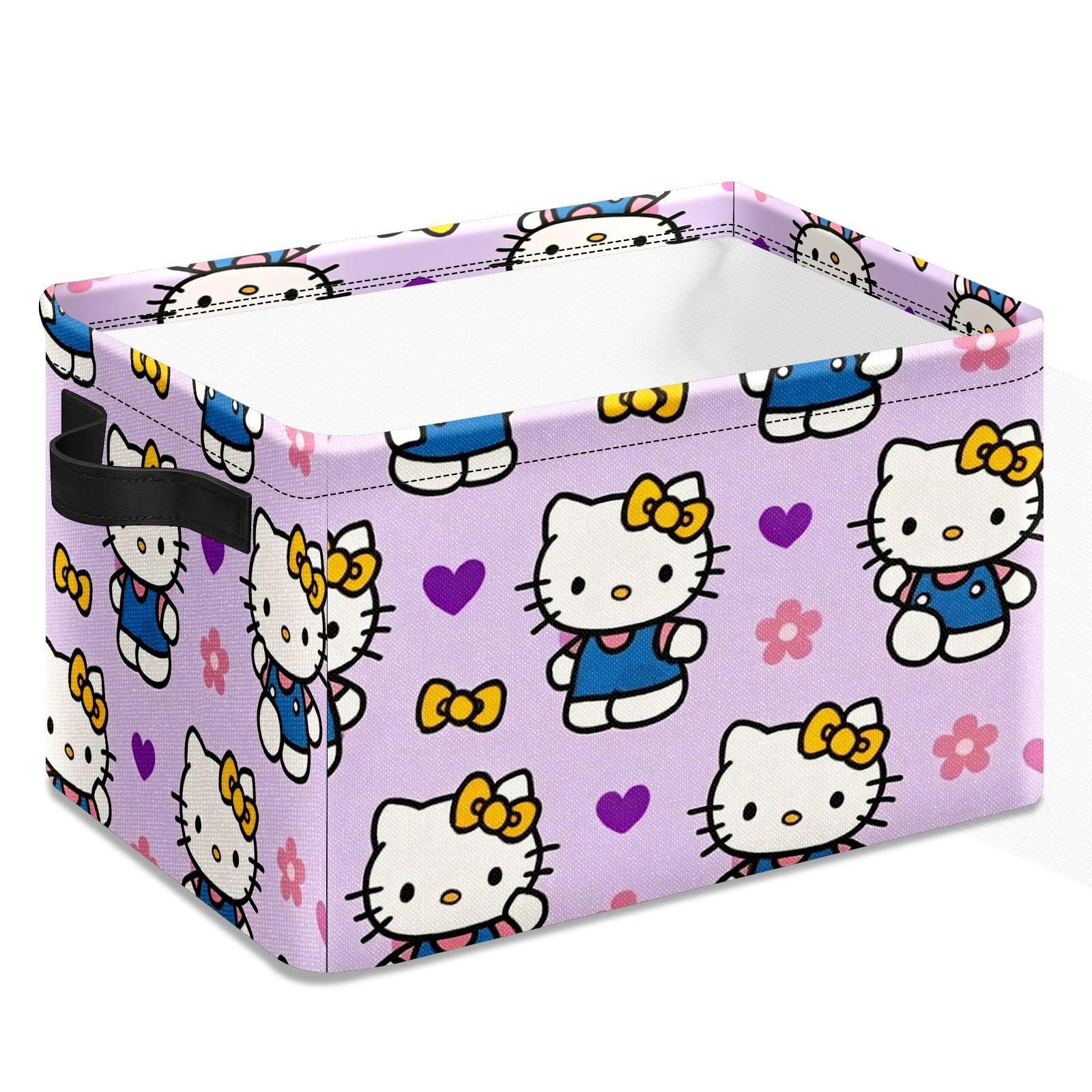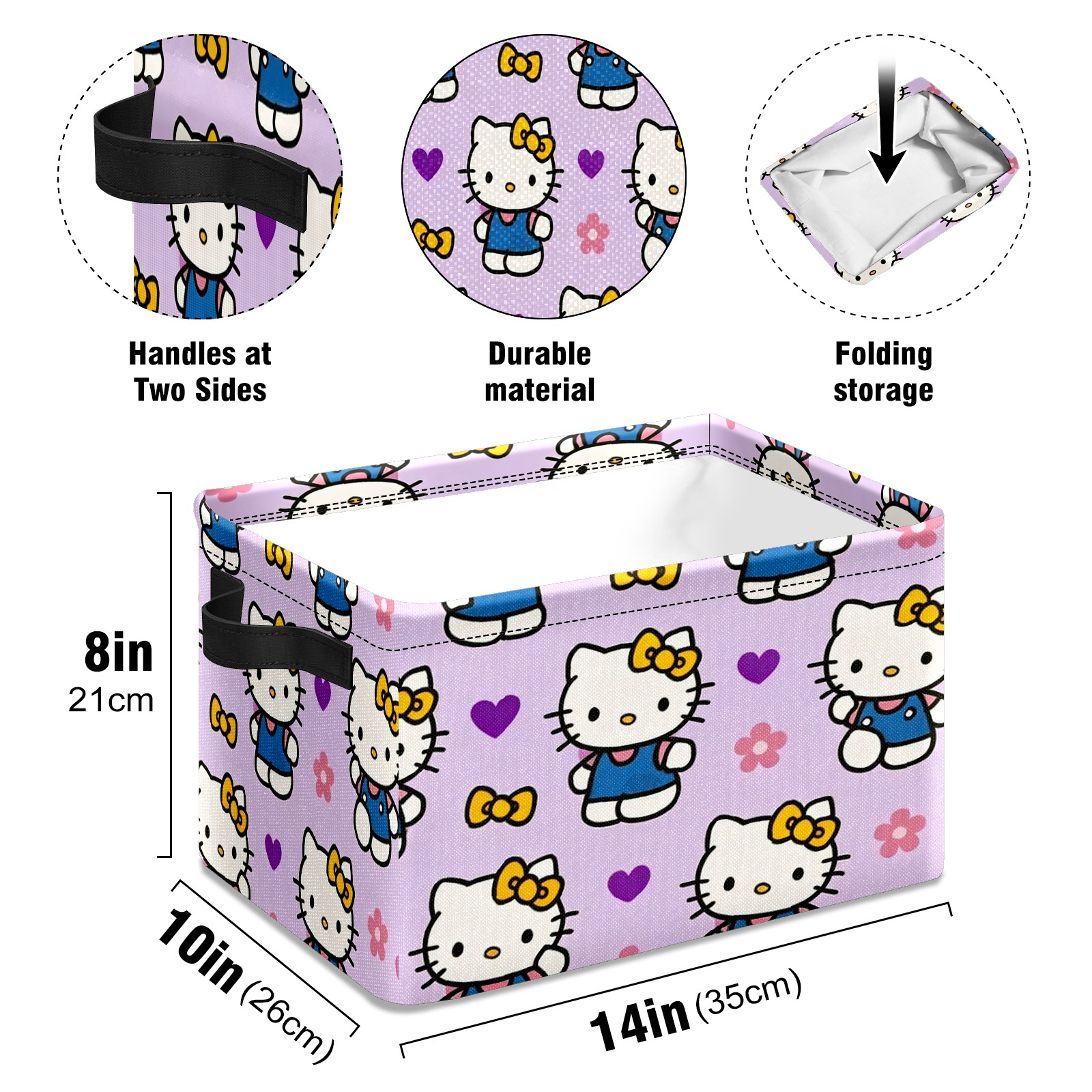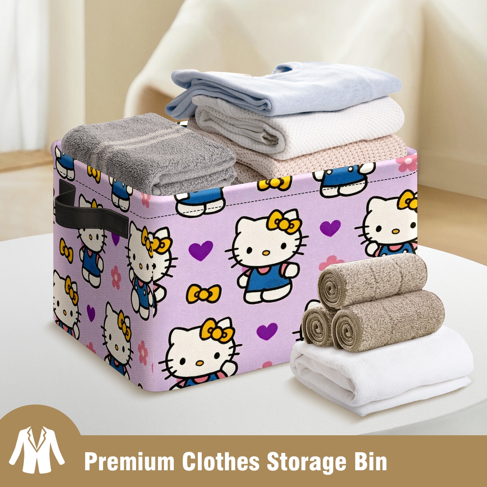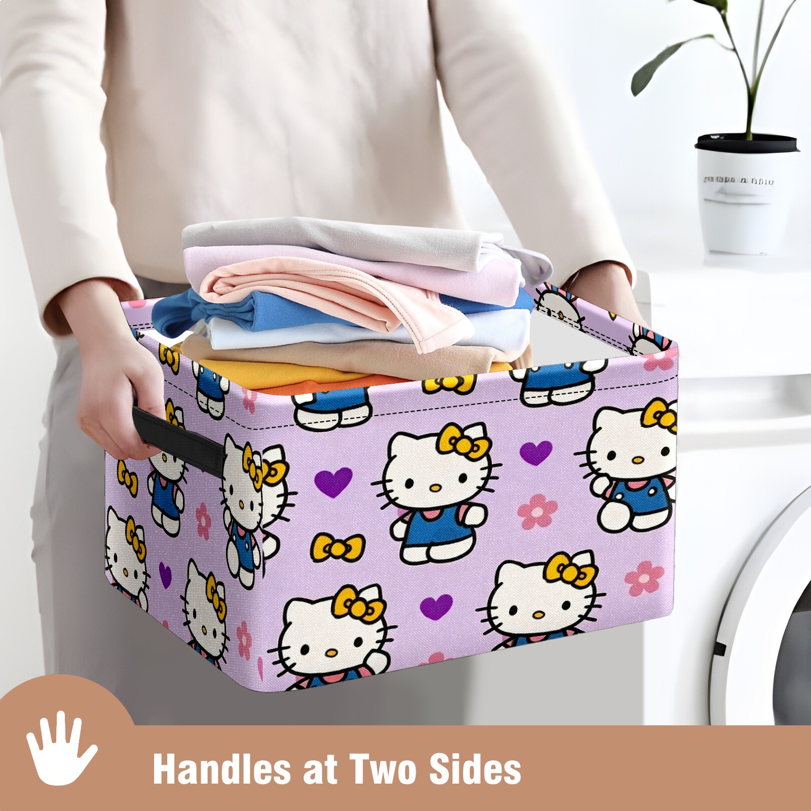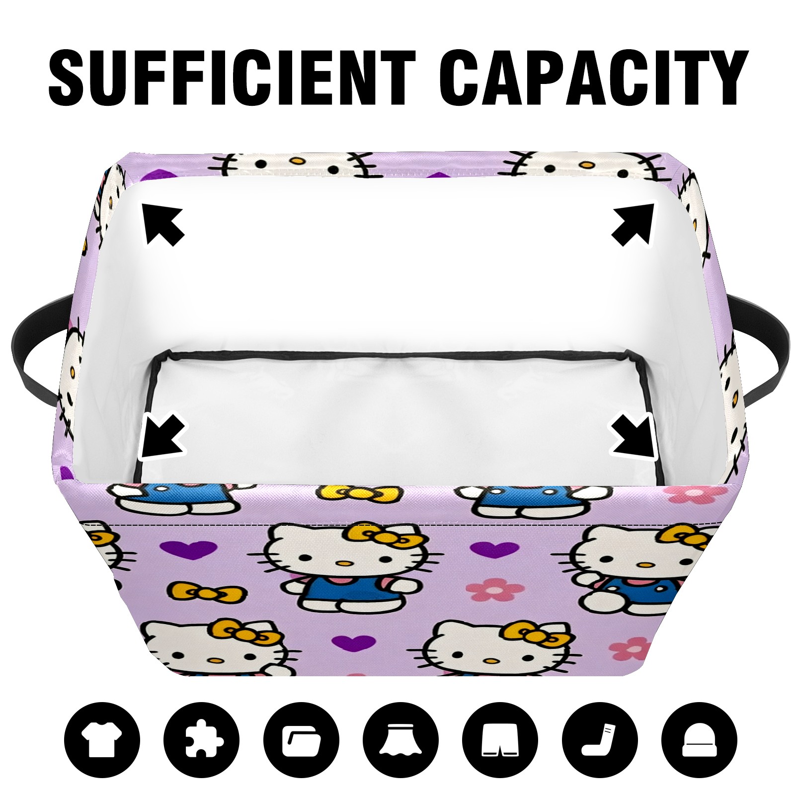 Foldable and Stackable Fabric Storage Basket for Home Organization with Handles, Decorative Closet Bins for Shelves and Laundry Storage( Elegant Cat Purple)