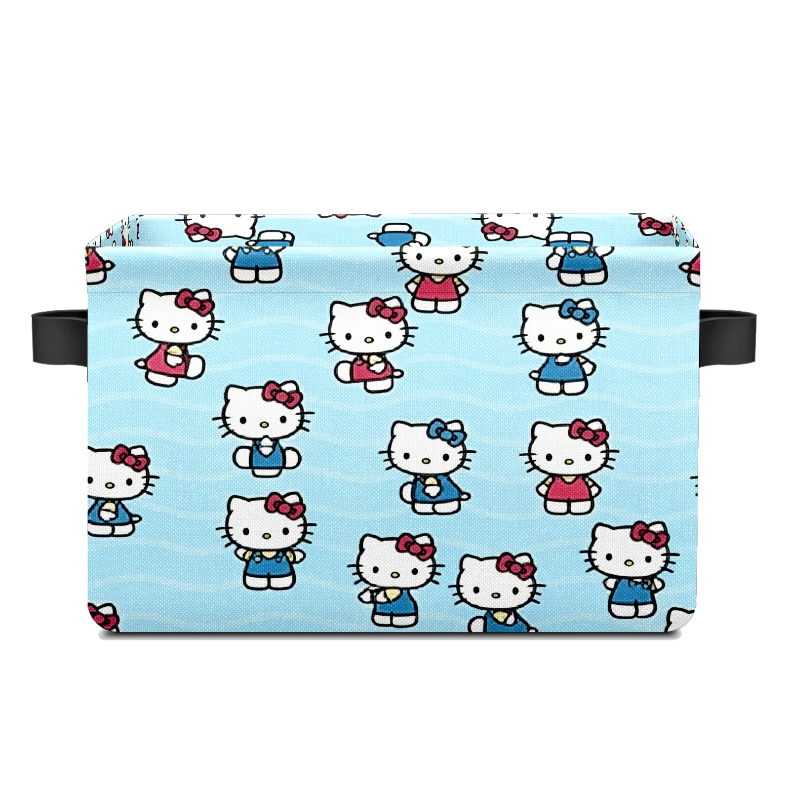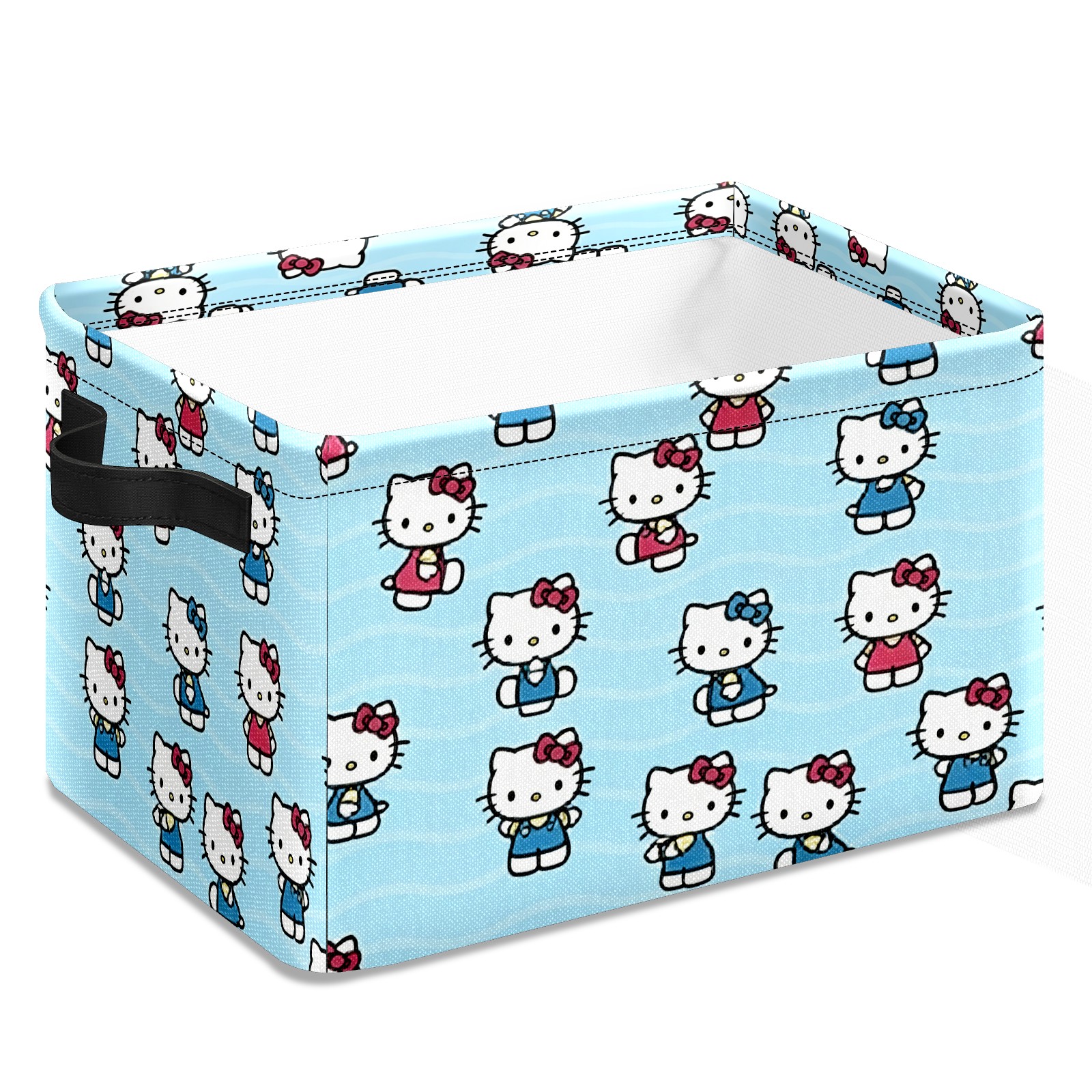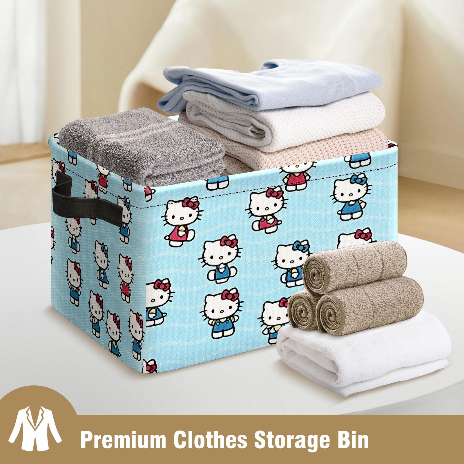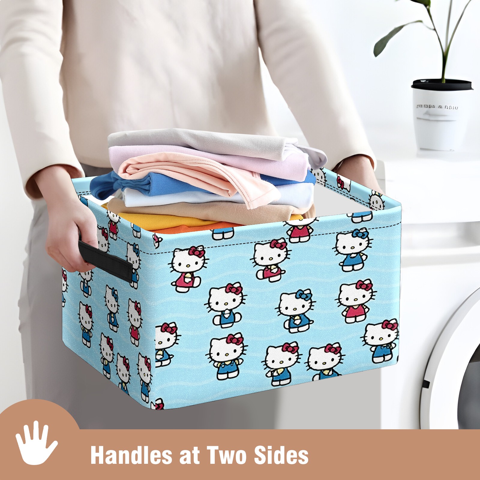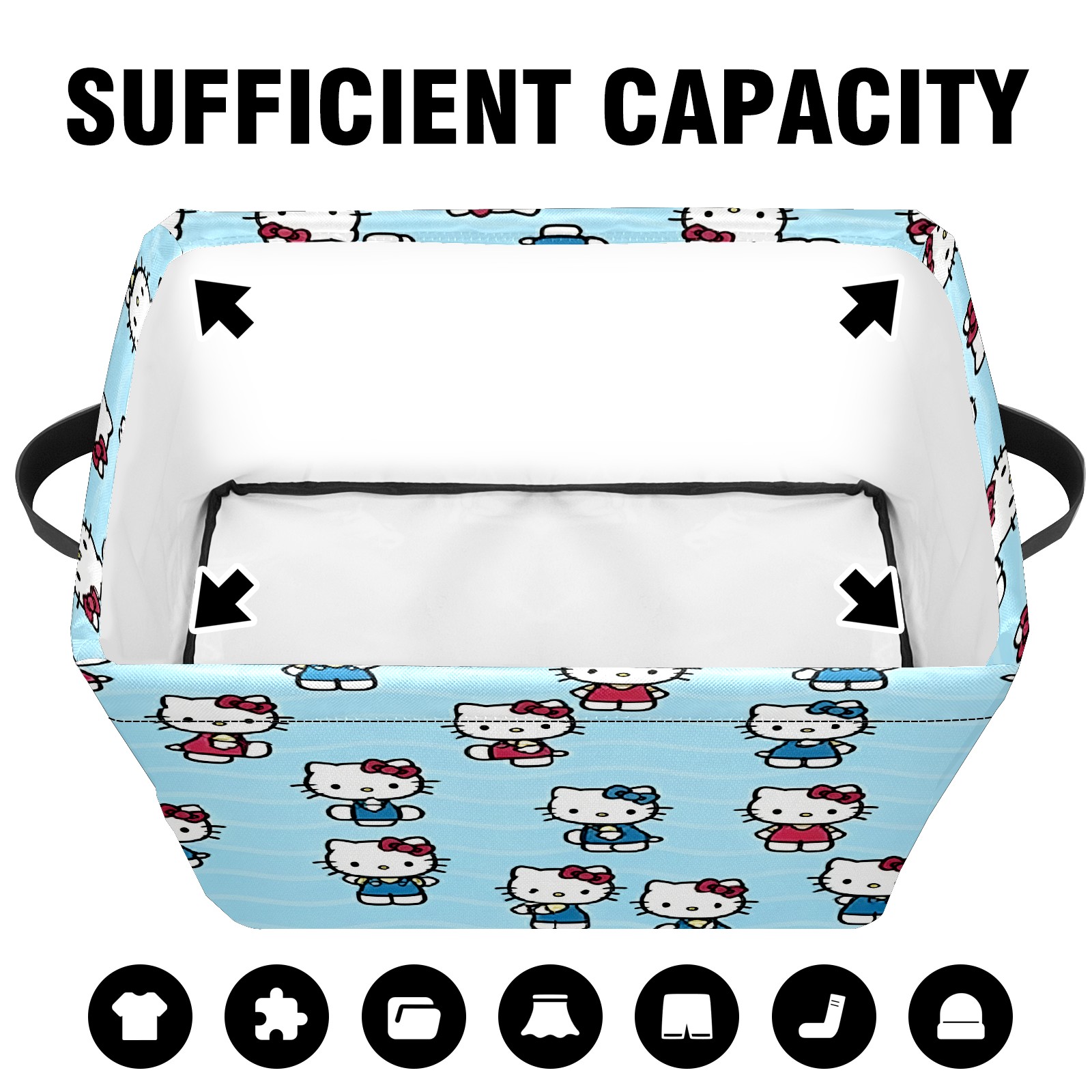 Foldable and Stackable Fabric Storage Basket for Home Organization with Handles, Decorative Closet Bins for Shelves and Laundry Storage( Fresh Cat Blue)