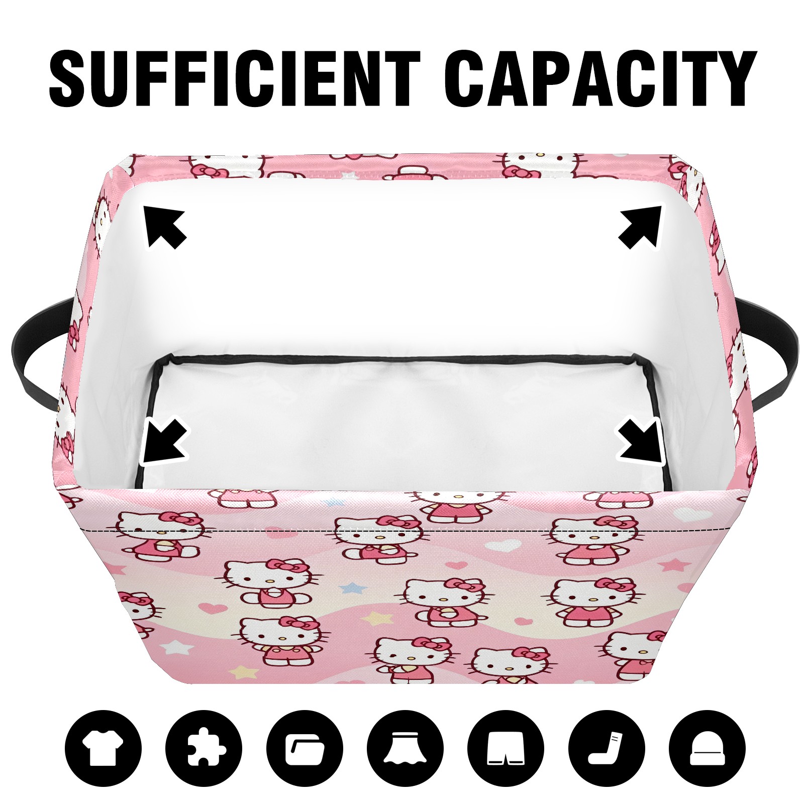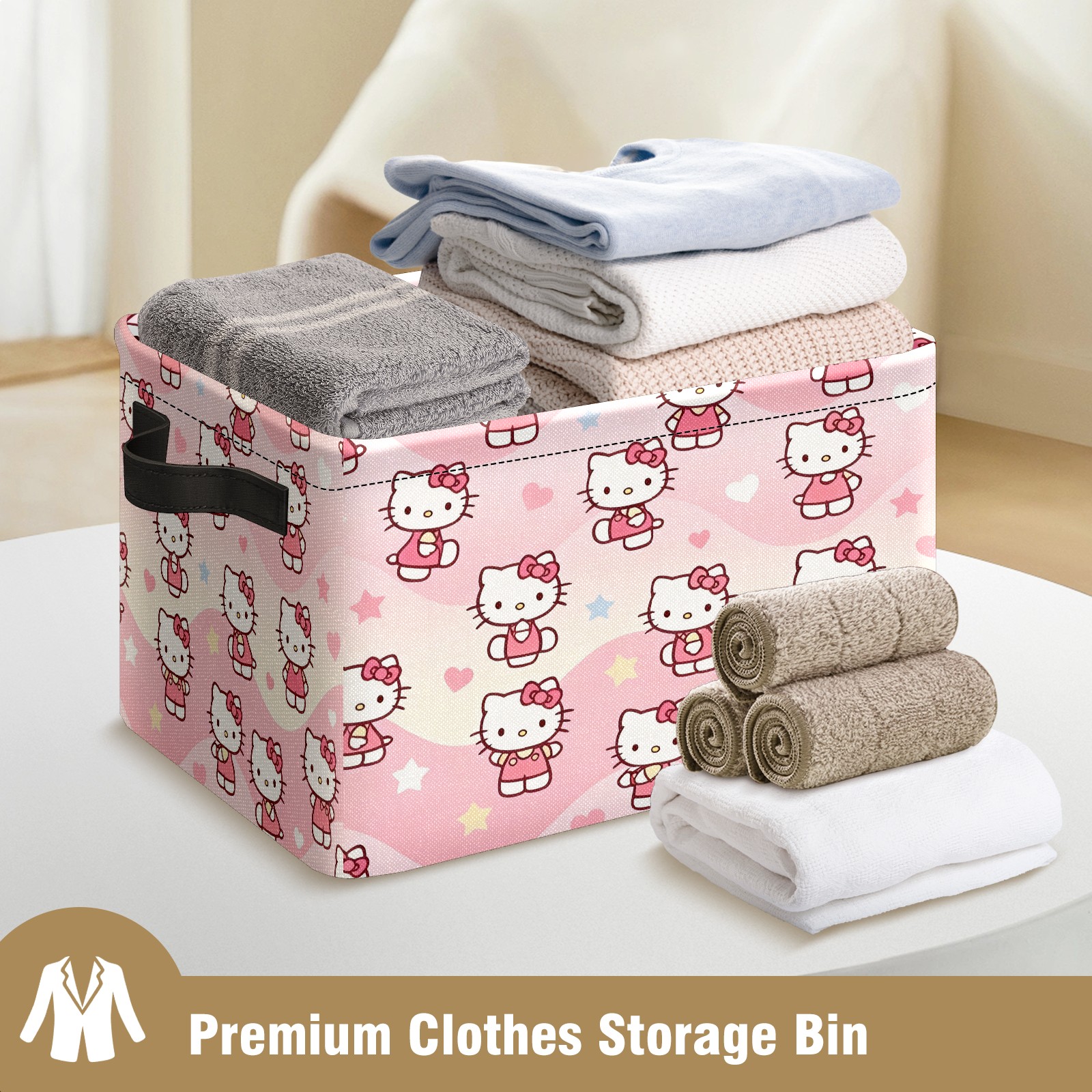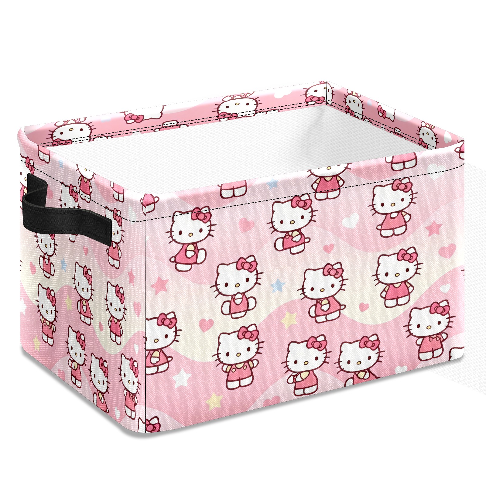 Foldable and Stackable Fabric Storage Basket for Home Organization with Handles, Decorative Closet Bins for Shelves and Laundry Storage( Soft Hello Kitty Pink)