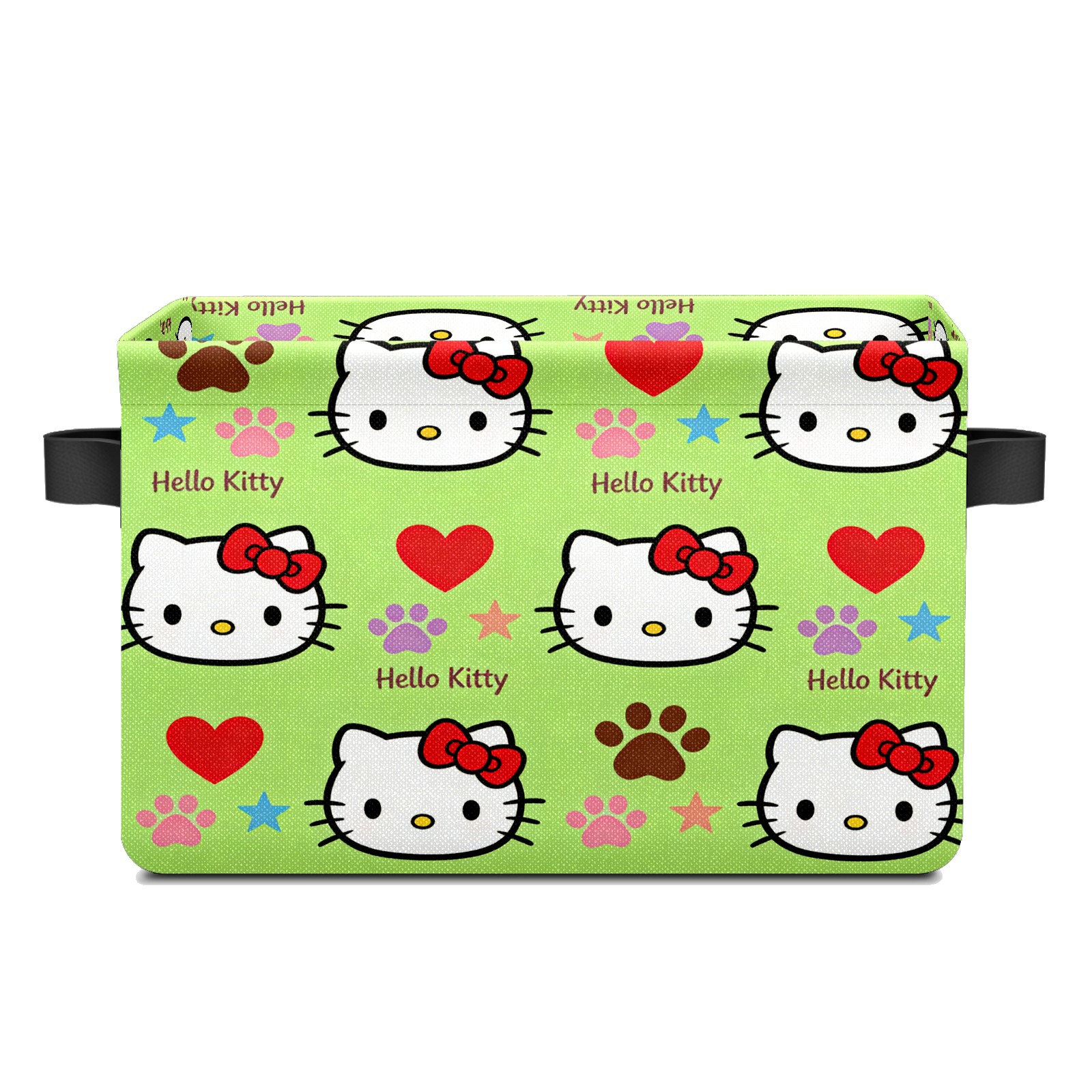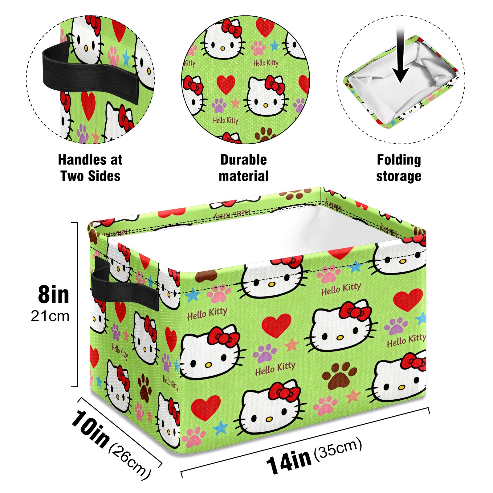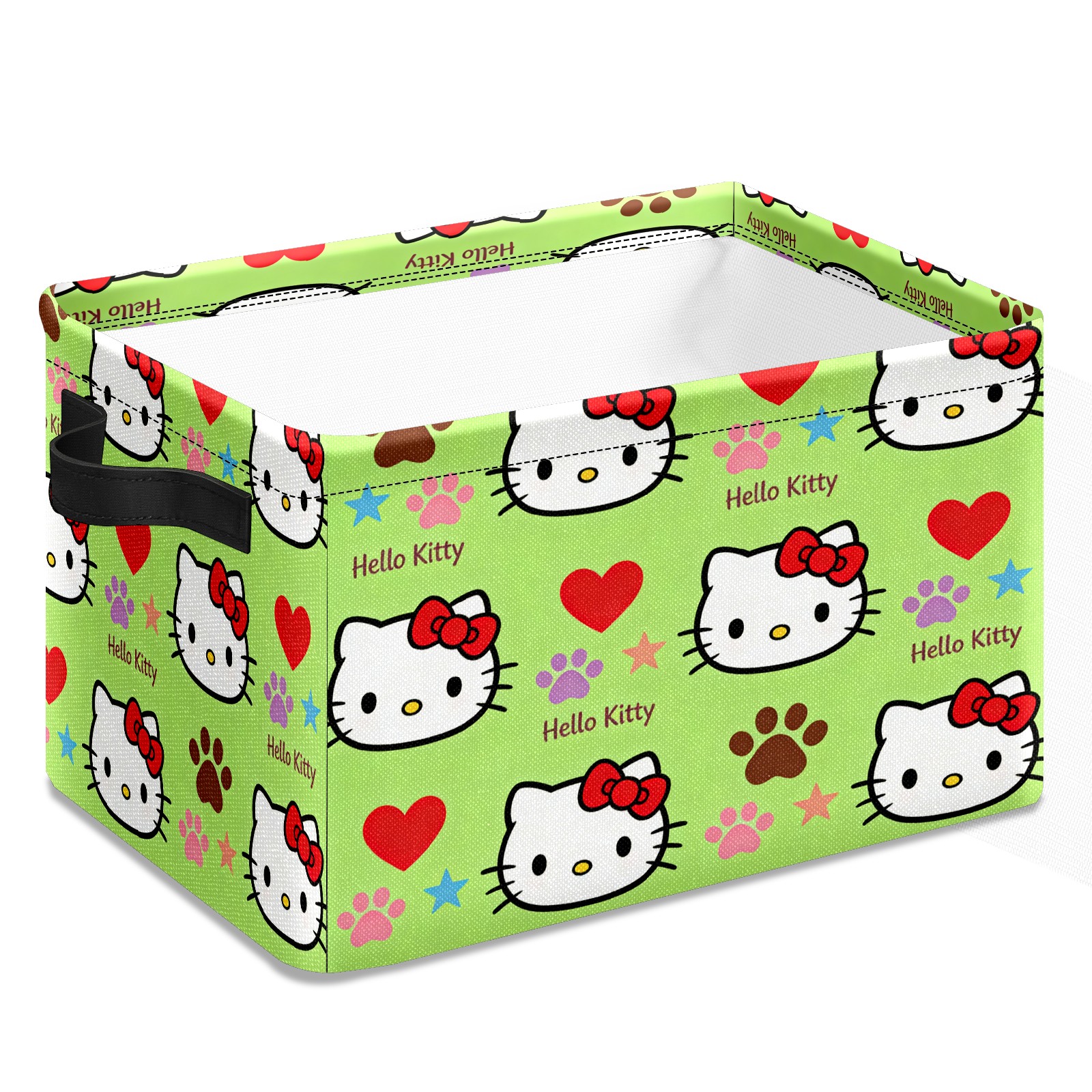 Foldable and Stackable Fabric Storage Basket for Home Organization with Handles, Decorative Closet Bins for Shelves and Laundry Storage( Fiery Hello Kitty Green)