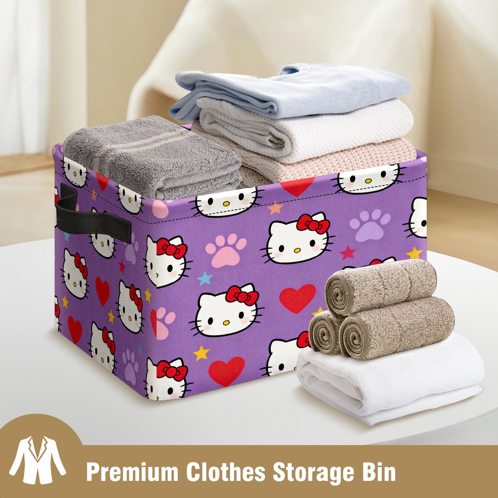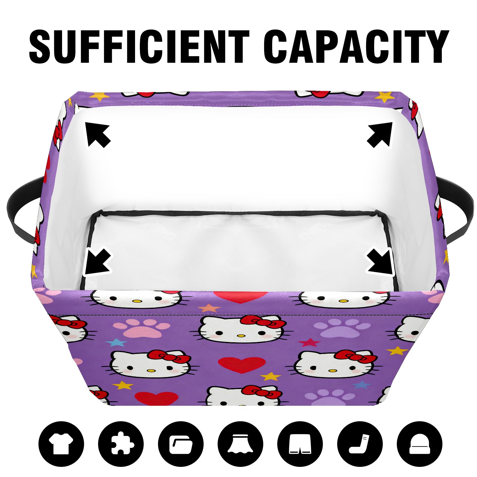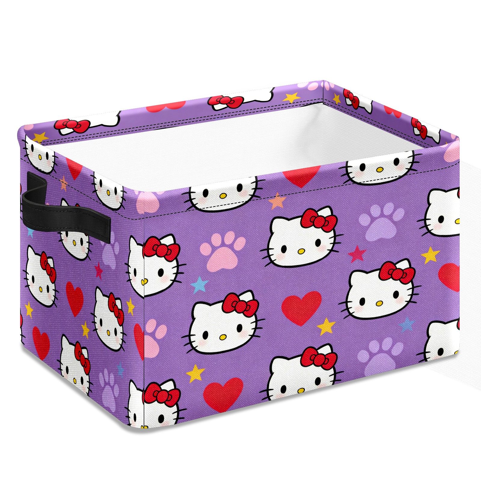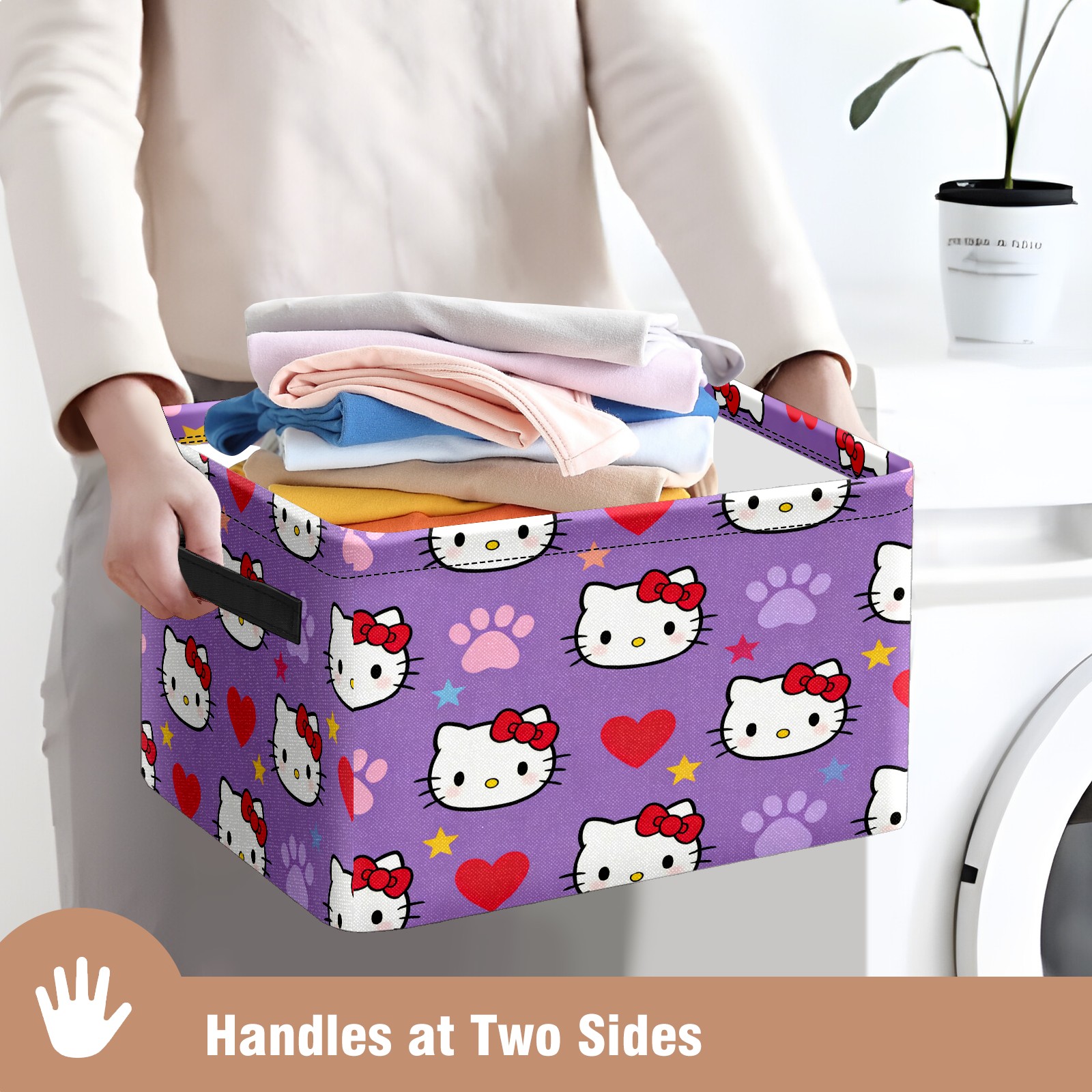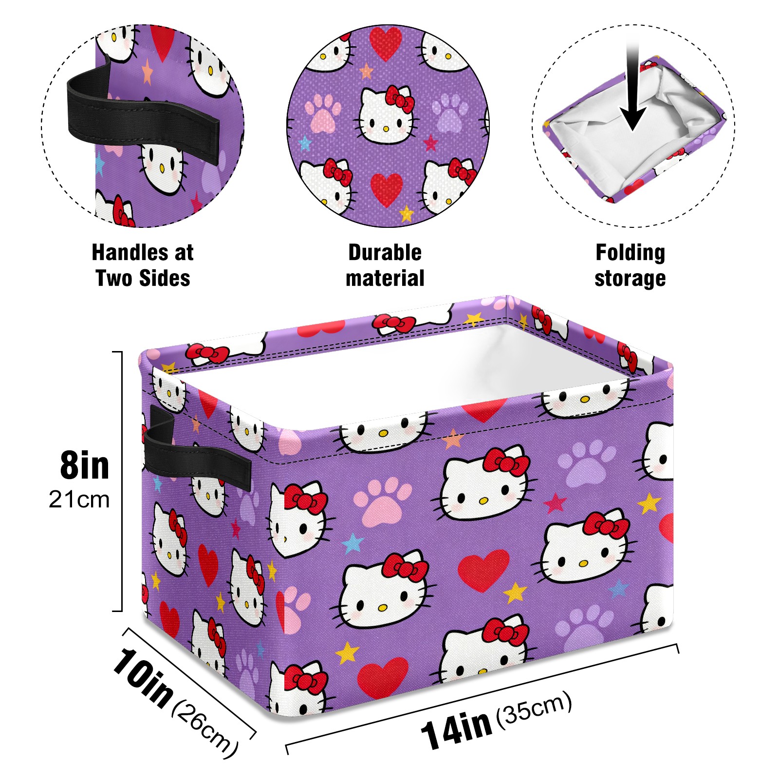 Foldable and Stackable Fabric Storage Basket for Home Organization with Handles, Decorative Closet Bins for Shelves and Laundry Storage( Hello Kitty Purple)