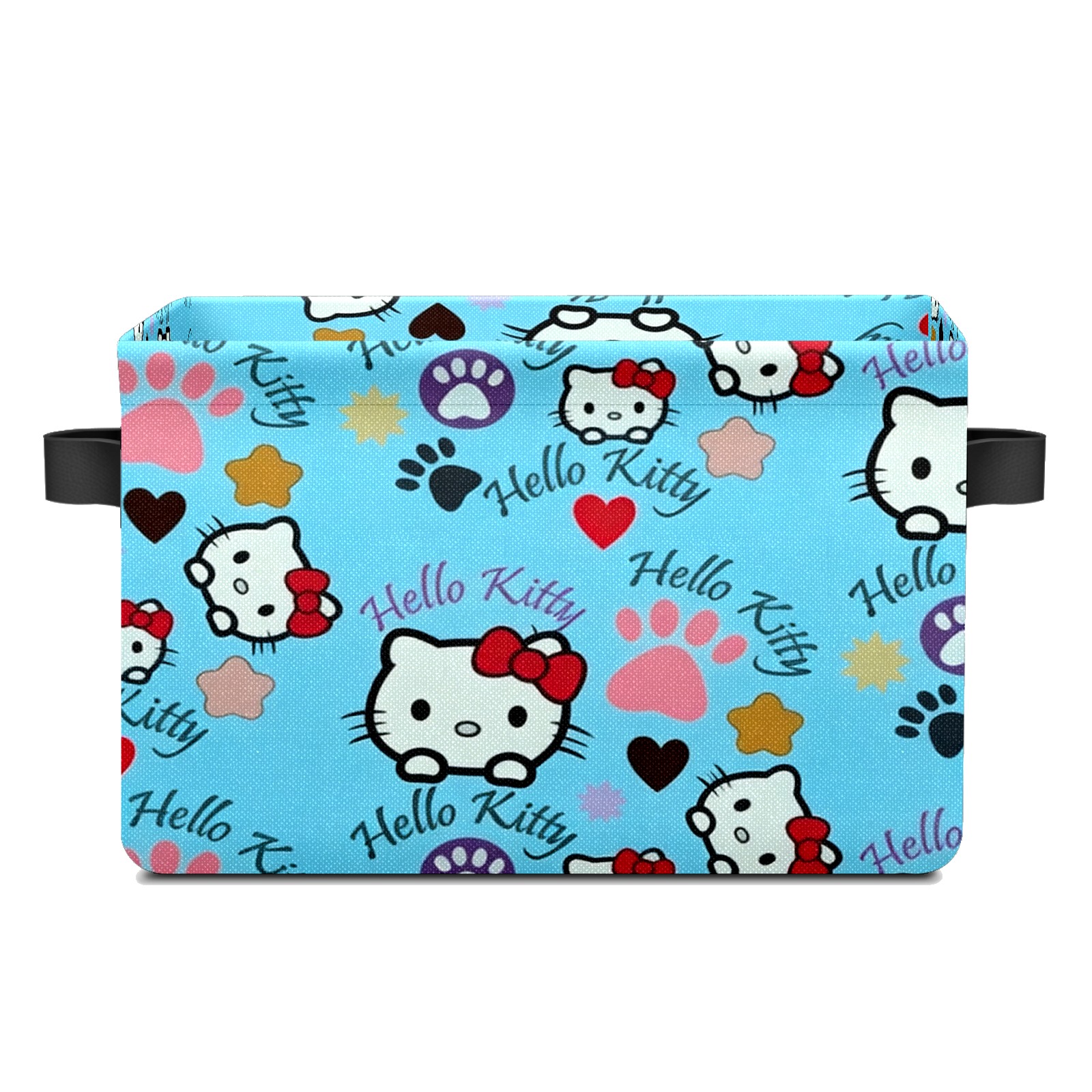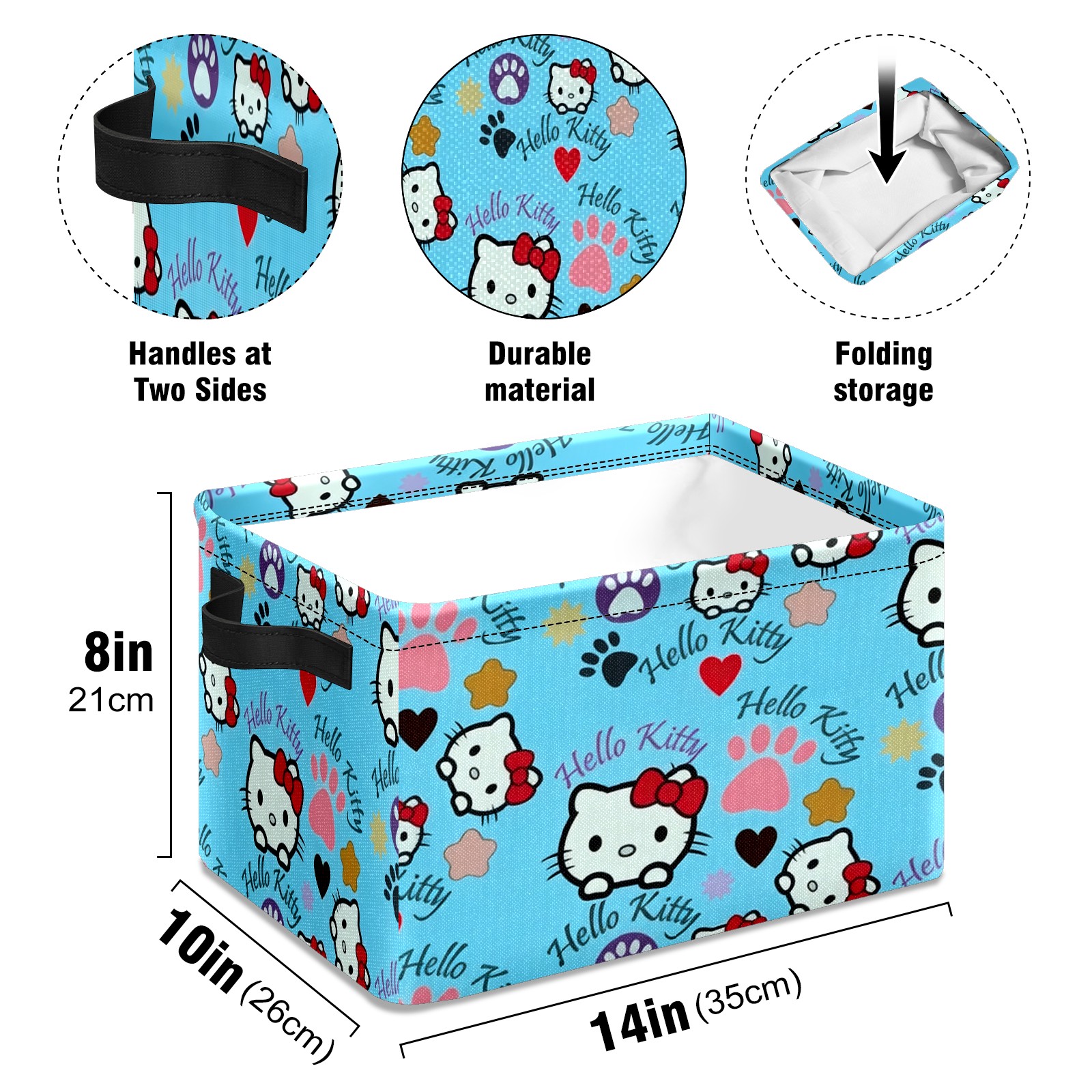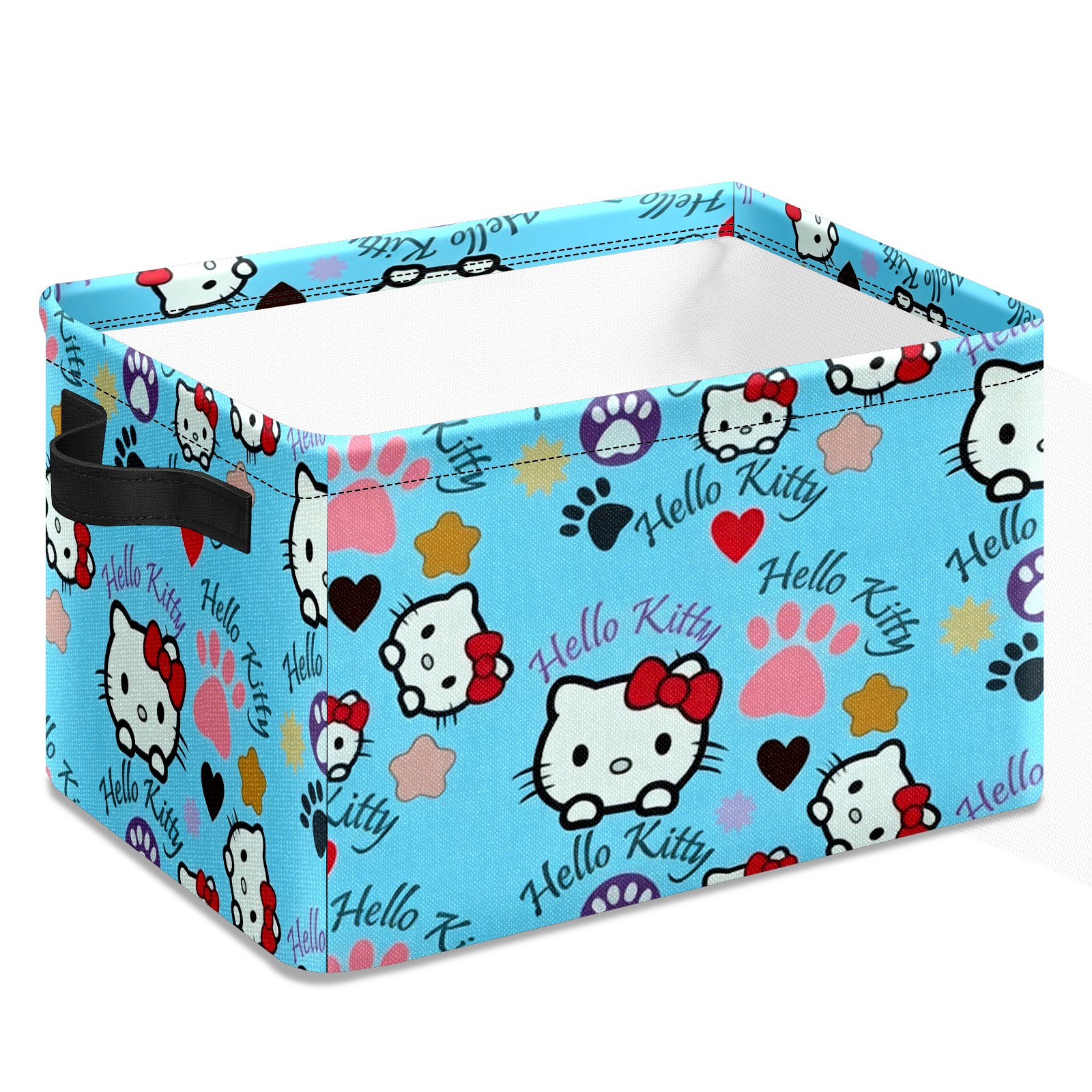 Foldable and Stackable Fabric Storage Basket for Home Organization with Handles, Decorative Closet Bins for Shelves and Laundry Storage( Bright Hello Kitty Blue)