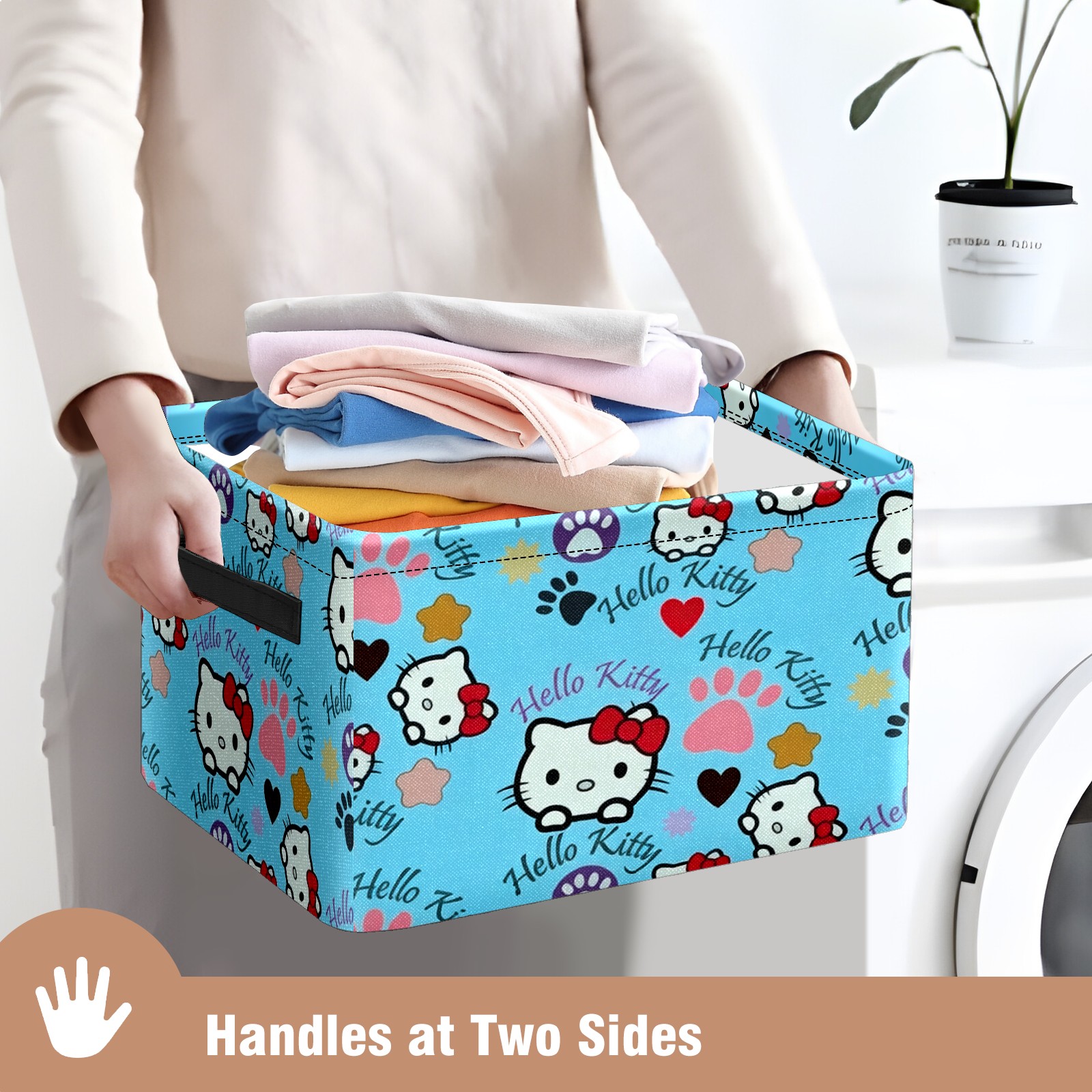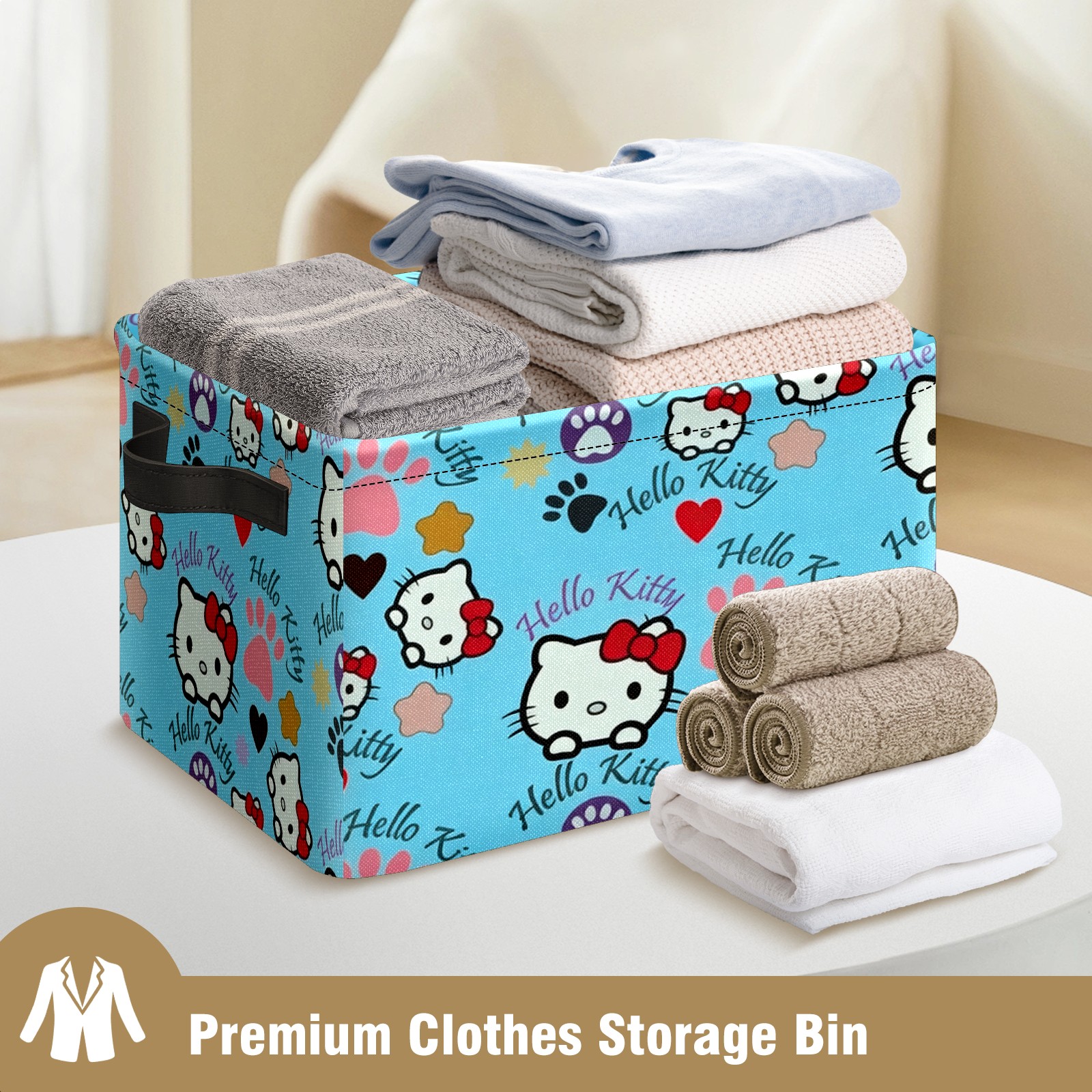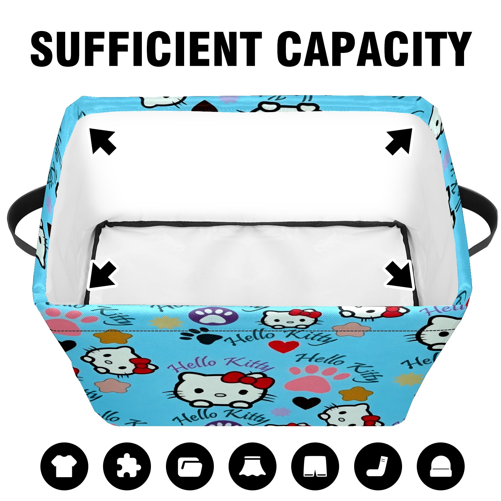 Foldable and Stackable Fabric Storage Basket for Home Organization with Handles, Decorative Closet Bins for Shelves and Laundry Storage( Bright Hello Kitty Blue)