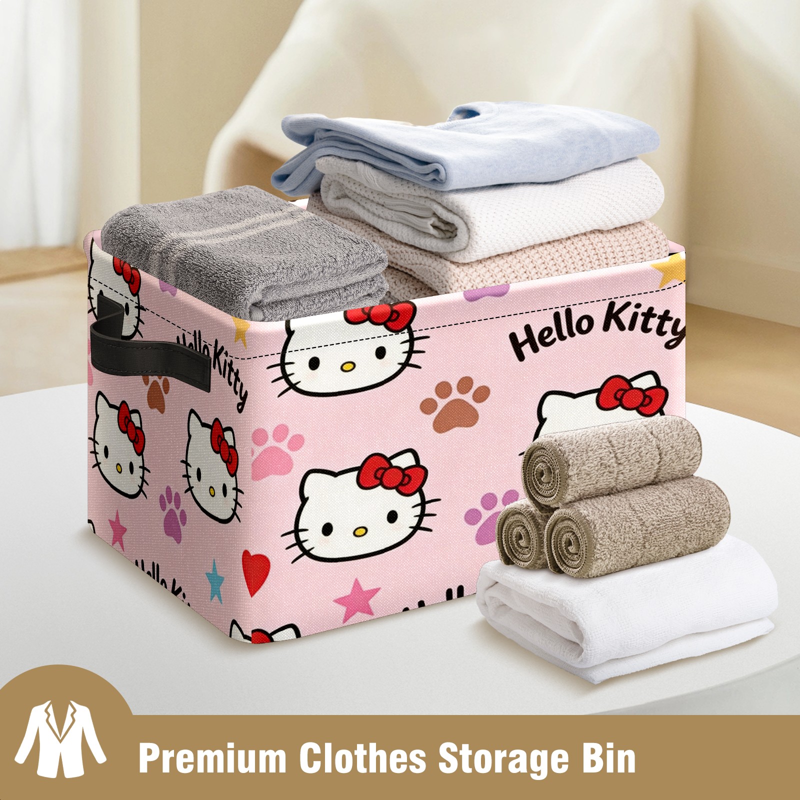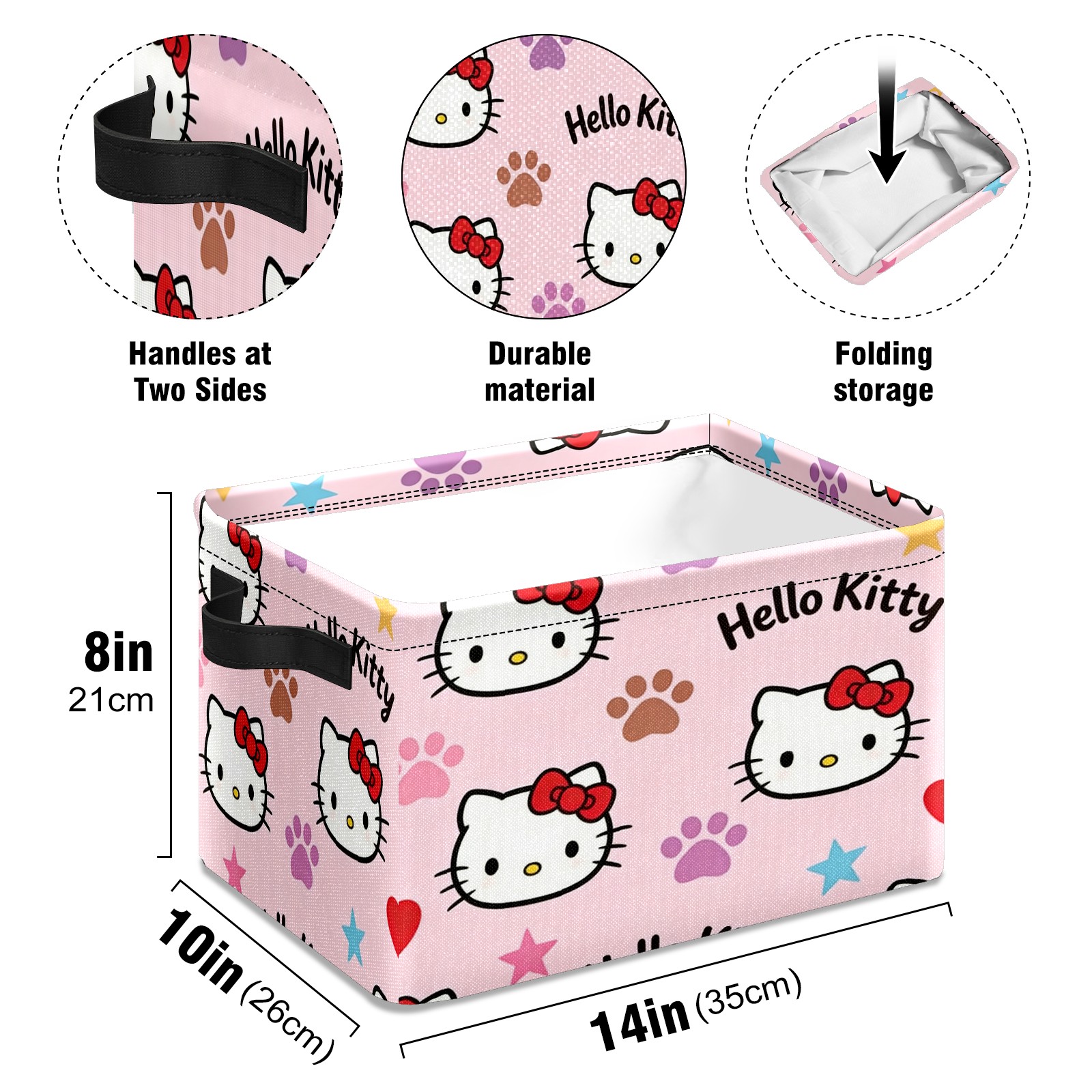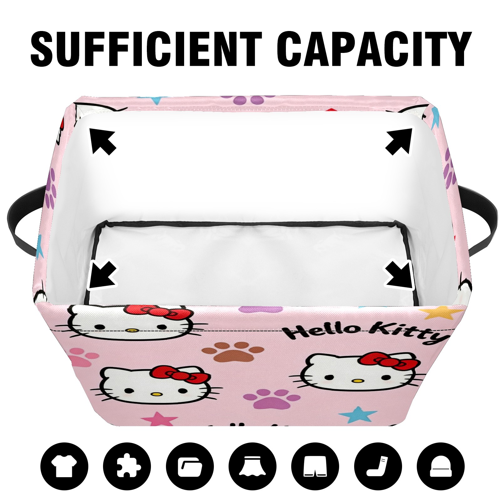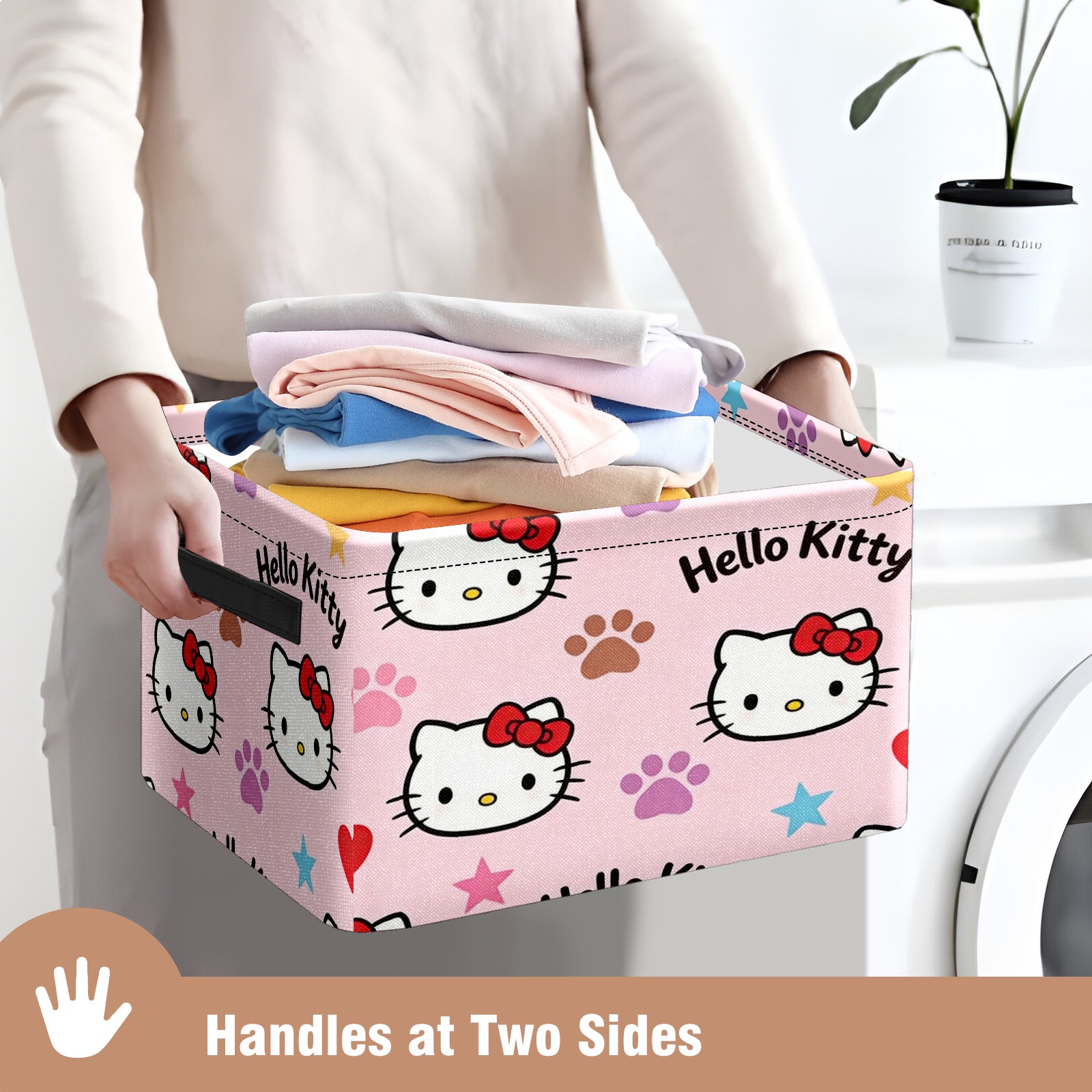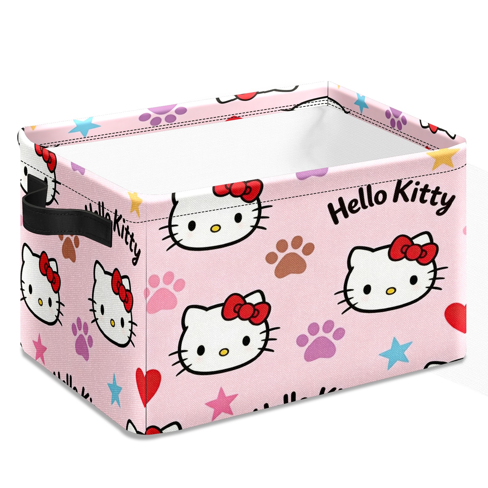 Foldable and Stackable Fabric Storage Basket for Home Organization with Handles, Decorative Closet Bins for Shelves and Laundry Storage( Fiery Hello Kitty Pink)
