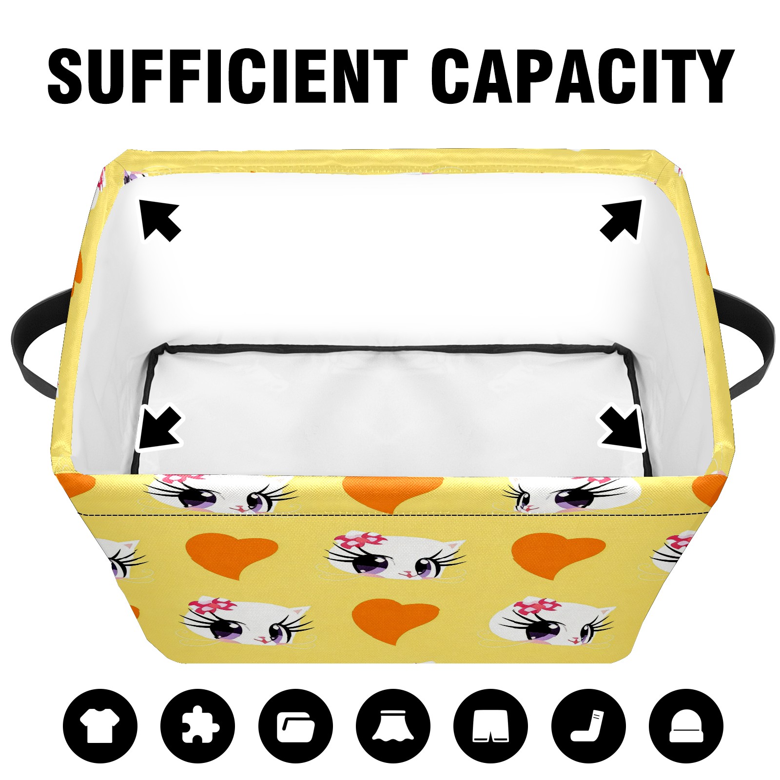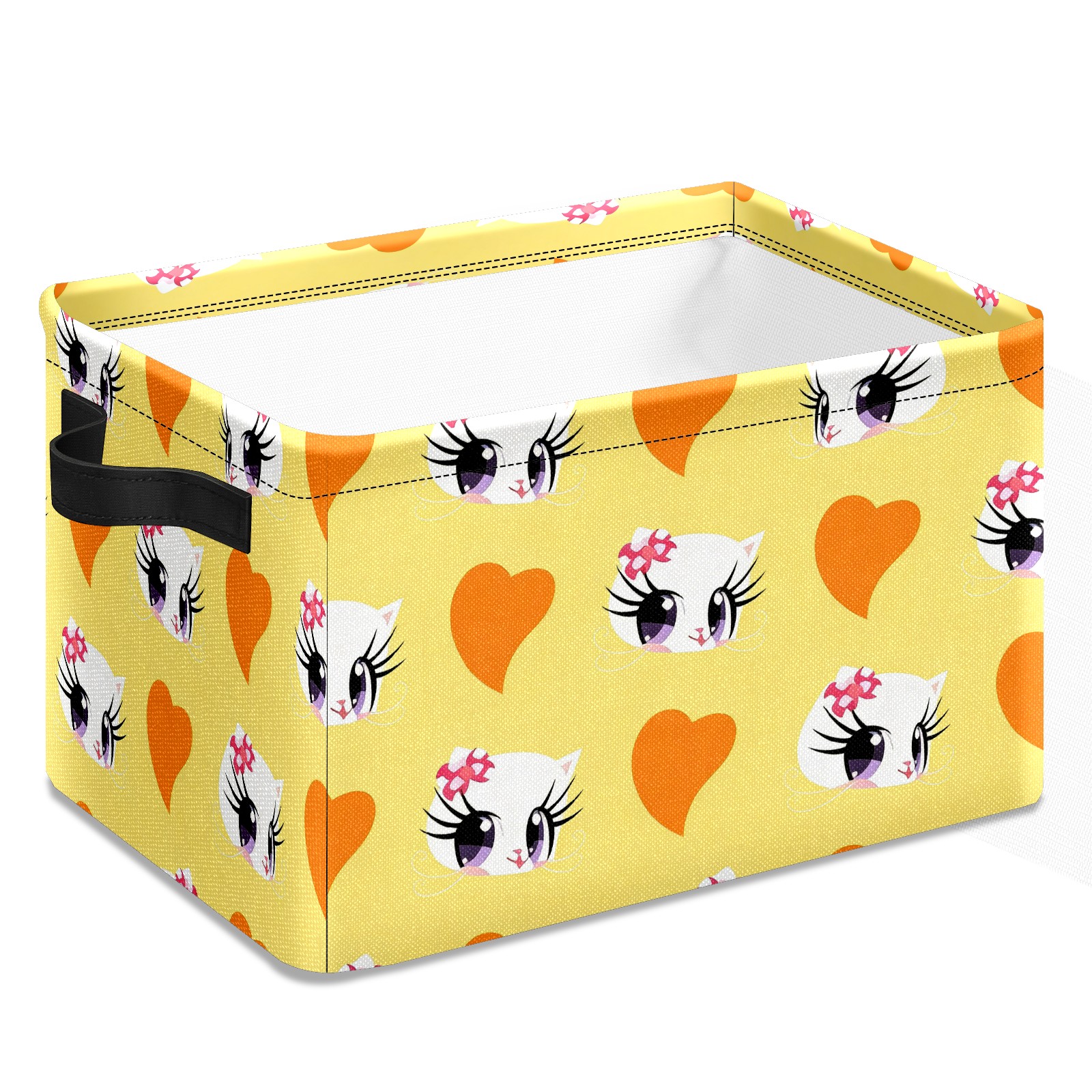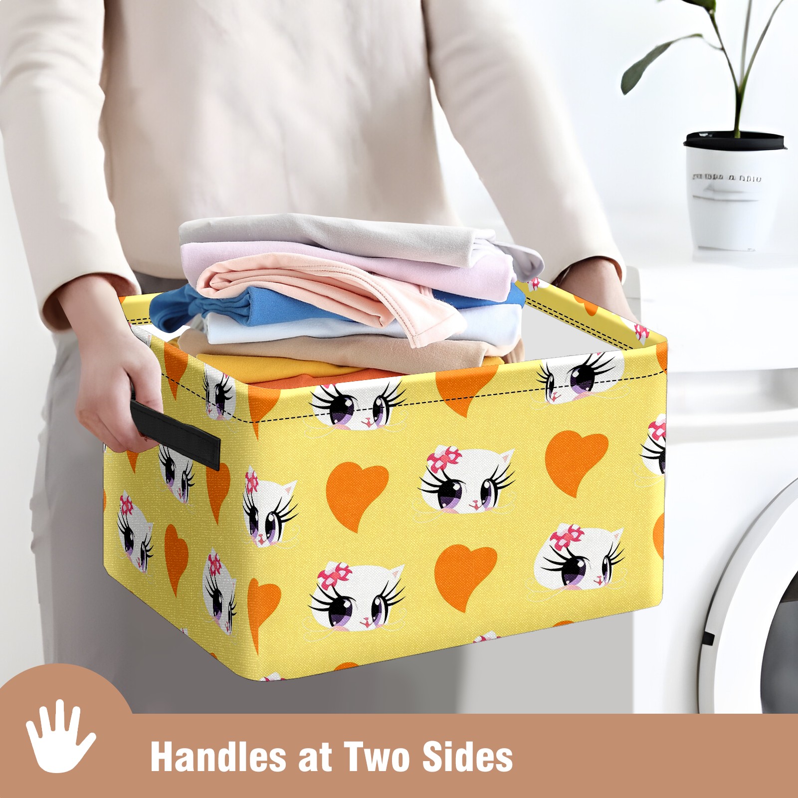 Foldable and Stackable Fabric Storage Basket for Home Organization with Handles, Decorative Closet Bins for Shelves and Laundry Storage( Rabbit Character Yellow)