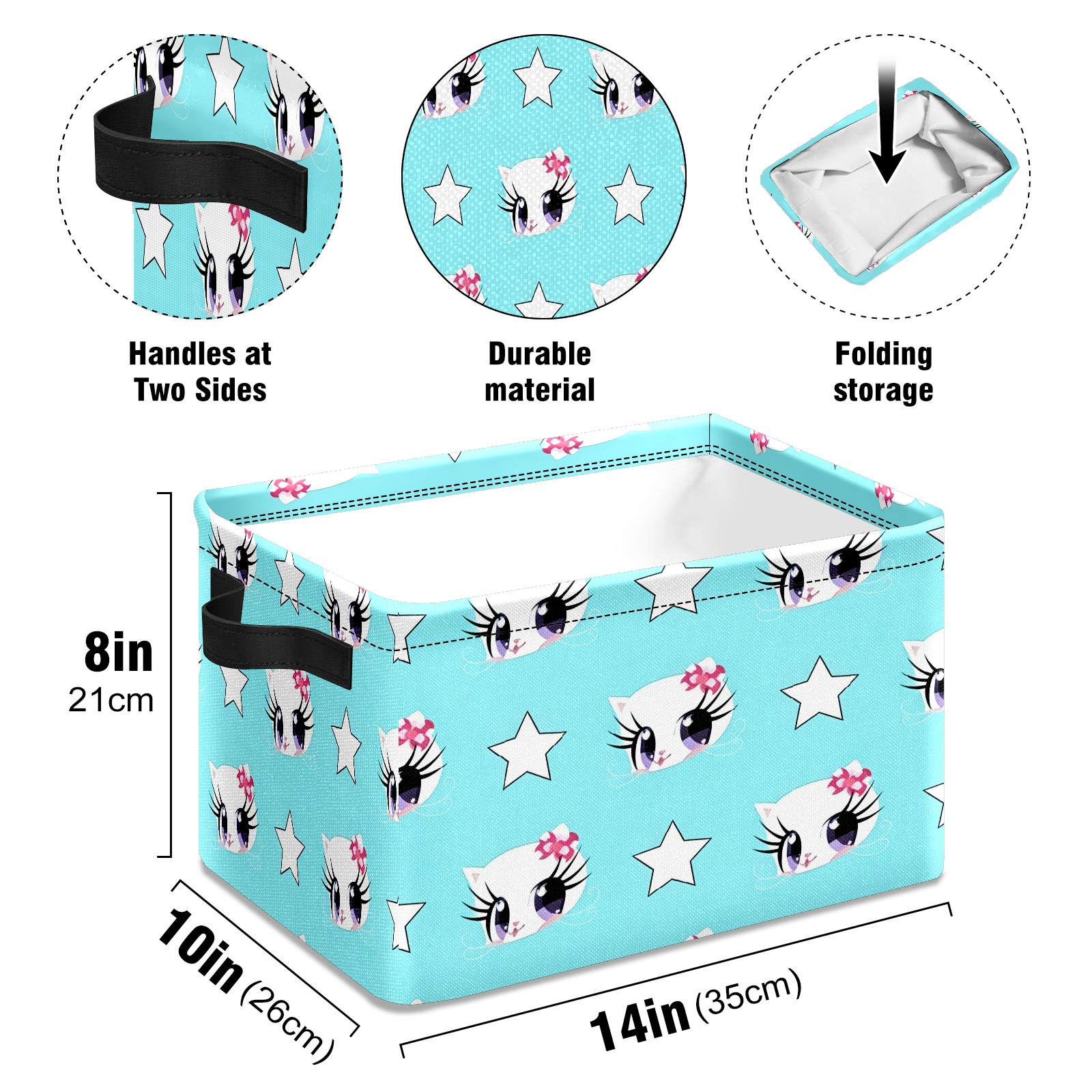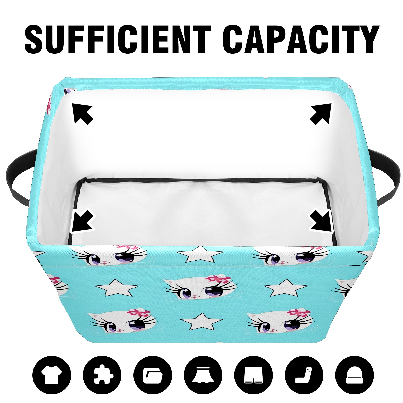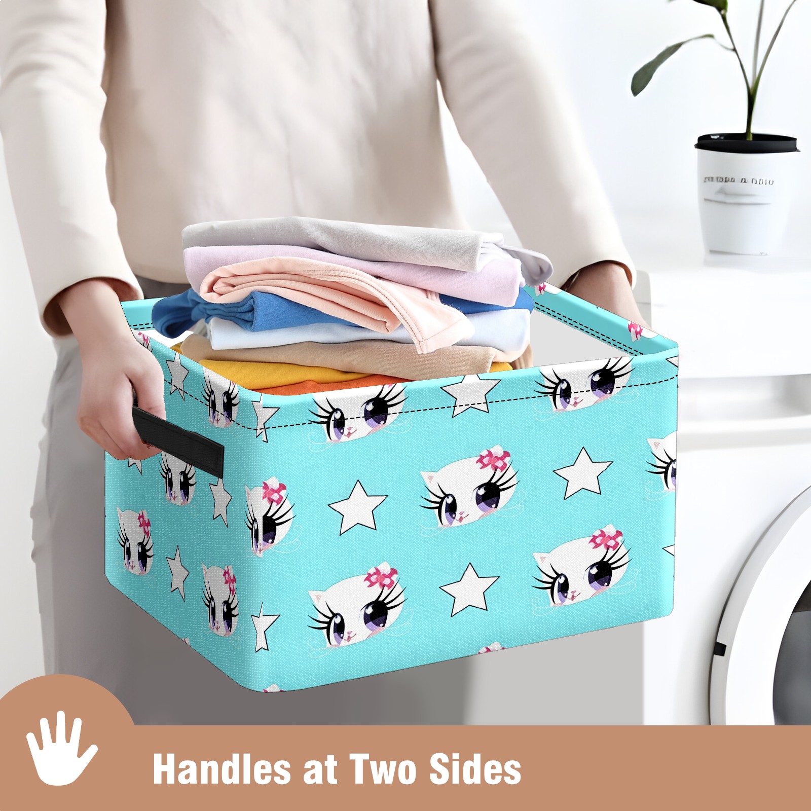 Foldable and Stackable Fabric Storage Basket for Home Organization with Handles, Decorative Closet Bins for Shelves and Laundry Storage( Cat Blue)