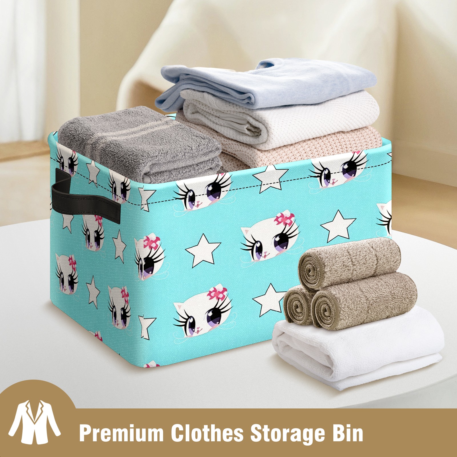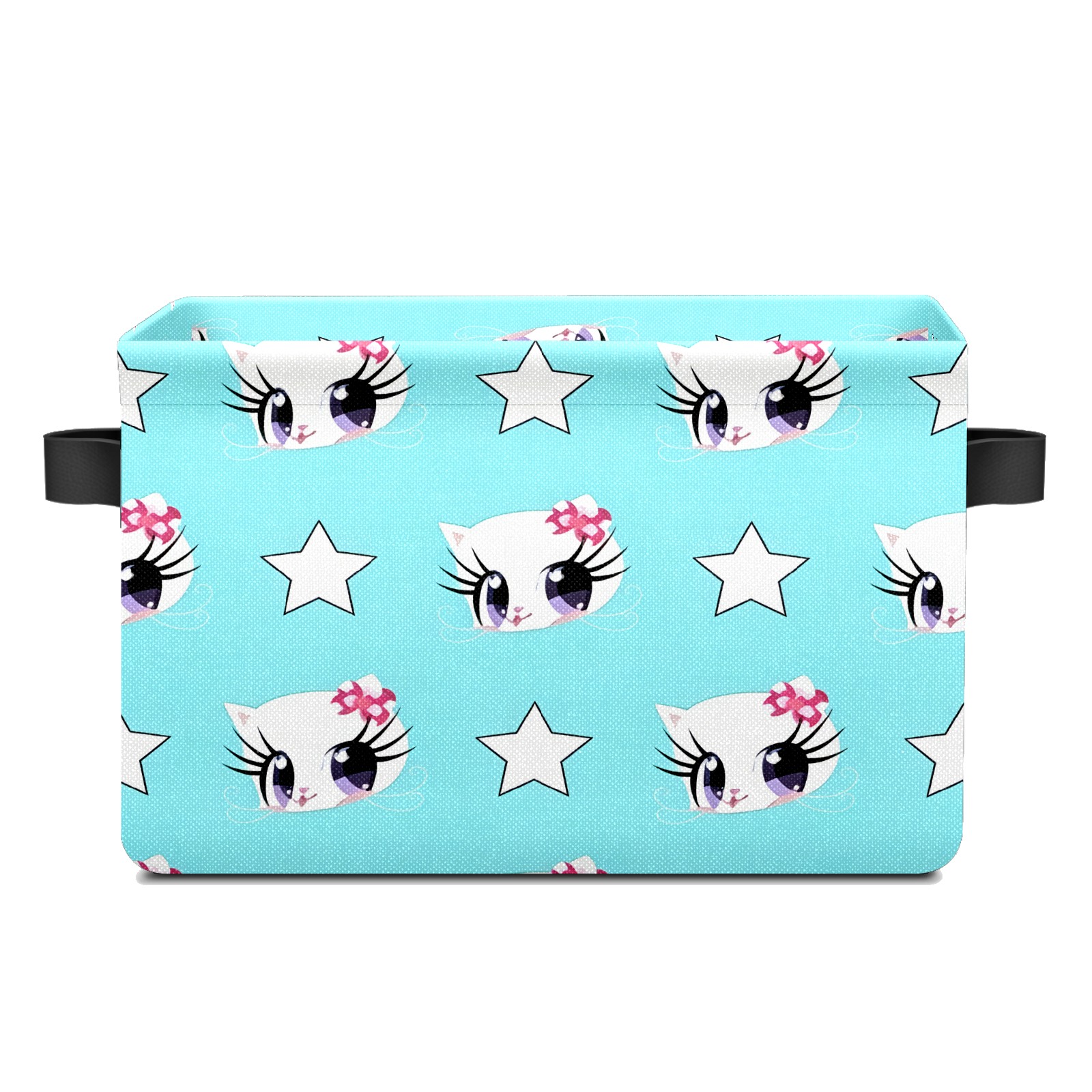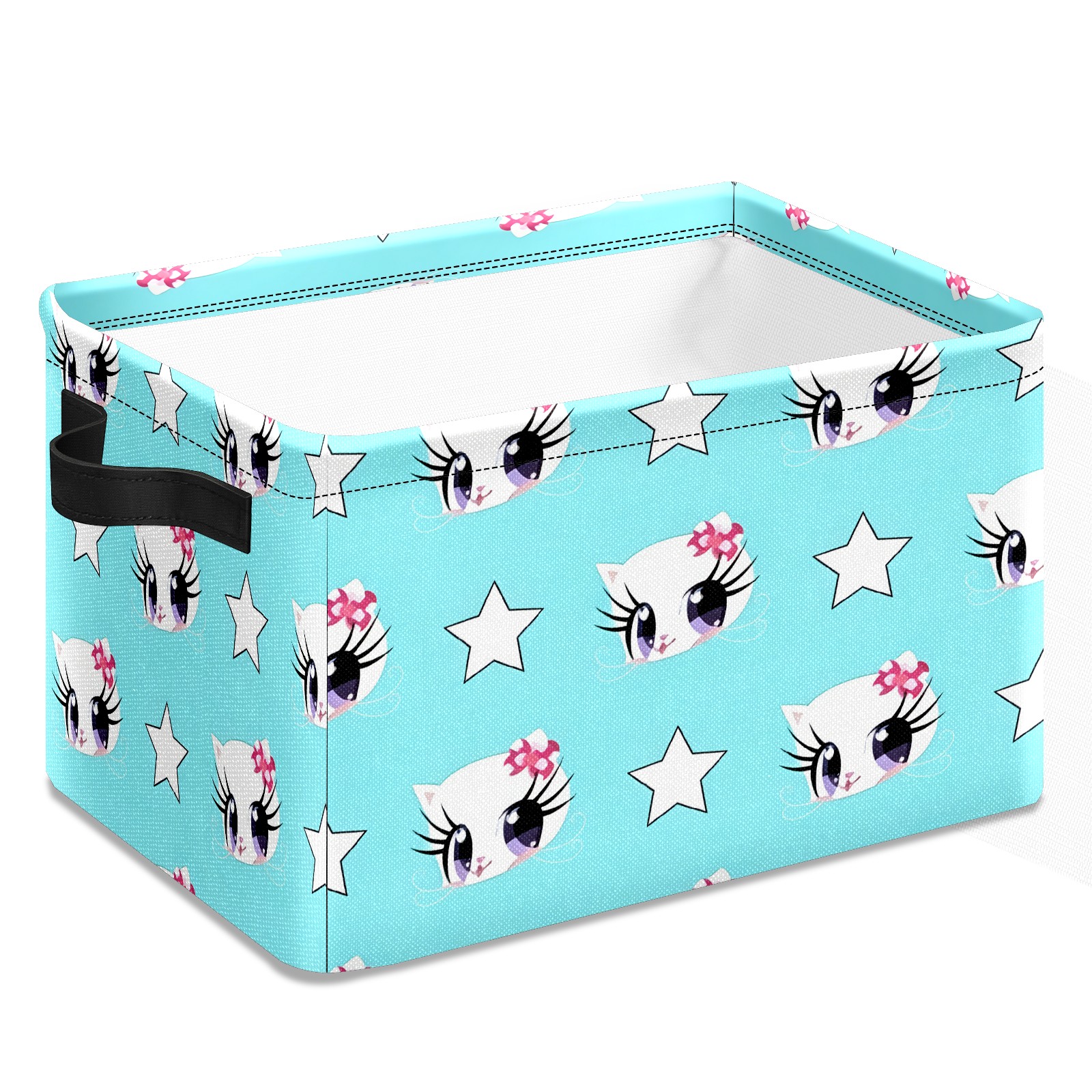 Foldable and Stackable Fabric Storage Basket for Home Organization with Handles, Decorative Closet Bins for Shelves and Laundry Storage( Cat Blue)