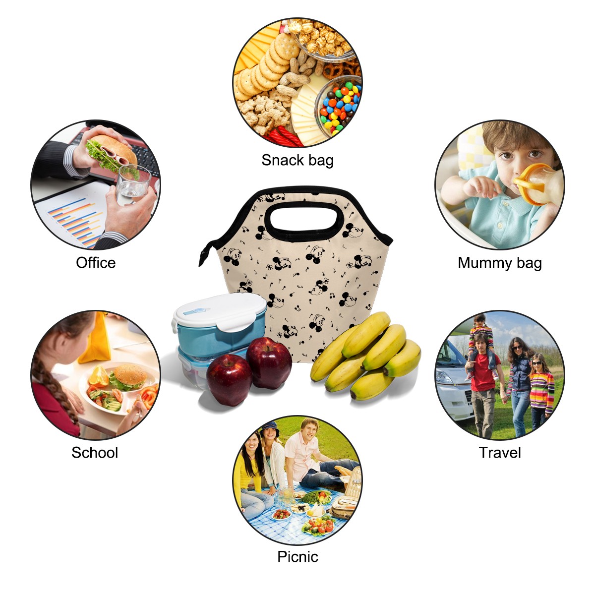 Vintage Mickey Minnie Music Pattern lunch bag