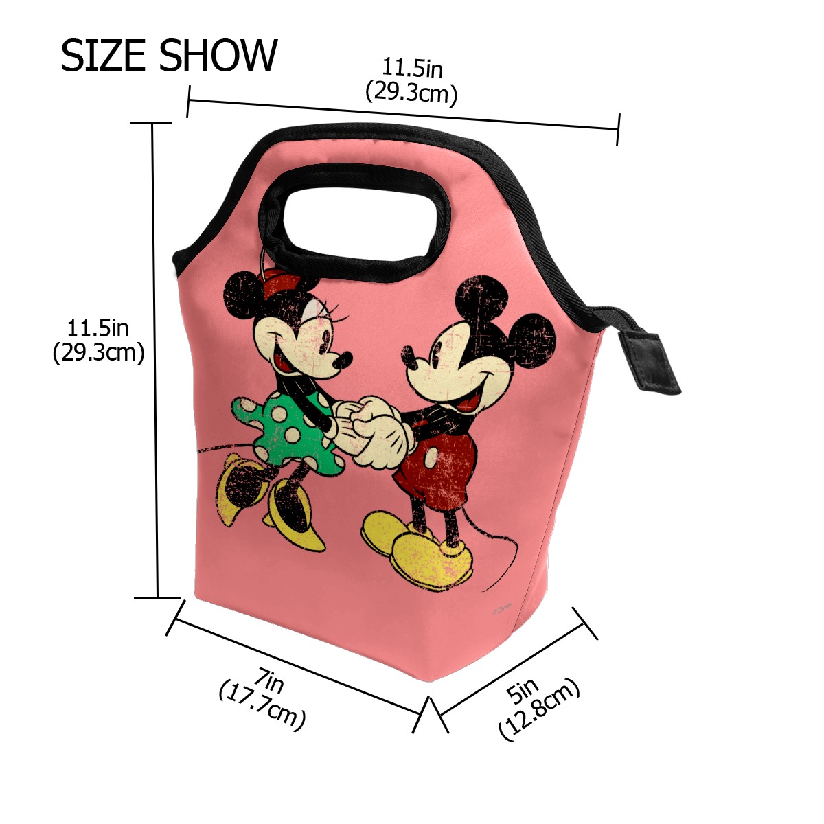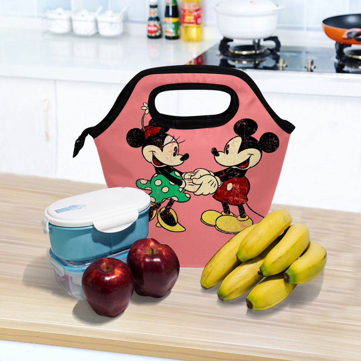 Pink Vintage Minnie Mickey Mouse Pattern lunch bag