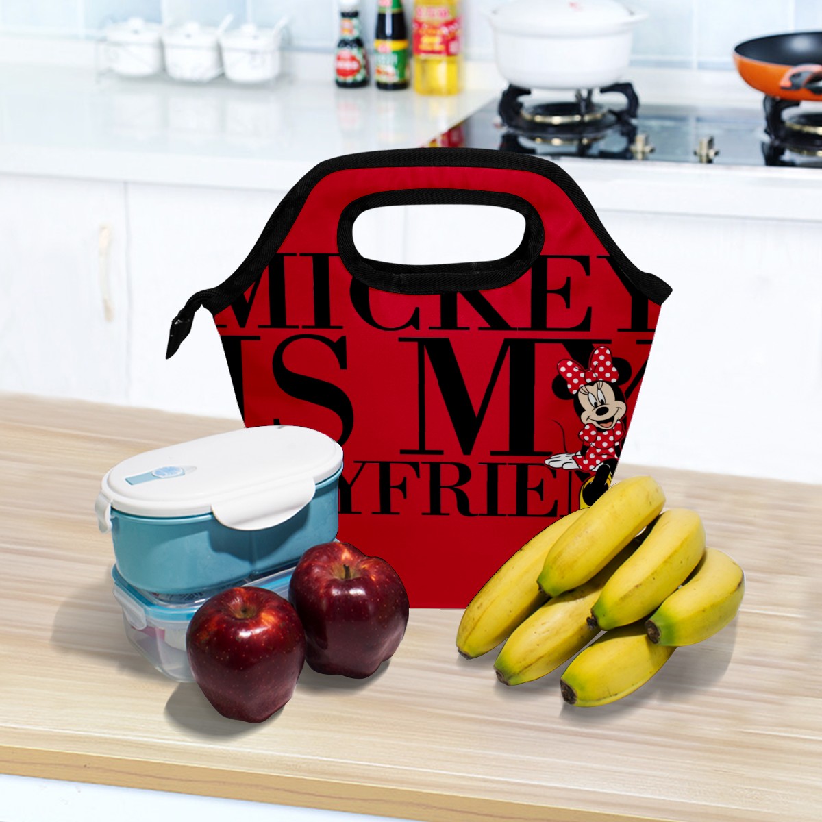 Red Minnie Mouse Mickey Is My Boyfriend lunch bag