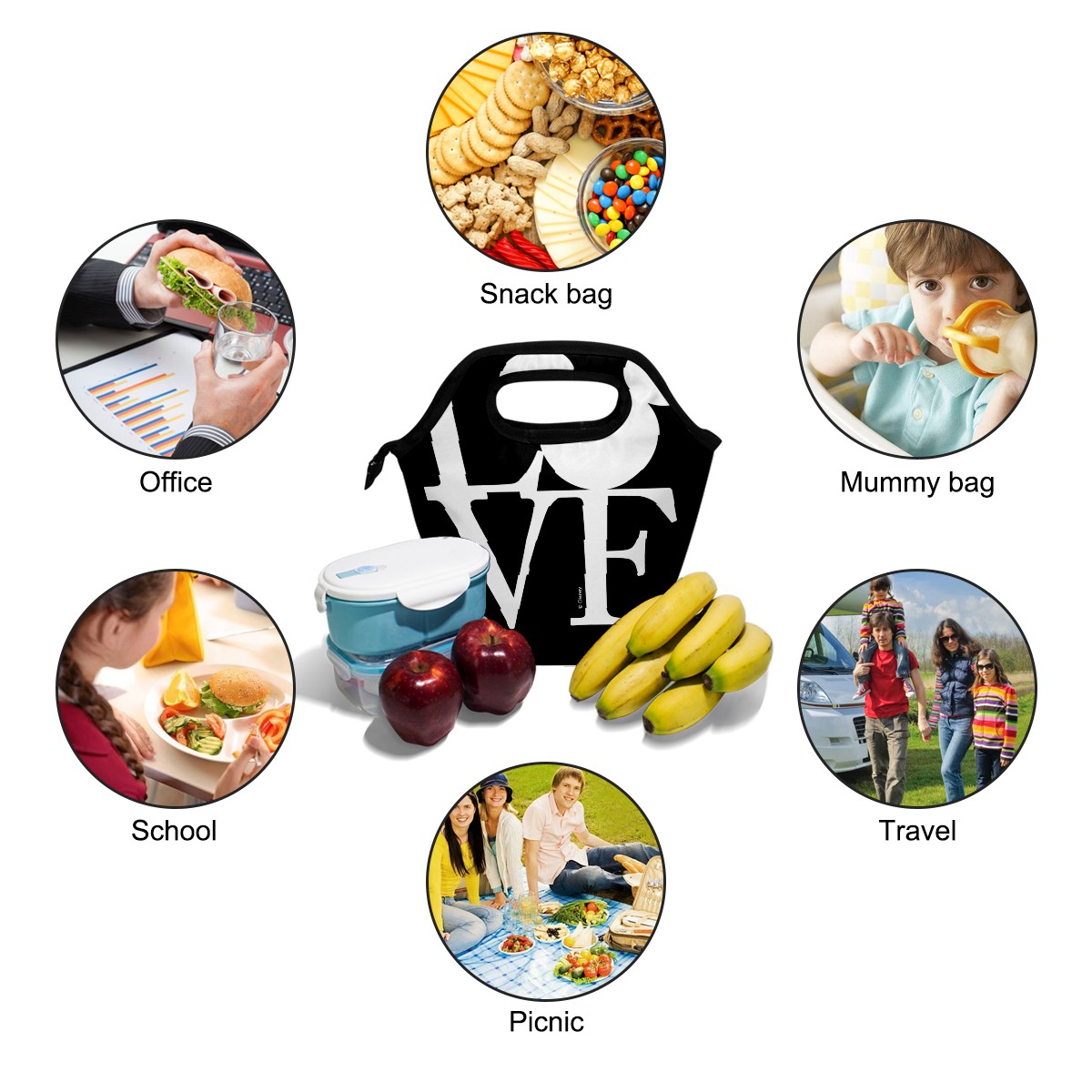 Mickey Mouse LOVE Valentine's Day Black lunch bag