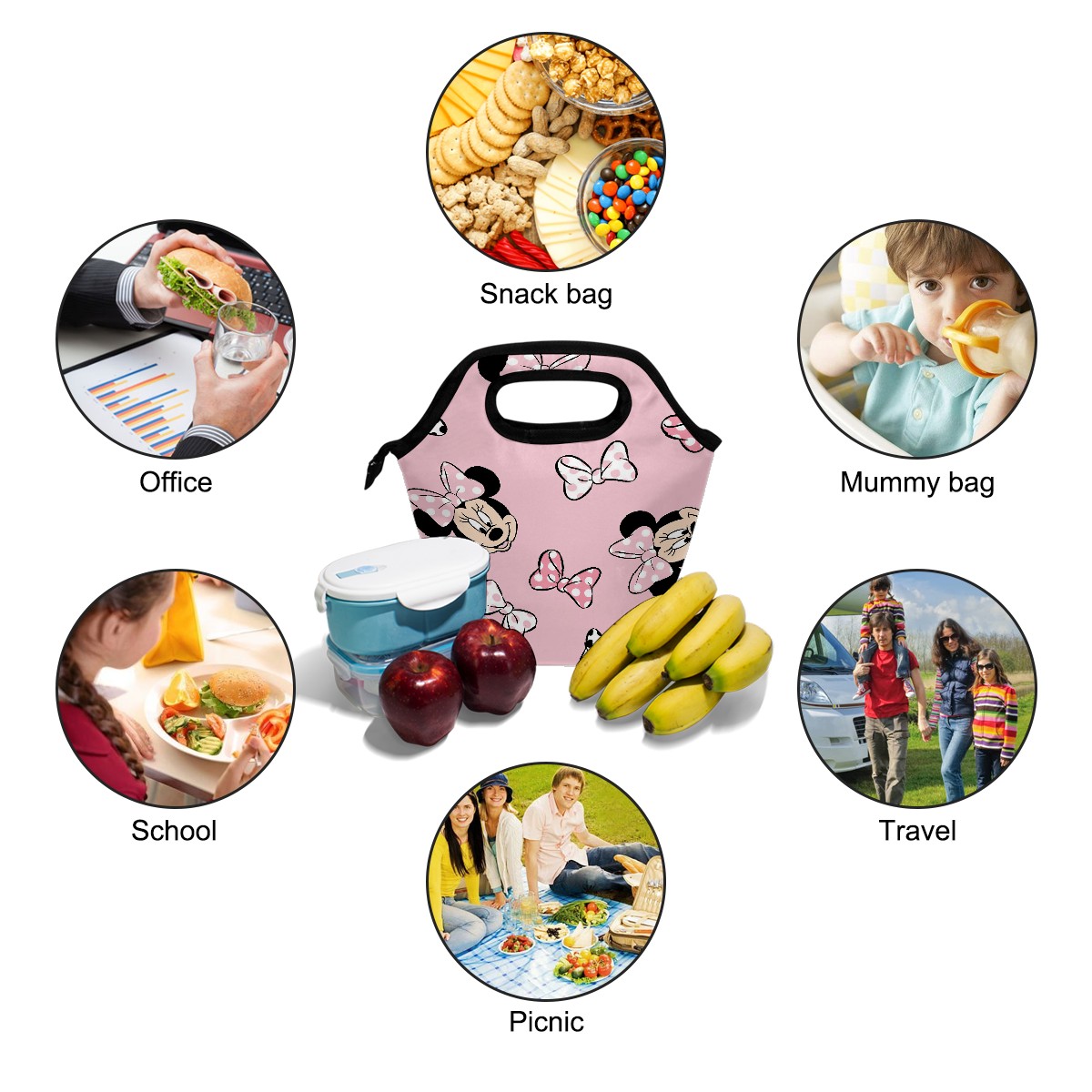 Mickey Mouse Minnie Pink Background lunch bag