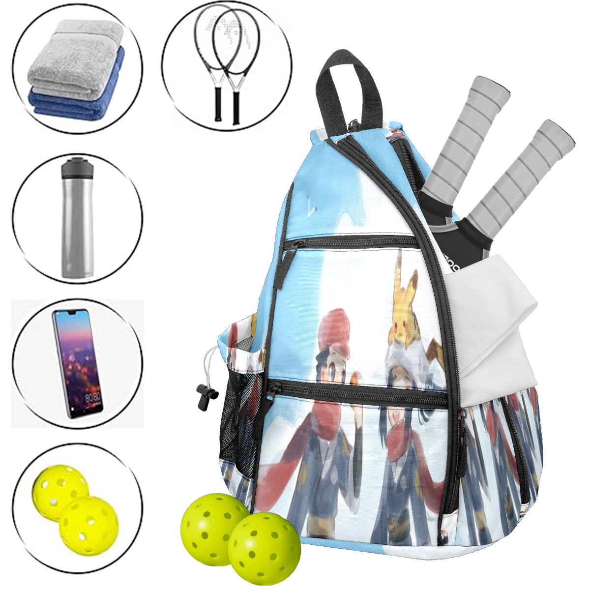 Multifunctional Pickleball Bag,Large Capacity Sports Pickleball Racket Bag, Water Bottle Holder and Fence Hook,Suitable for Both Men Women -横图C (187)