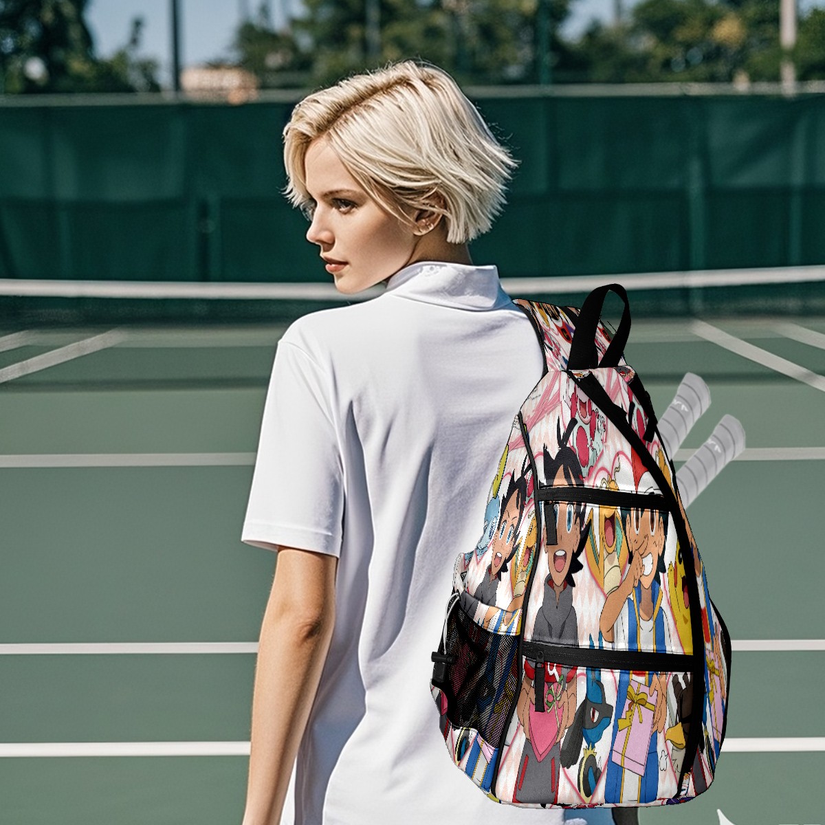 Multifunctional Pickleball Bag,Large Capacity Sports Pickleball Racket Bag, Water Bottle Holder and Fence Hook,Suitable for Both Men Women -横图C (186)