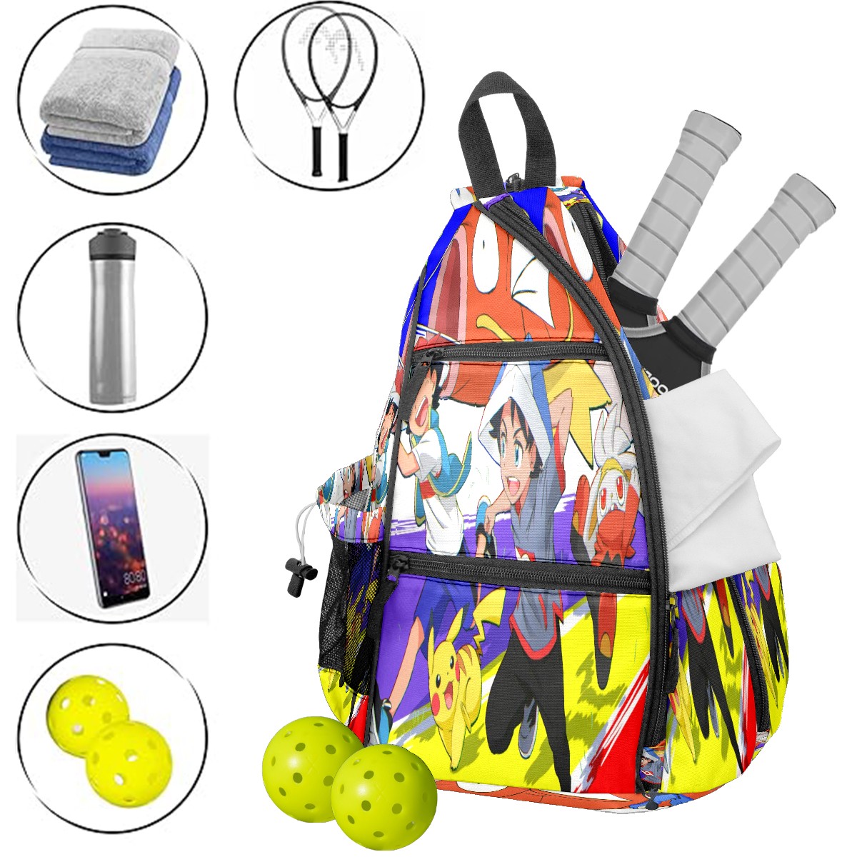 Multifunctional Pickleball Bag,Large Capacity Sports Pickleball Racket Bag, Water Bottle Holder and Fence Hook,Suitable for Both Men Women -横图C (174)