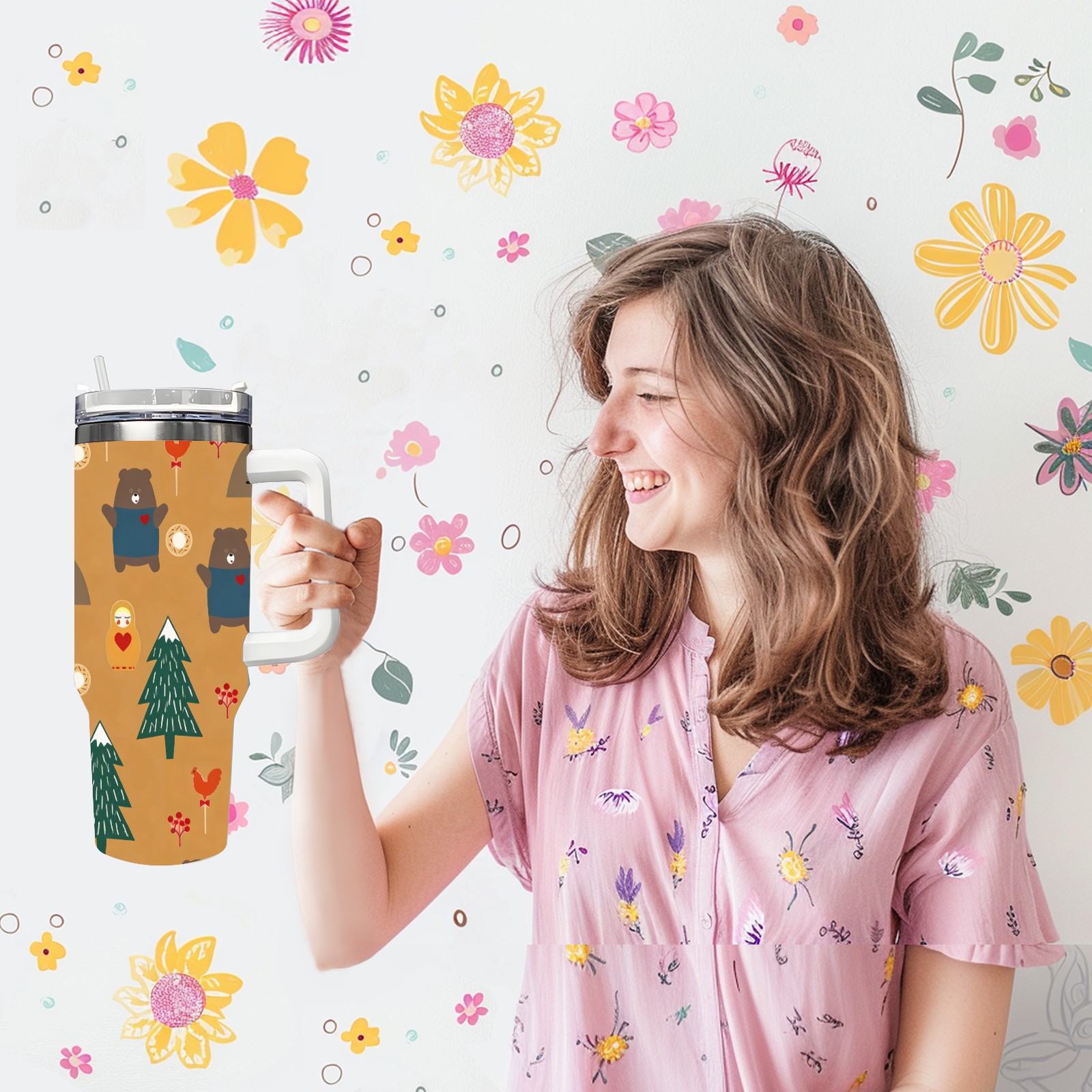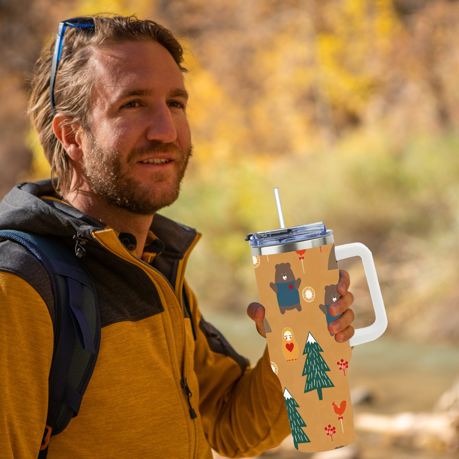 40 унций полностью напечатанный автомобильный стакан Warm Animals Brown