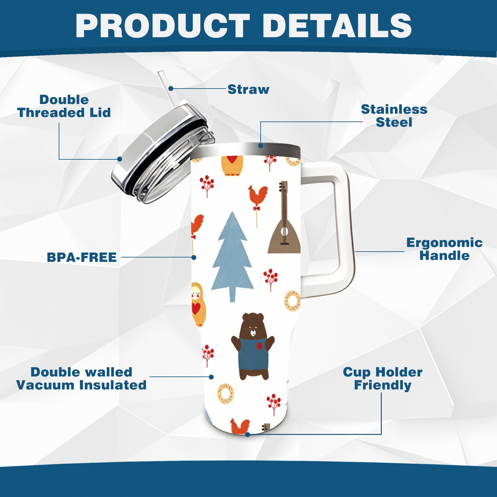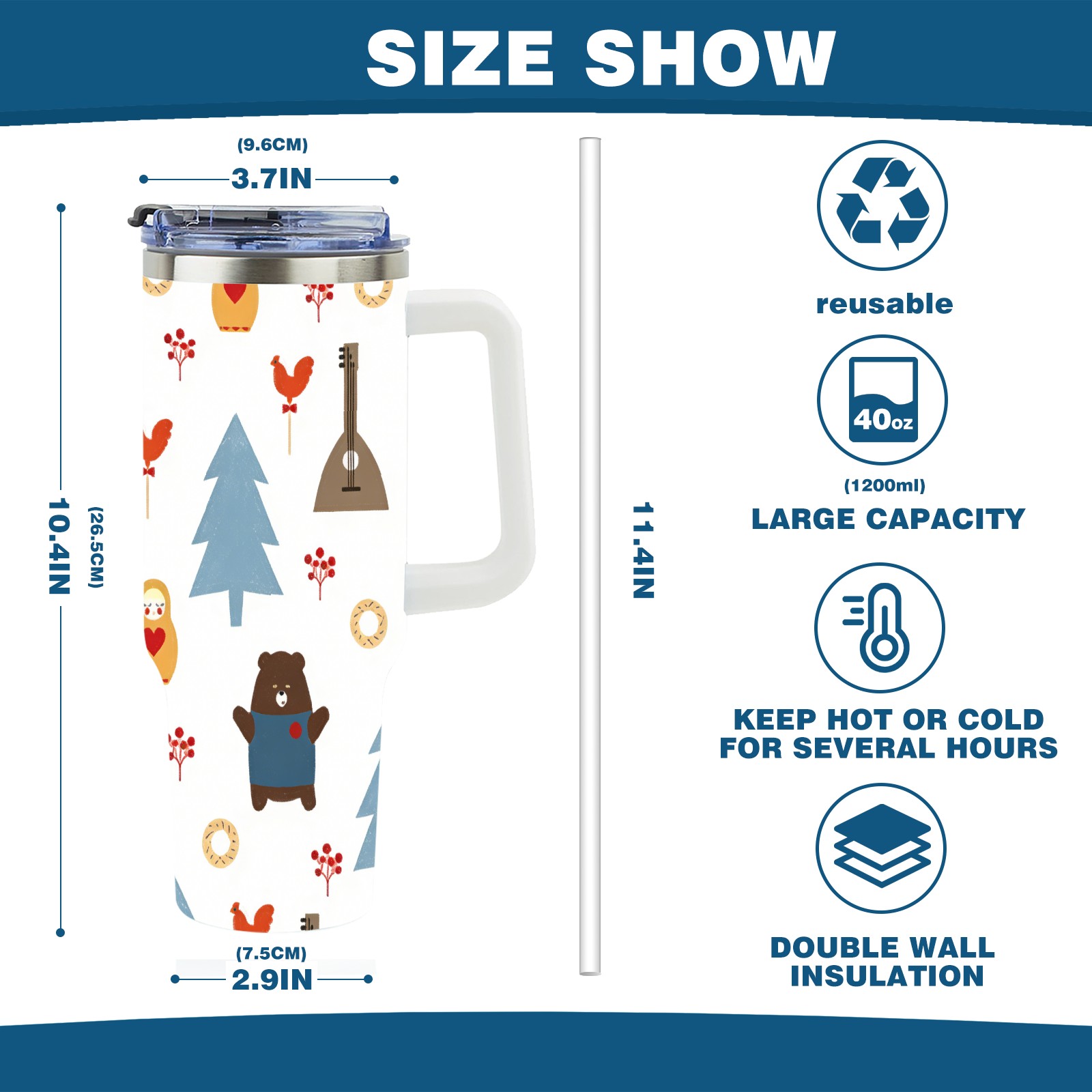 • С большой емкостью 40 унций, он обеспечивает вас гидратацией в течение всего дня, идеально подходит для воды, кофе, сока или других напитков. Эргономичный дизайн идеально вписывается в автомобильные держатели для бутылок, а прочный, герметичный колпачок предотвращает утечки во время передвижения. Путешествие. Антискользящее основание обеспечивает устойчивость, а гладкие поверхности делают уборку легкой — просто мойте вручную или кладите в посудомоечную машину (рекомендуется верхний поддон).