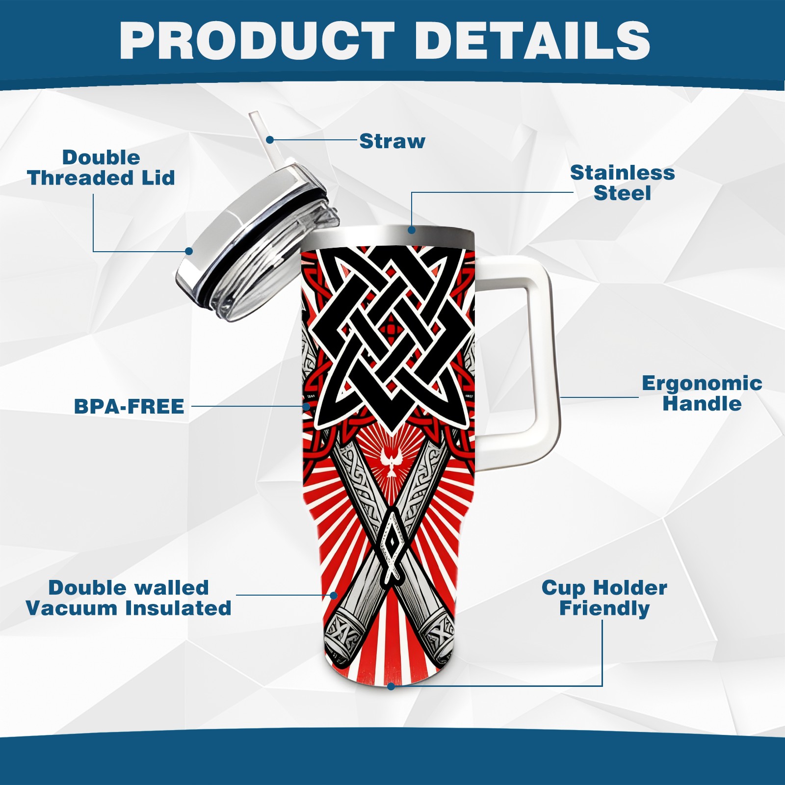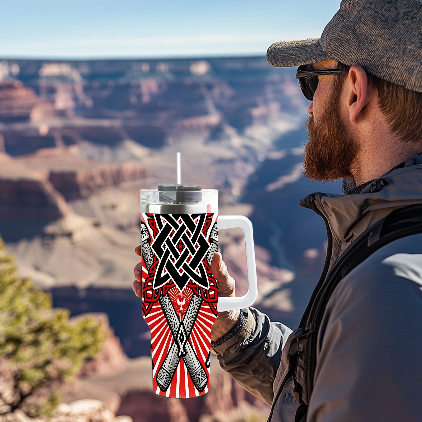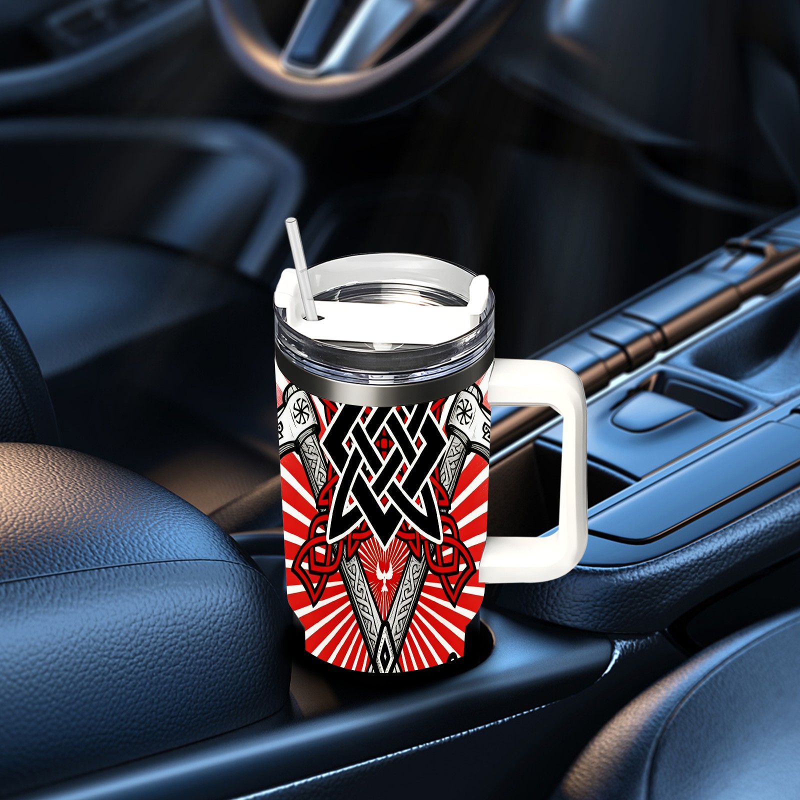 40 унций полностью напечатанный автомобильный стакан Cool Axes Red
