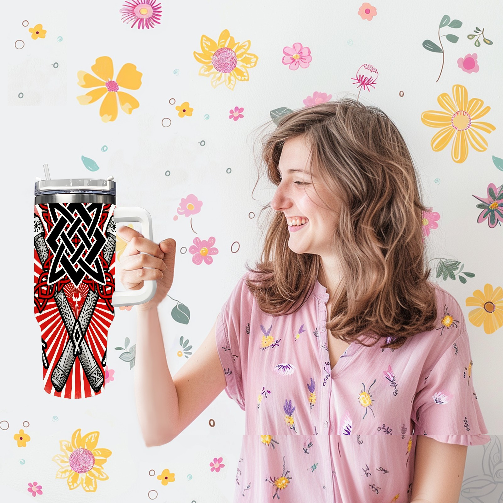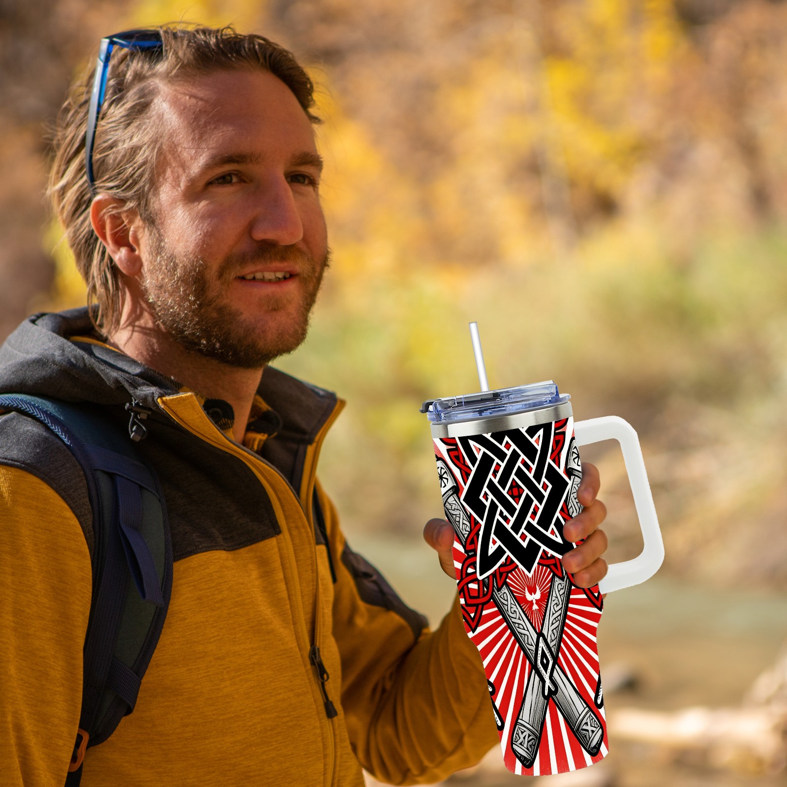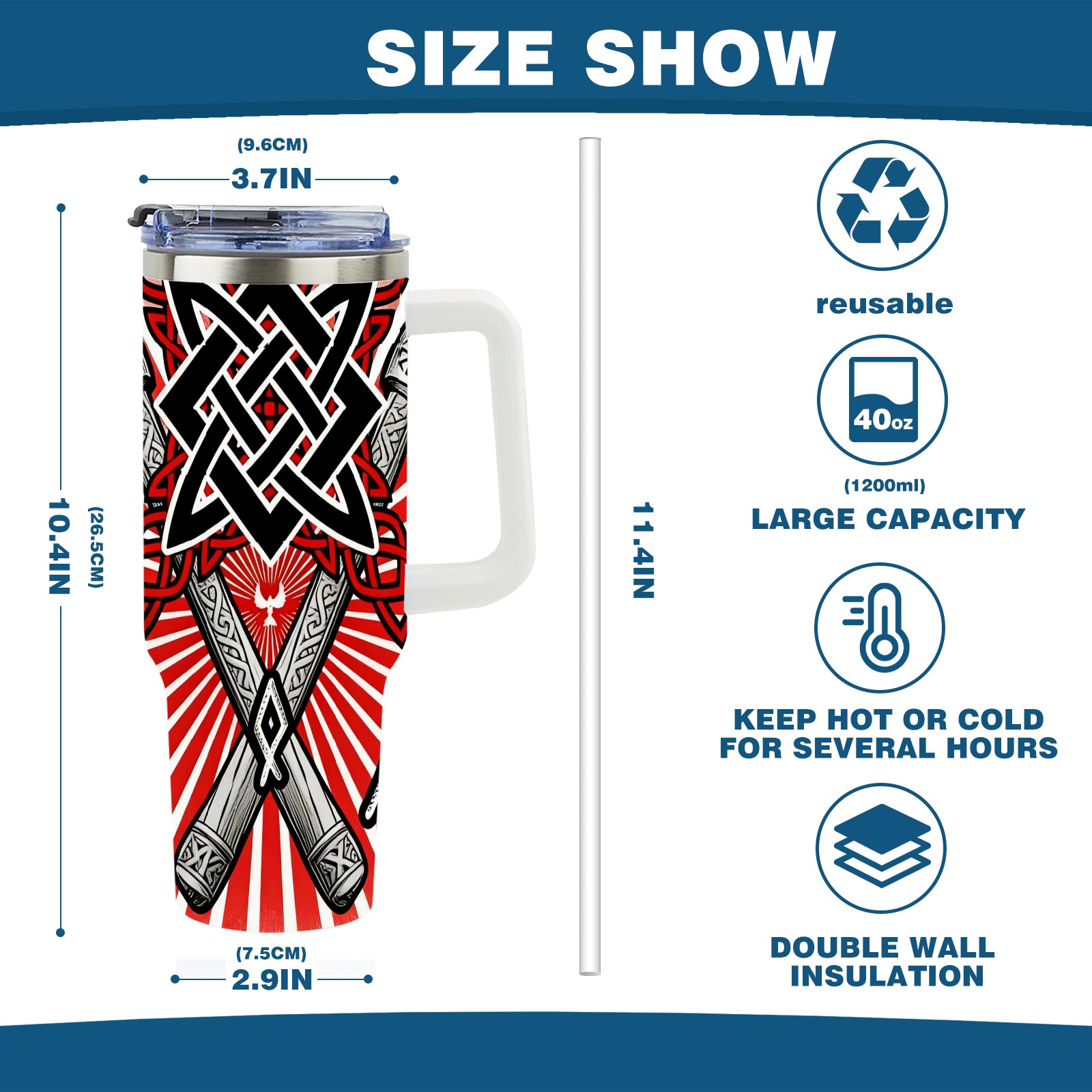 40 унций полностью напечатанный автомобильный стакан Cool Axes Red