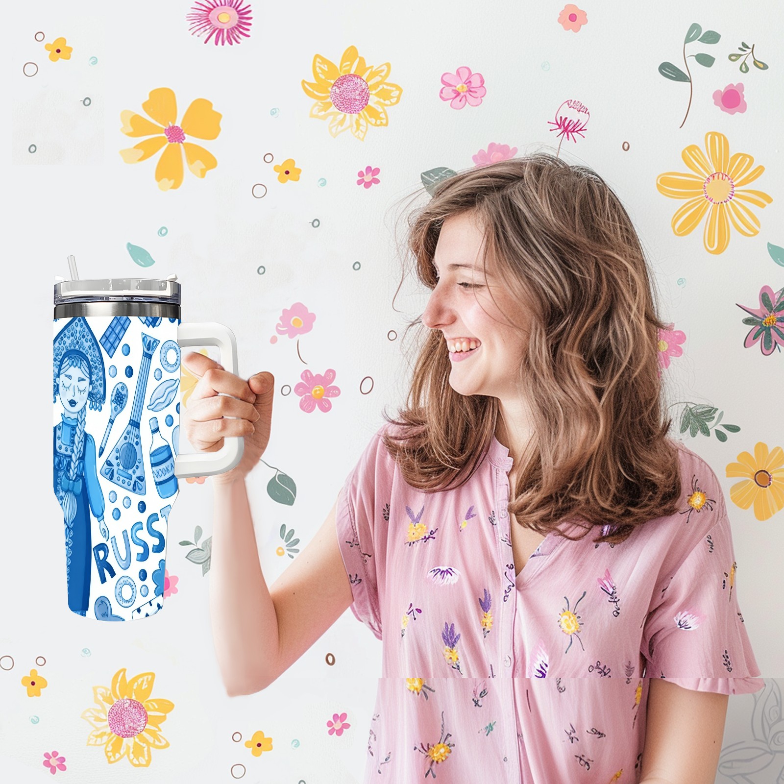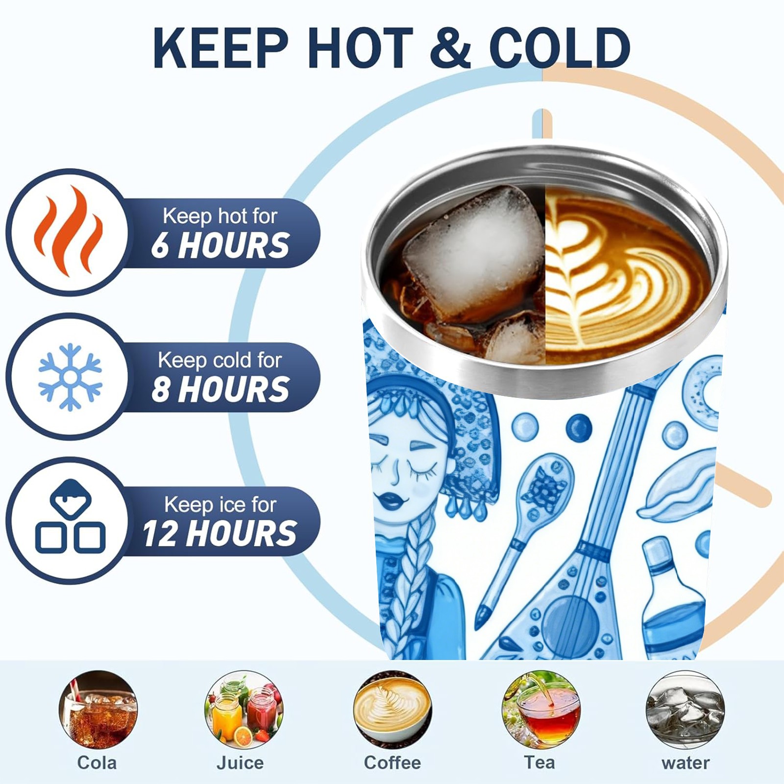 40 унций полностью напечатанный автомобильный стакан Fresh Dolls Blue