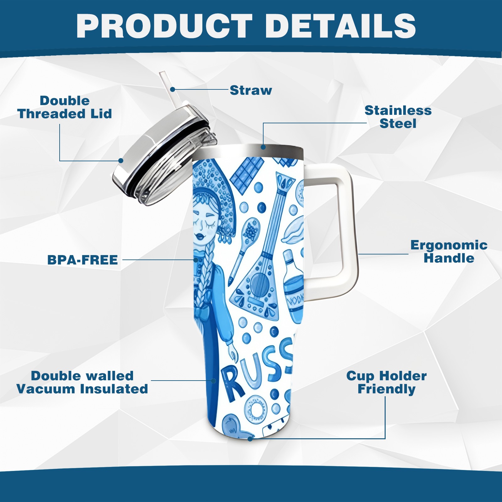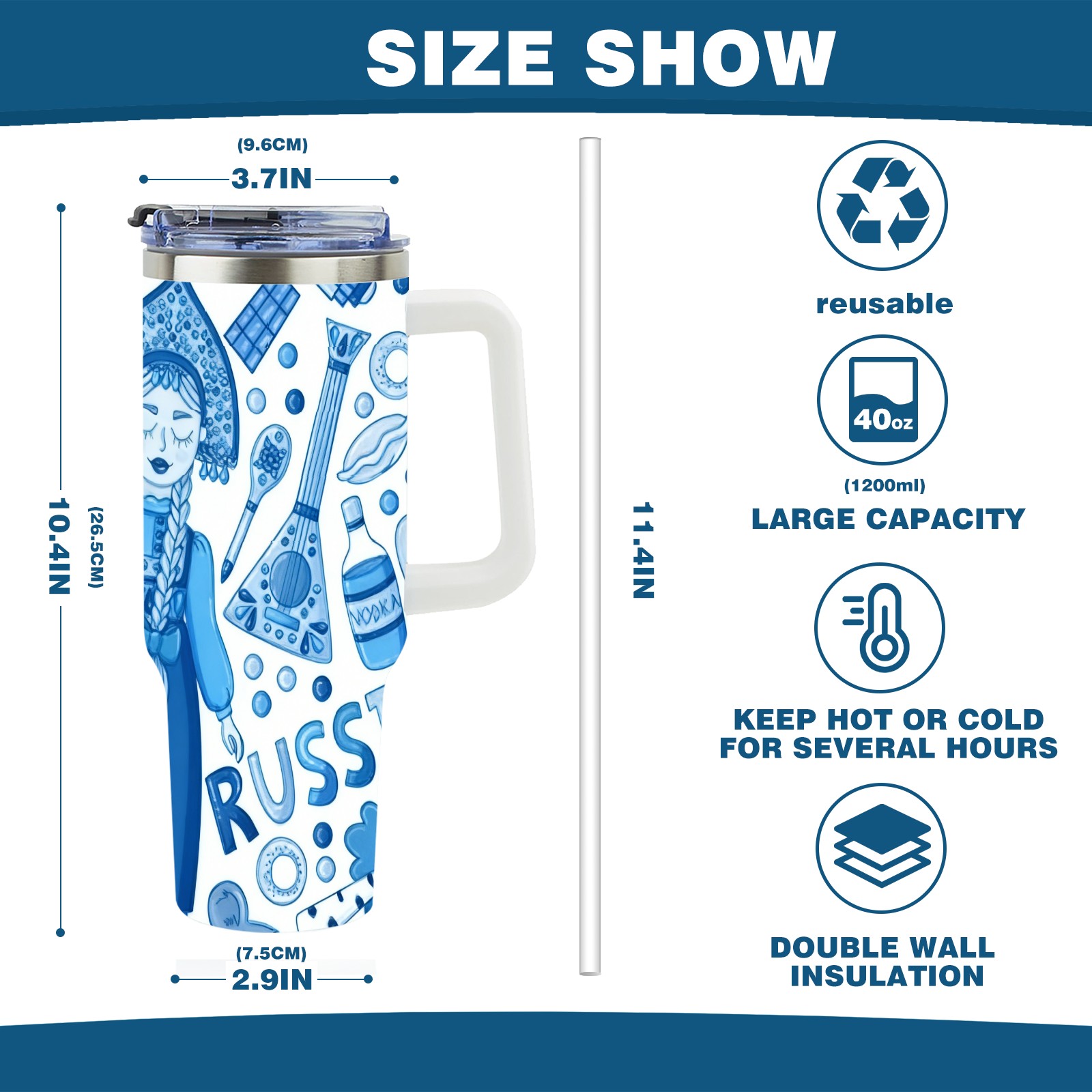 • С большой емкостью 40 унций, он обеспечивает вас гидратацией в течение всего дня, идеально подходит для воды, кофе, сока или других напитков. Эргономичный дизайн идеально вписывается в автомобильные держатели для бутылок, а прочный, герметичный колпачок предотвращает утечки во время передвижения. Путешествие. Антискользящее основание обеспечивает устойчивость, а гладкие поверхности делают уборку легкой — просто мойте вручную или кладите в посудомоечную машину (рекомендуется верхний поддон).
