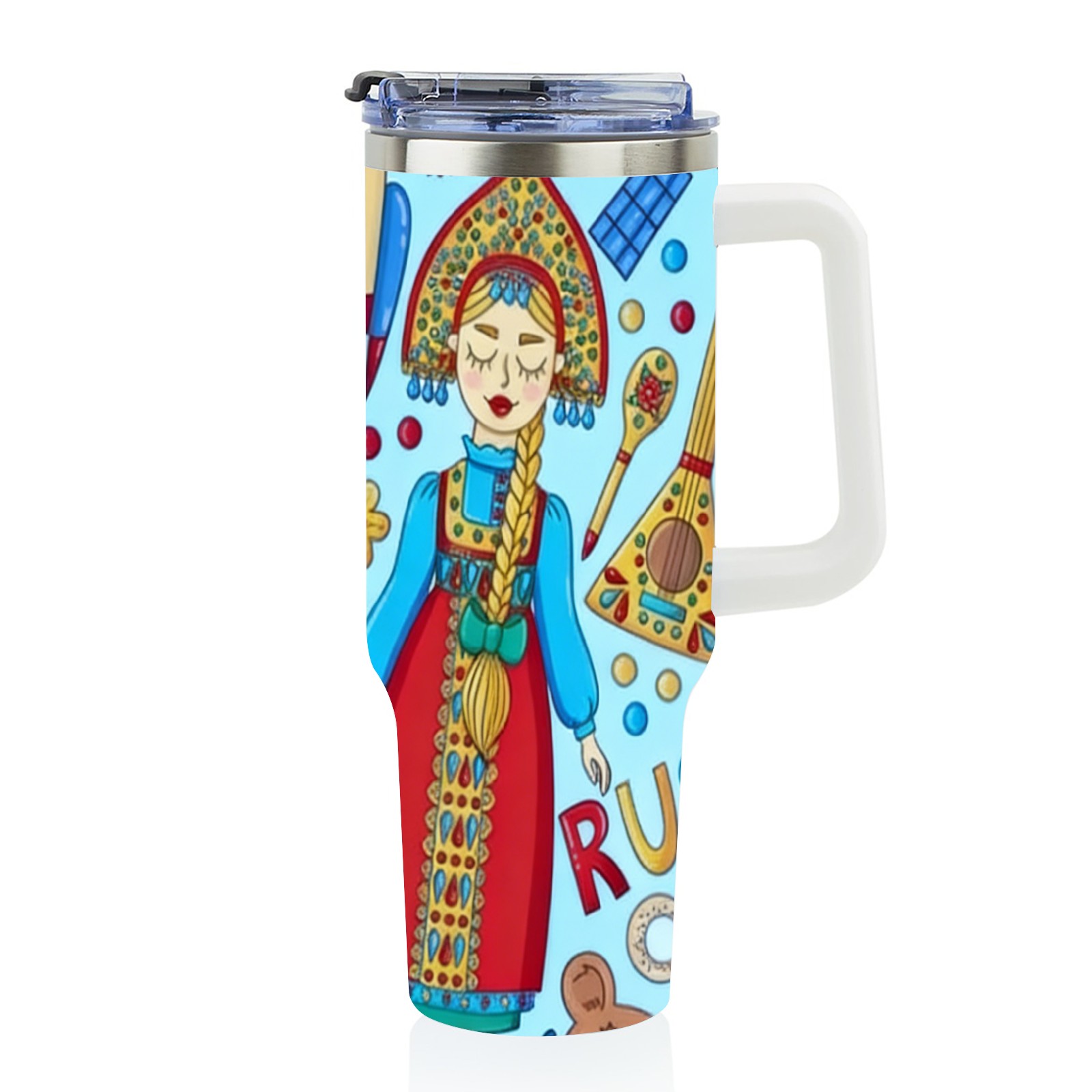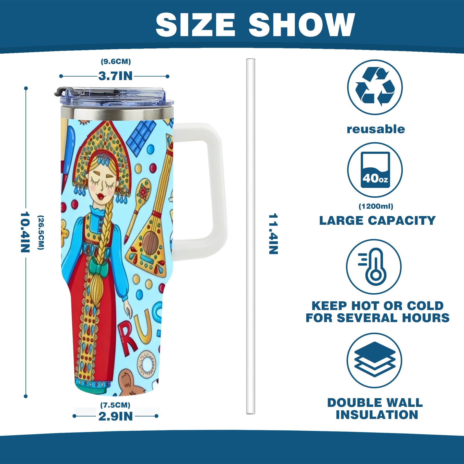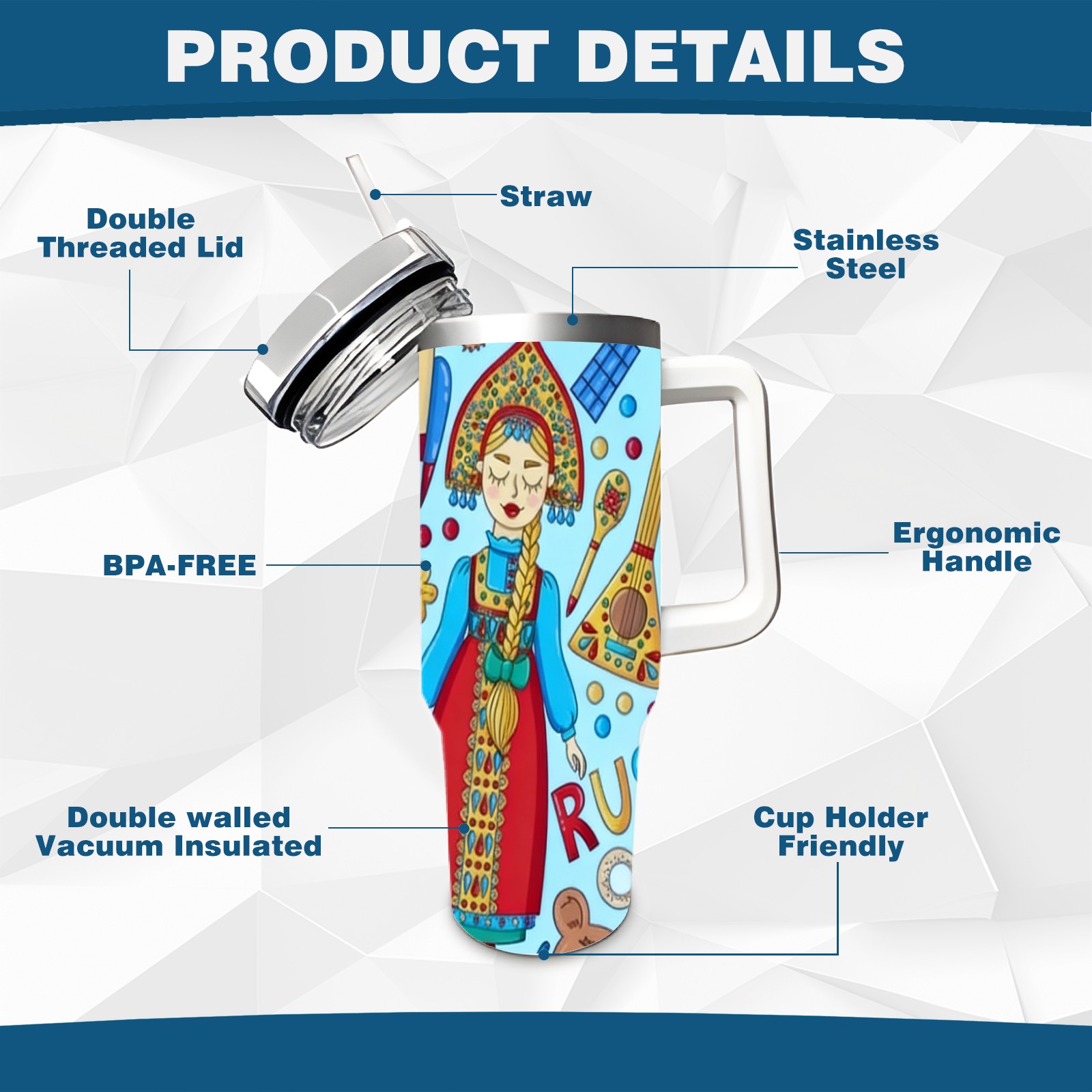 40 унций полностью напечатанный автомобильный стакан Vibrant Folk Blue