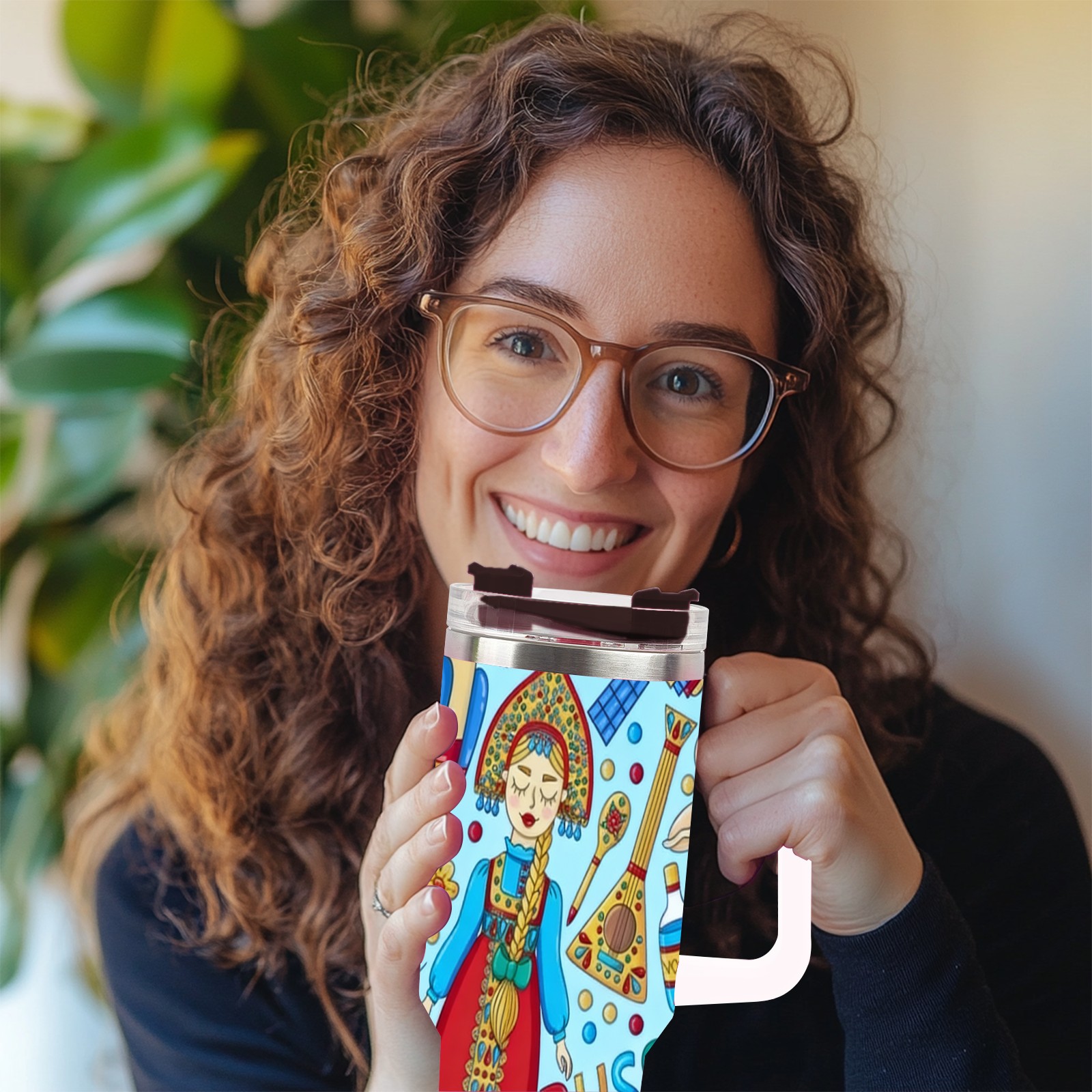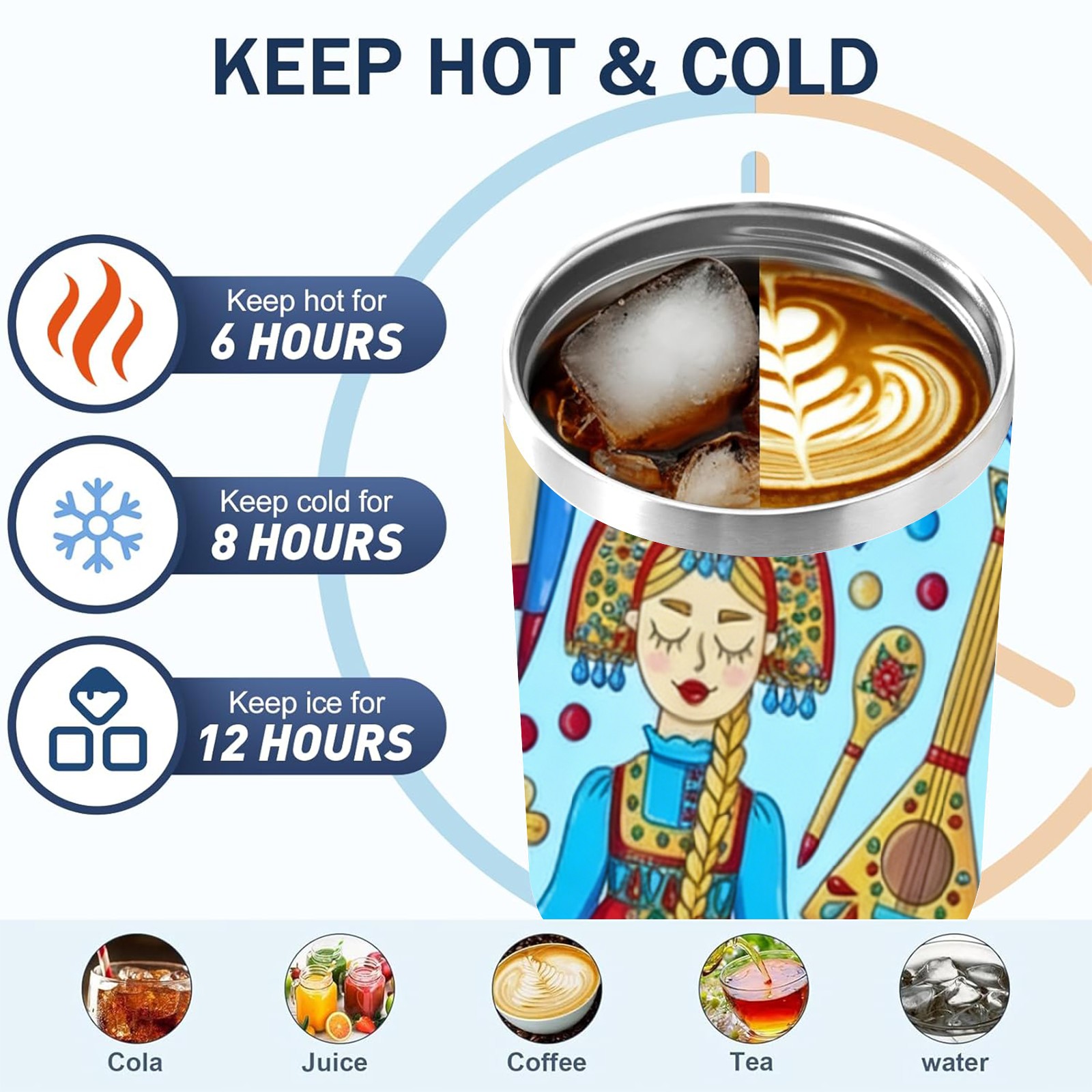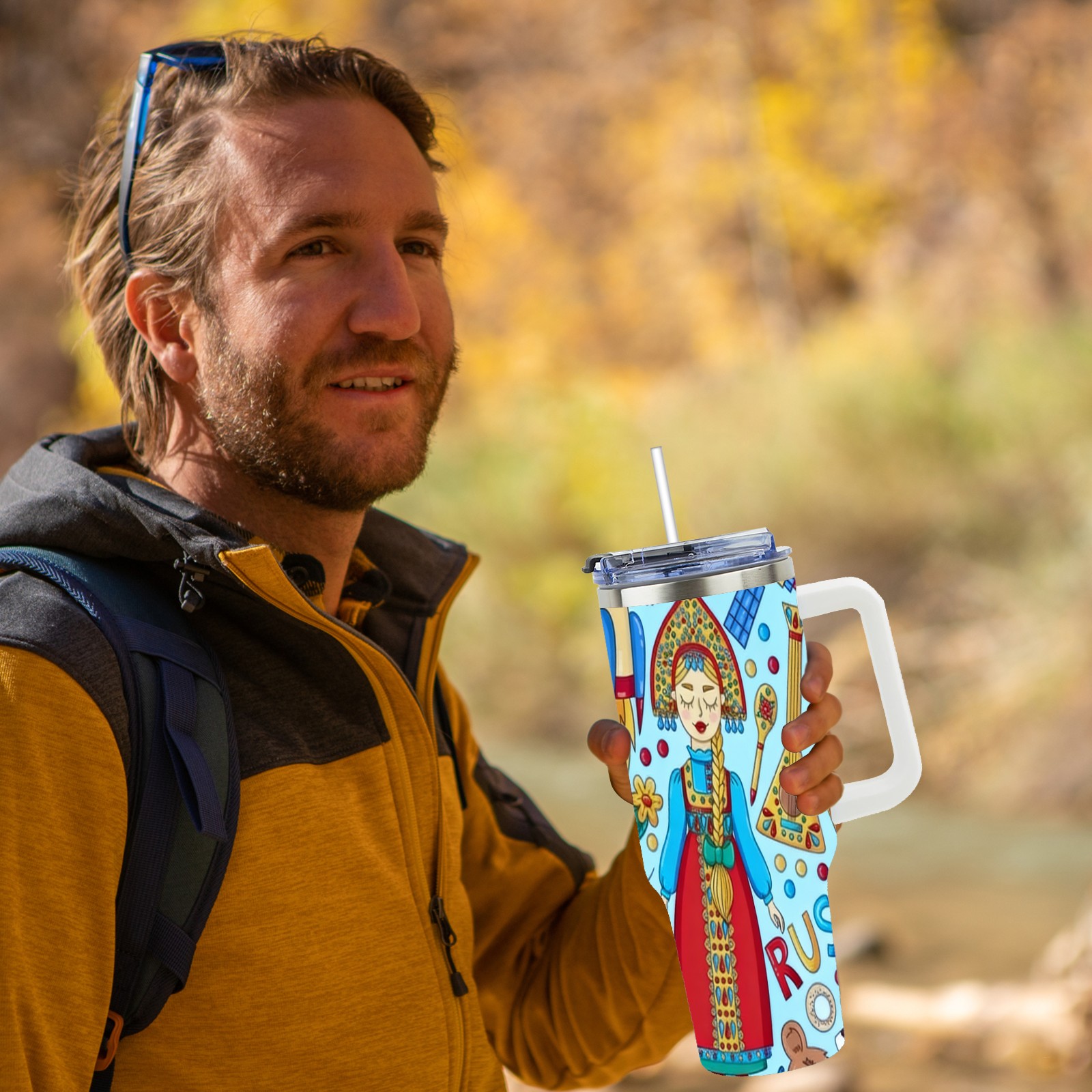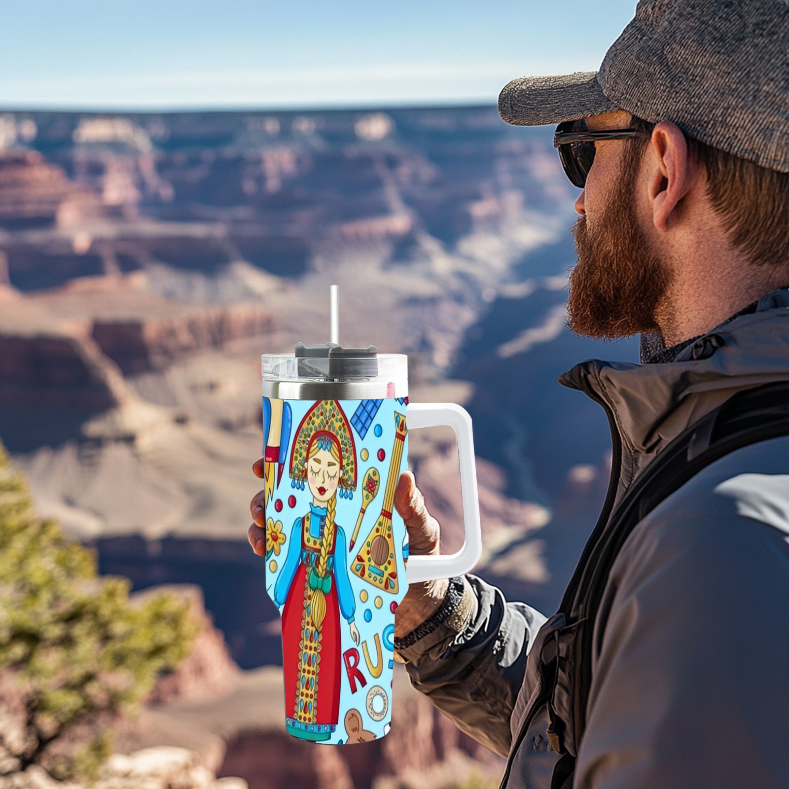 40 унций полностью напечатанный автомобильный стакан Vibrant Folk Blue