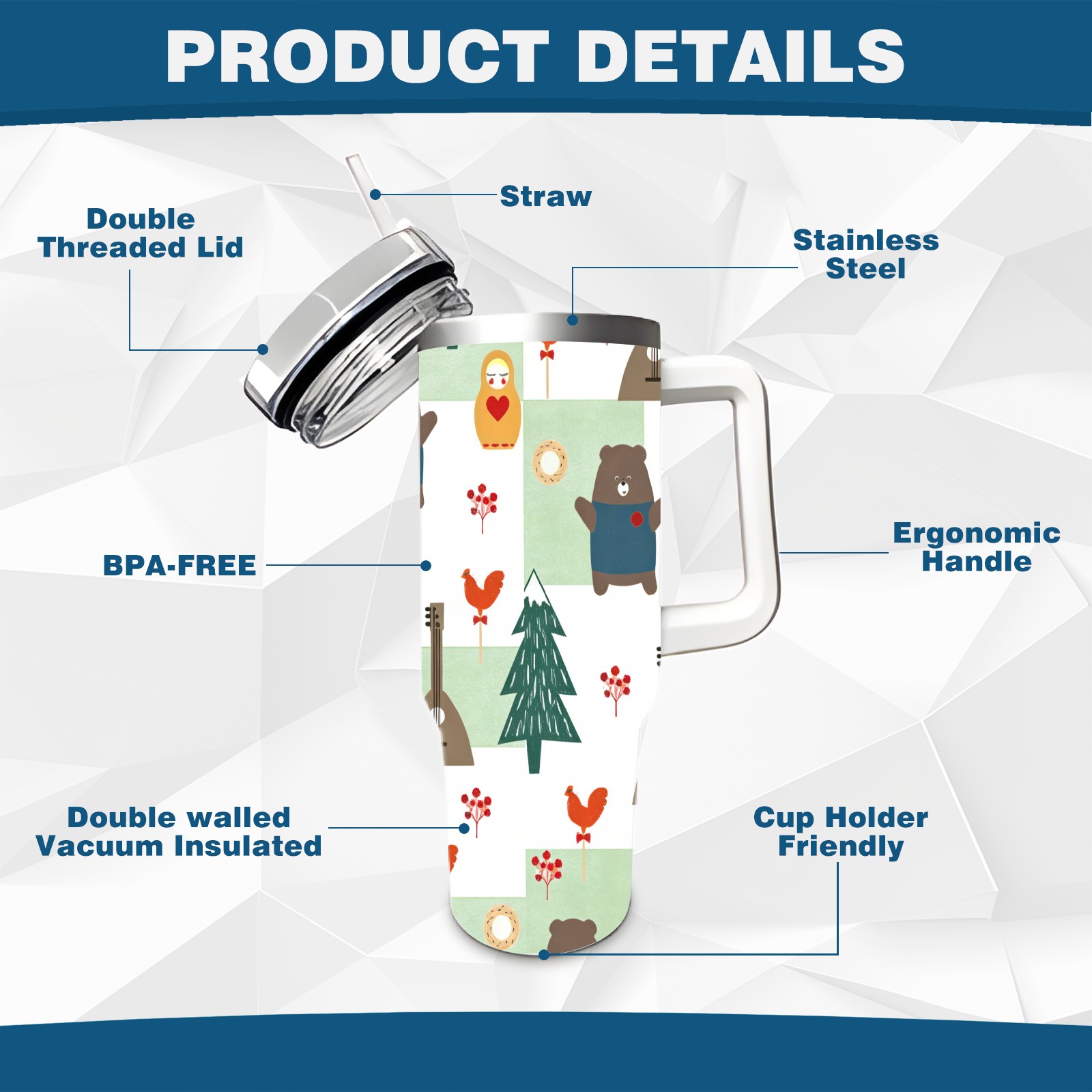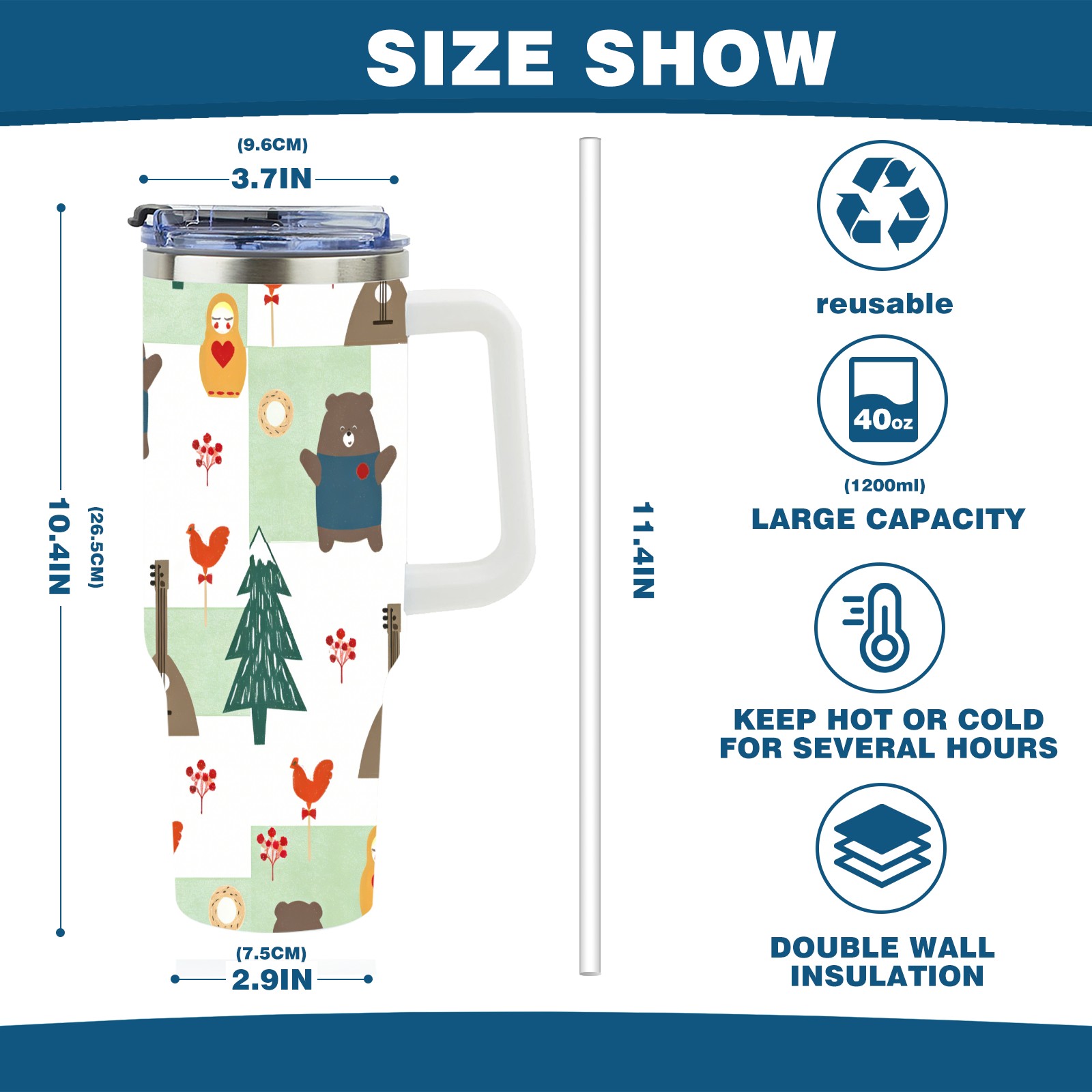• С большой емкостью 40 унций, он обеспечивает вас гидратацией в течение всего дня, идеально подходит для воды, кофе, сока или других напитков. Эргономичный дизайн идеально вписывается в автомобильные держатели для бутылок, а прочный, герметичный колпачок предотвращает утечки во время передвижения. Путешествие. Антискользящее основание обеспечивает устойчивость, а гладкие поверхности делают уборку легкой — просто мойте вручную или кладите в посудомоечную машину (рекомендуется верхний поддон).