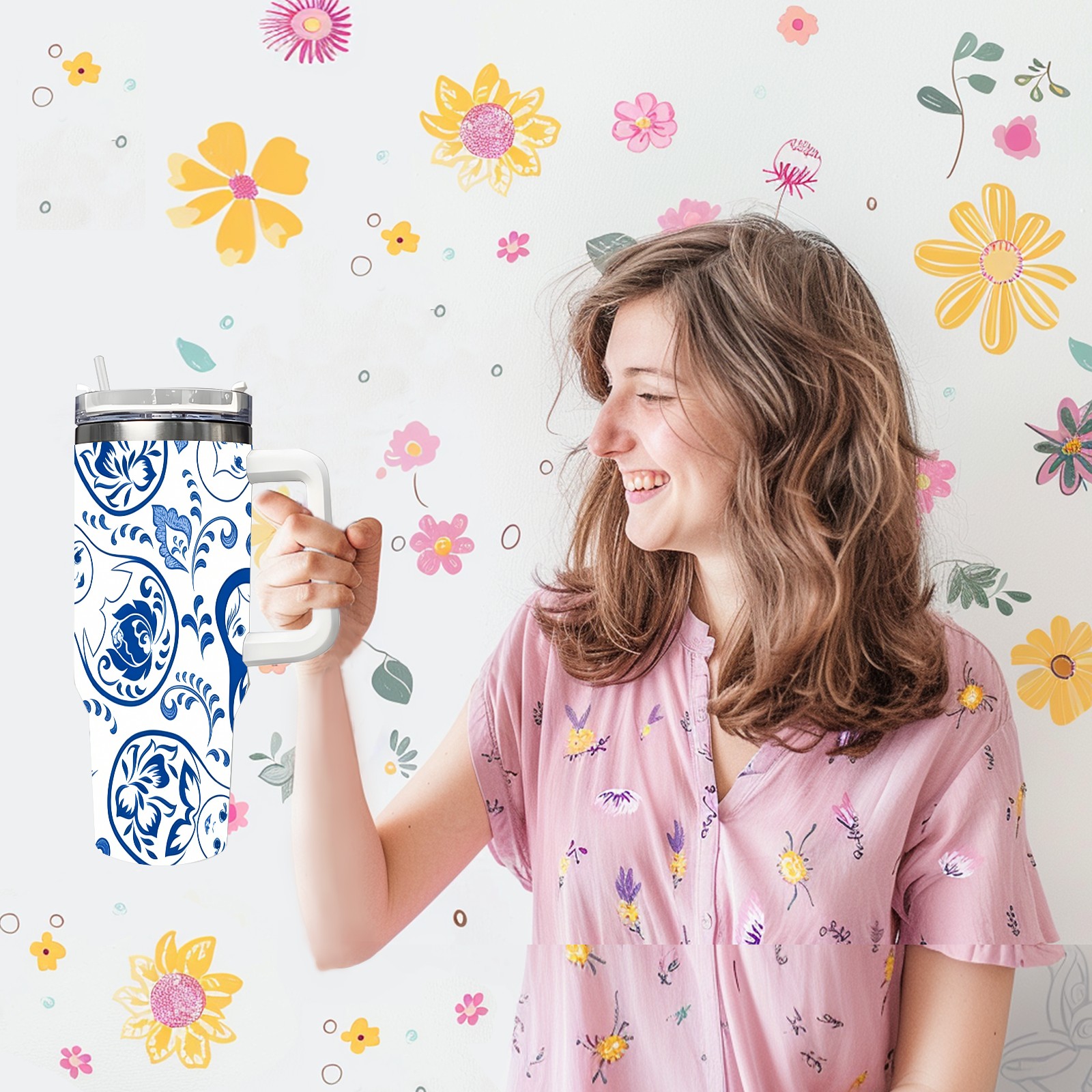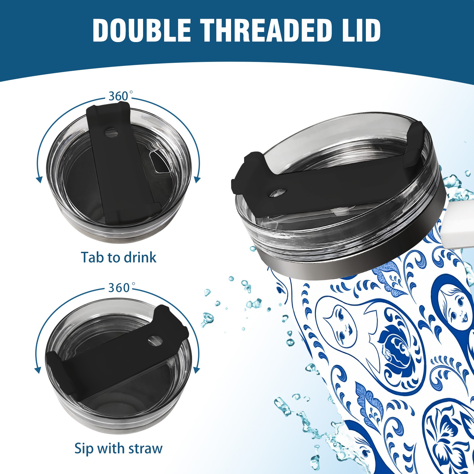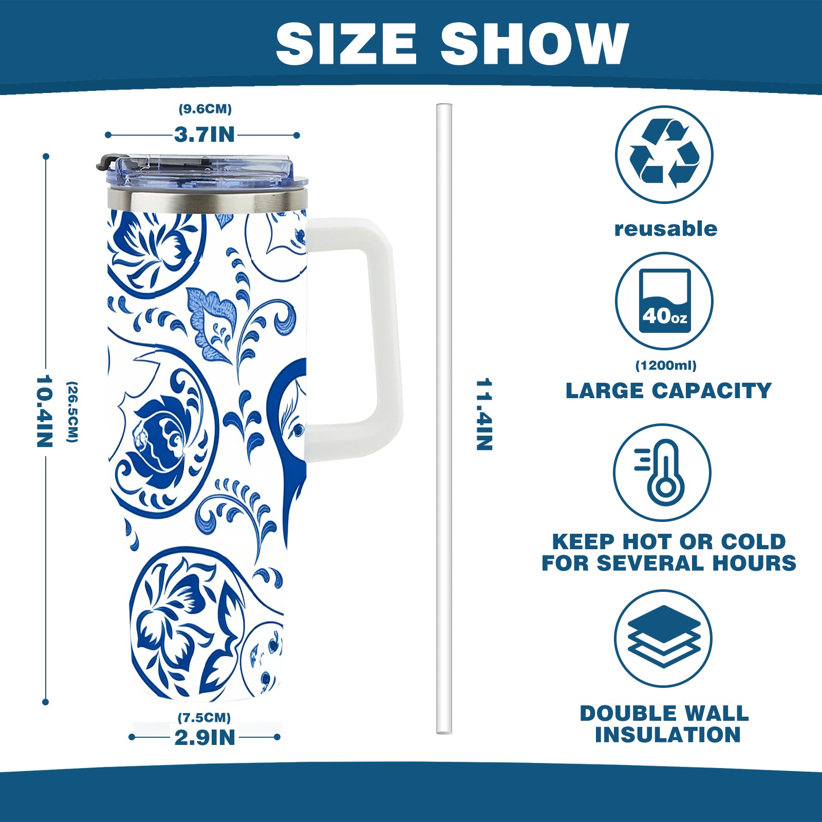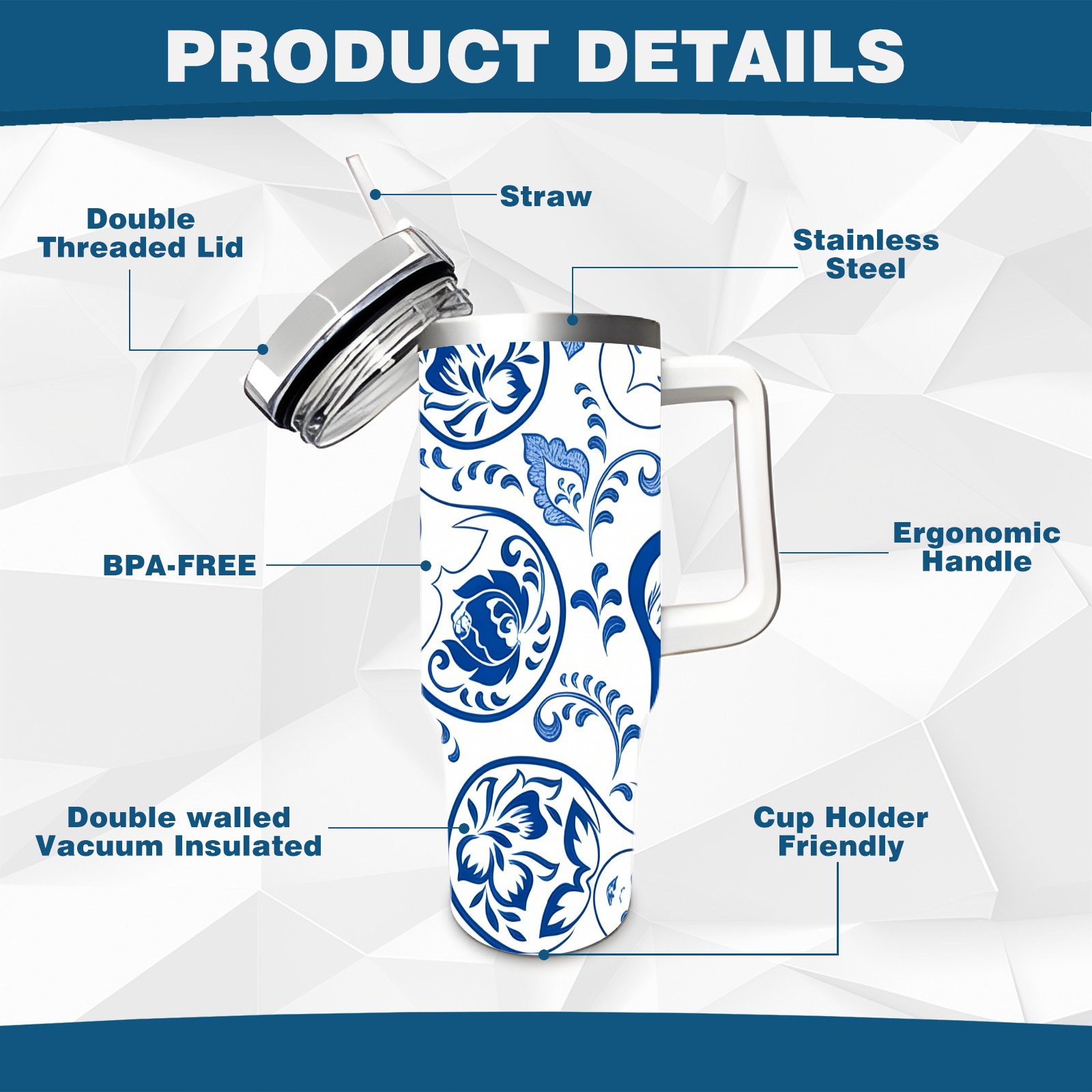 40 унций полностью напечатанный автомобильный стакан Elegant Patterns Blue