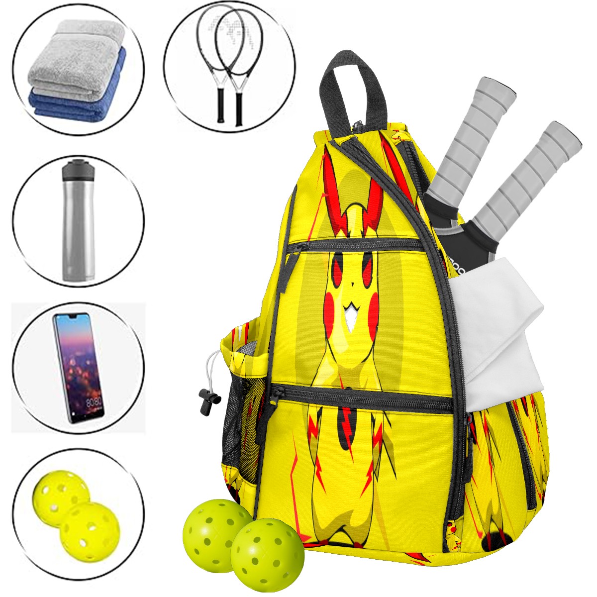 Multifunctional Pickleball Bag,Large Capacity Sports Pickleball Racket Bag, Water Bottle Holder and Fence Hook,Suitable for Both Men Women -横图C (142)