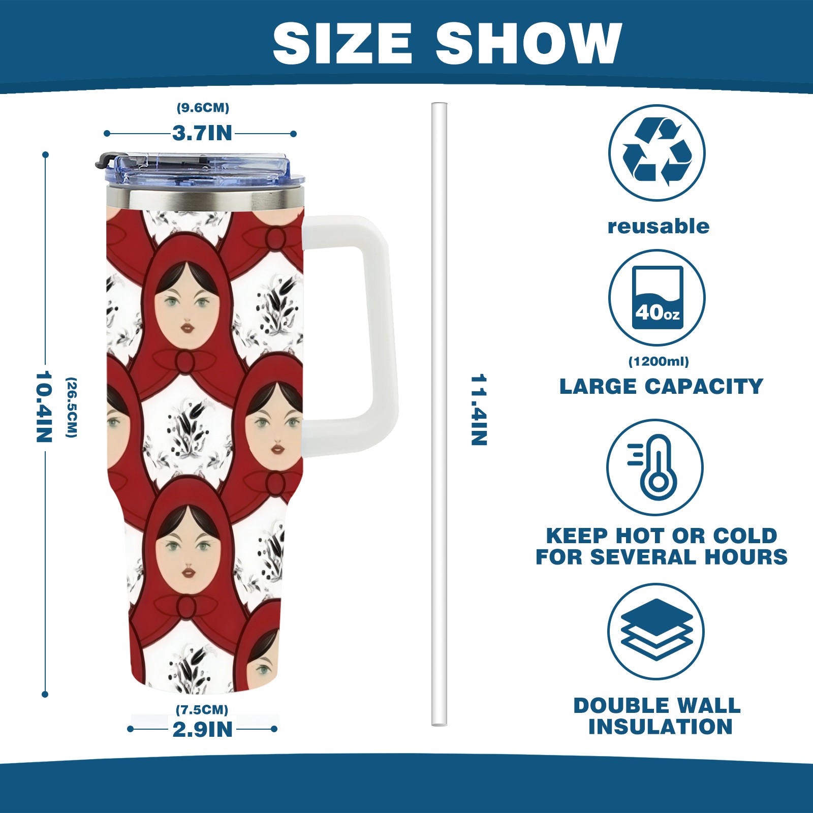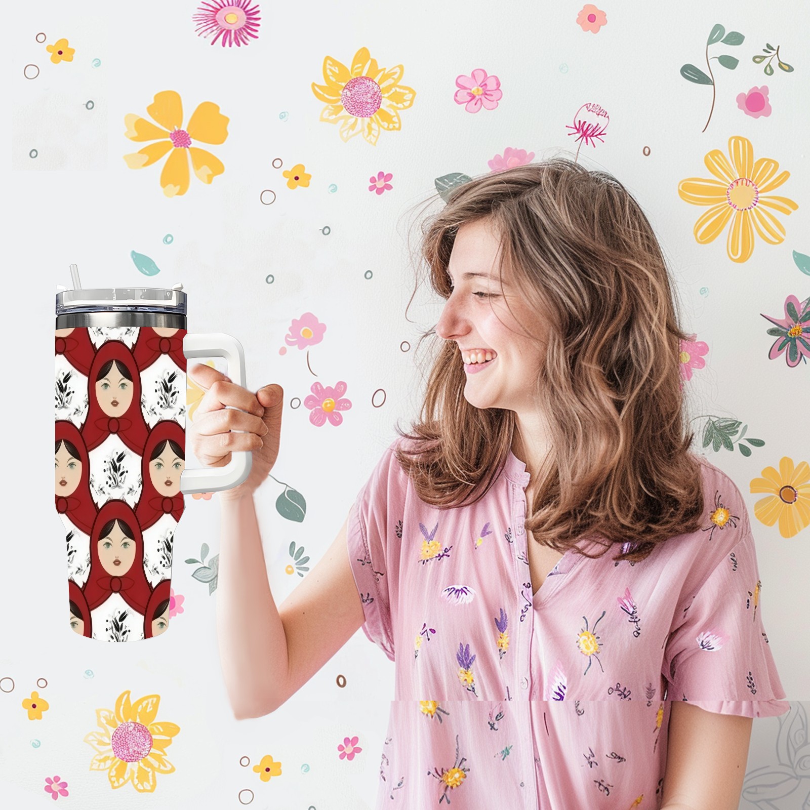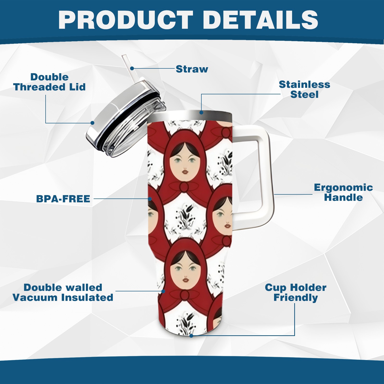 40 унций полностью напечатанный автомобильный стакан Bold Dolls Red