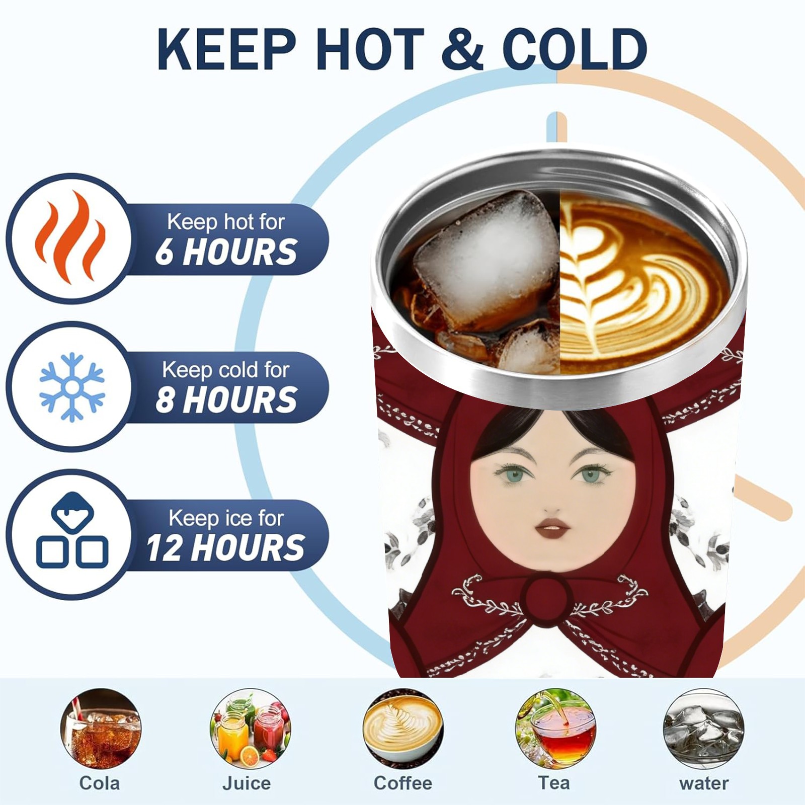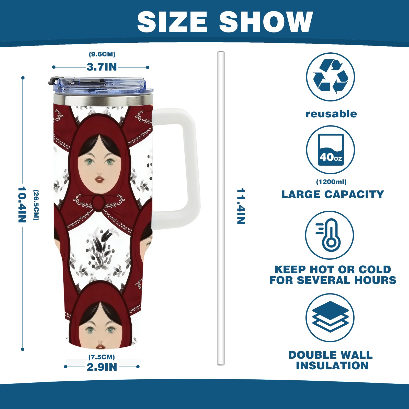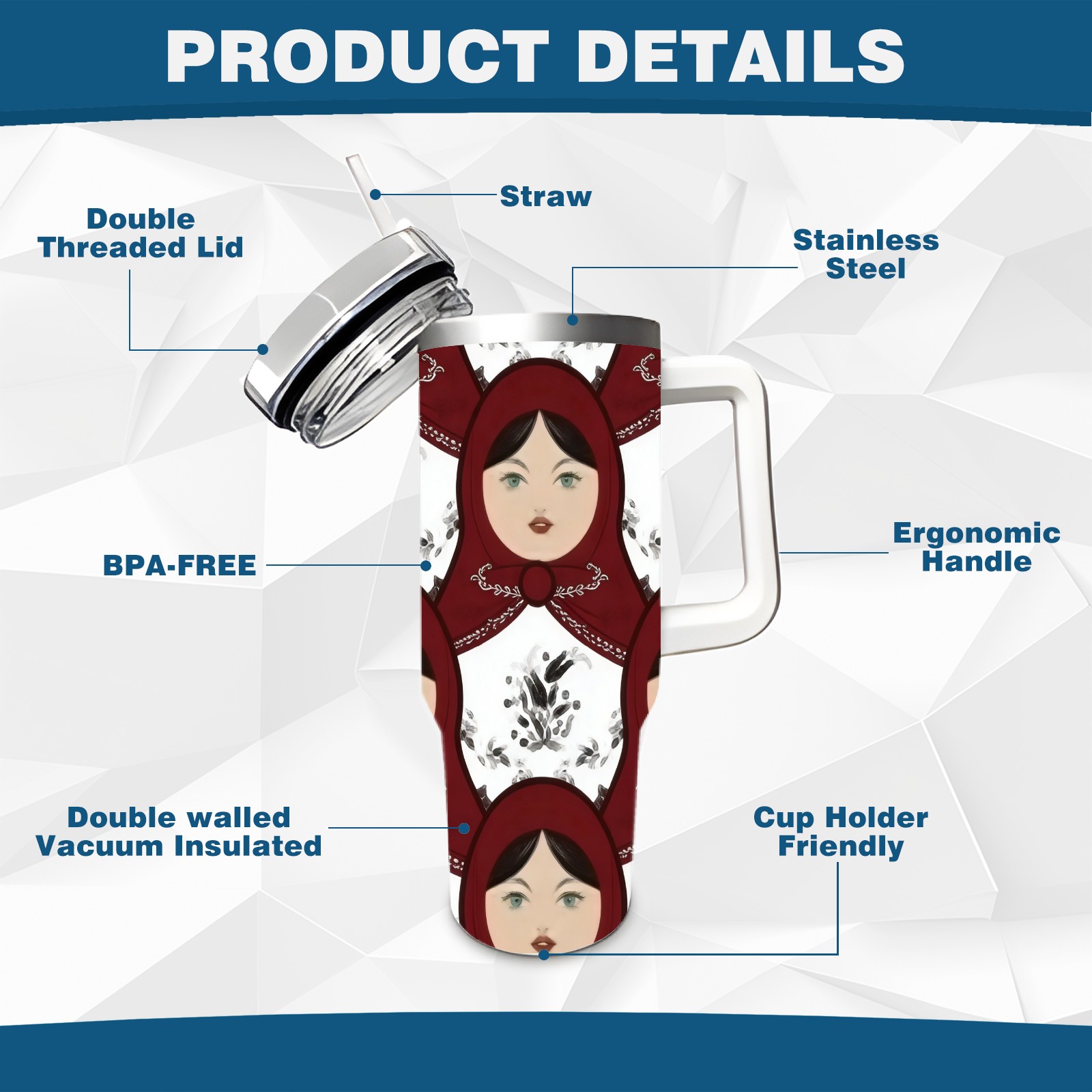 40 унций полностью напечатанный автомобильный стакан Classic Dolls White