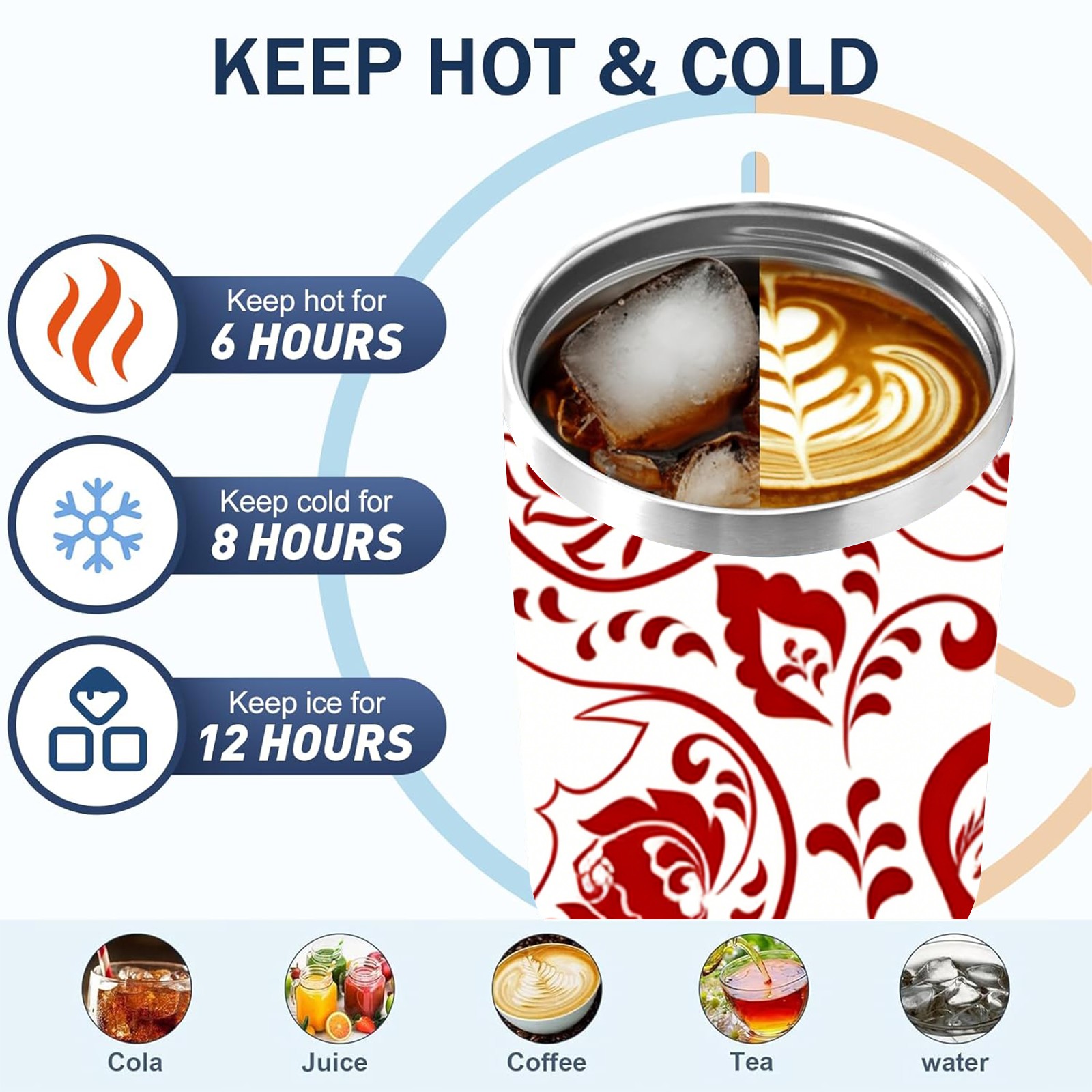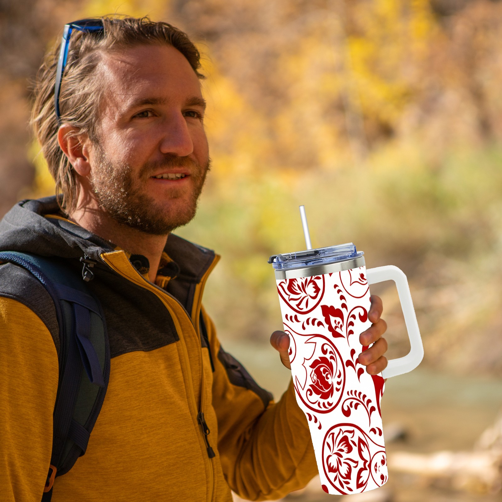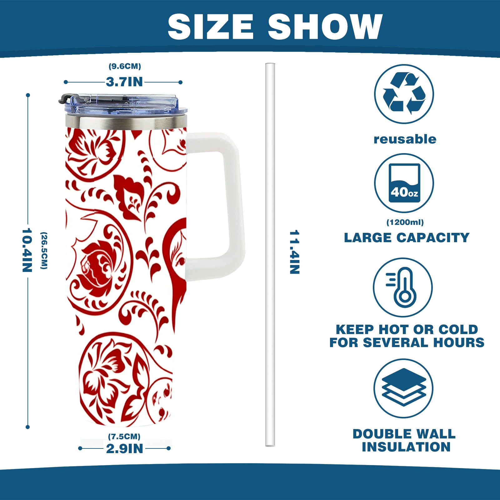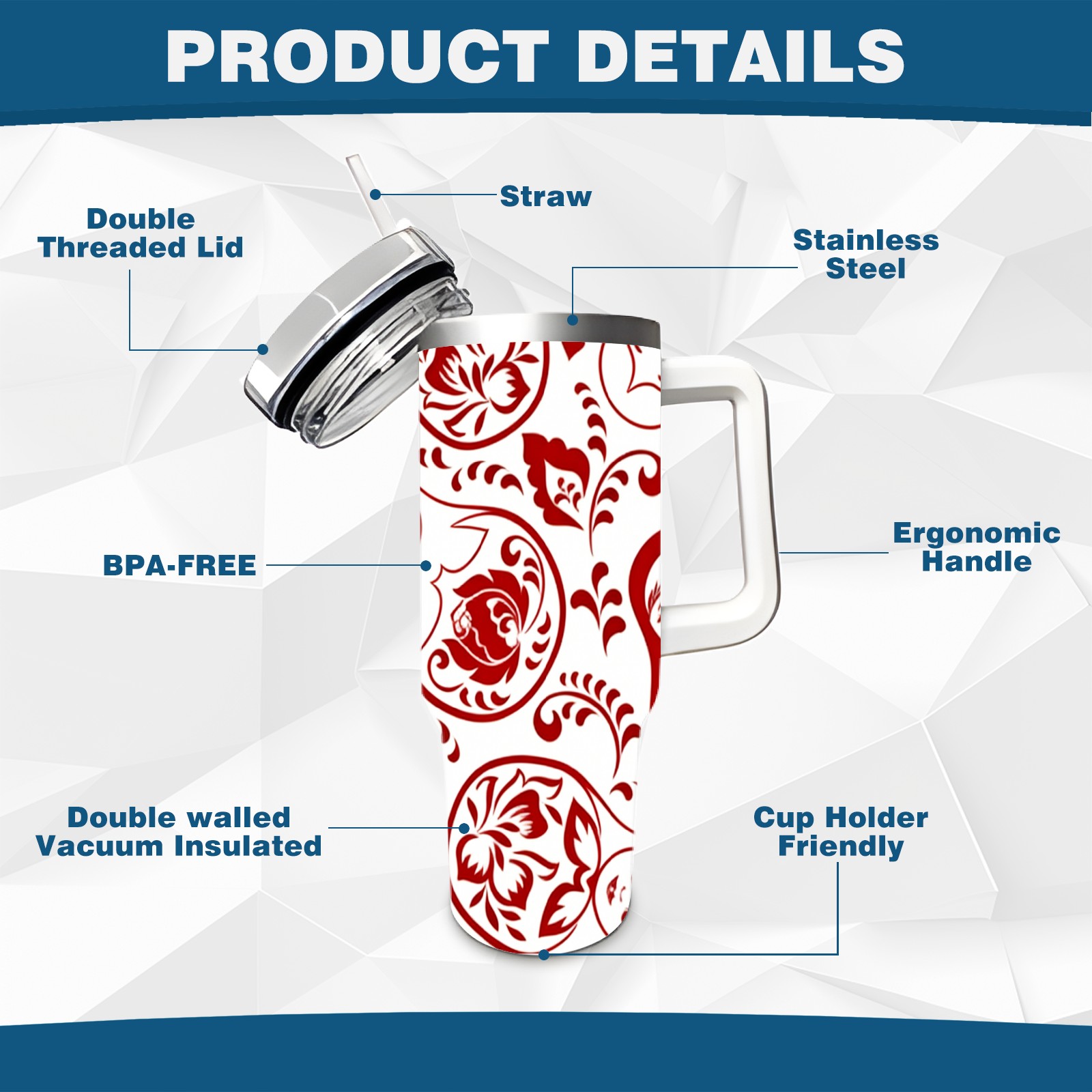 40 унций полностью напечатанный автомобильный стакан Intricate Patterns Red