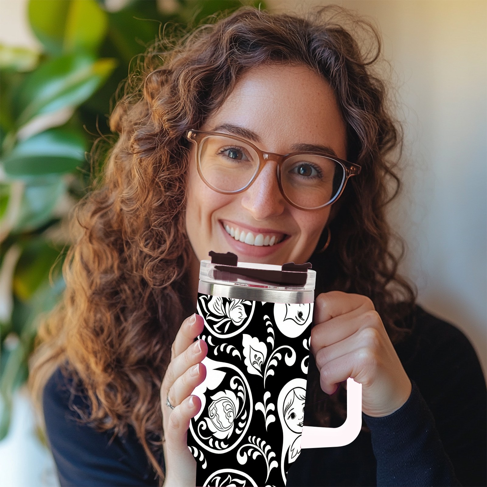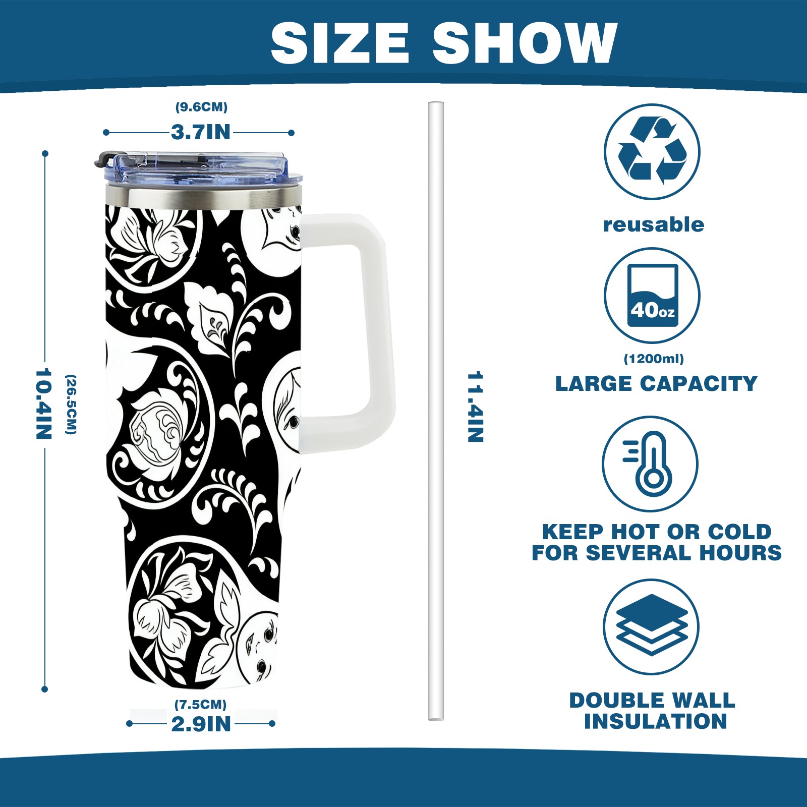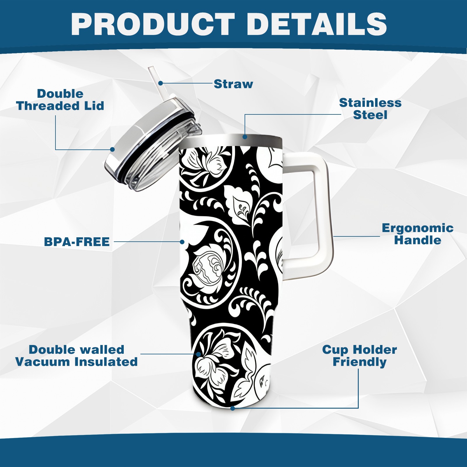40 унций полностью напечатанный автомобильный стакан Retro Patterns Black
