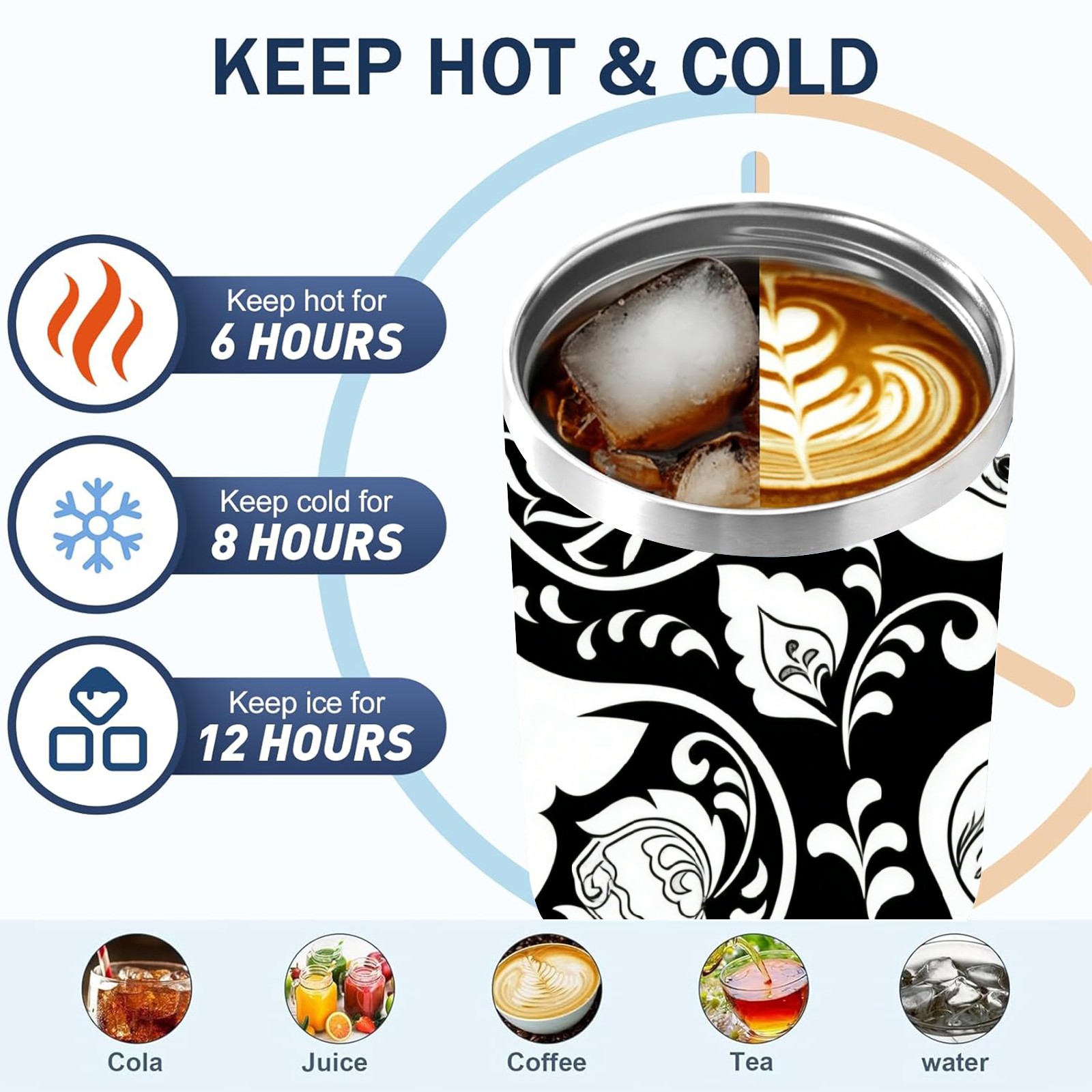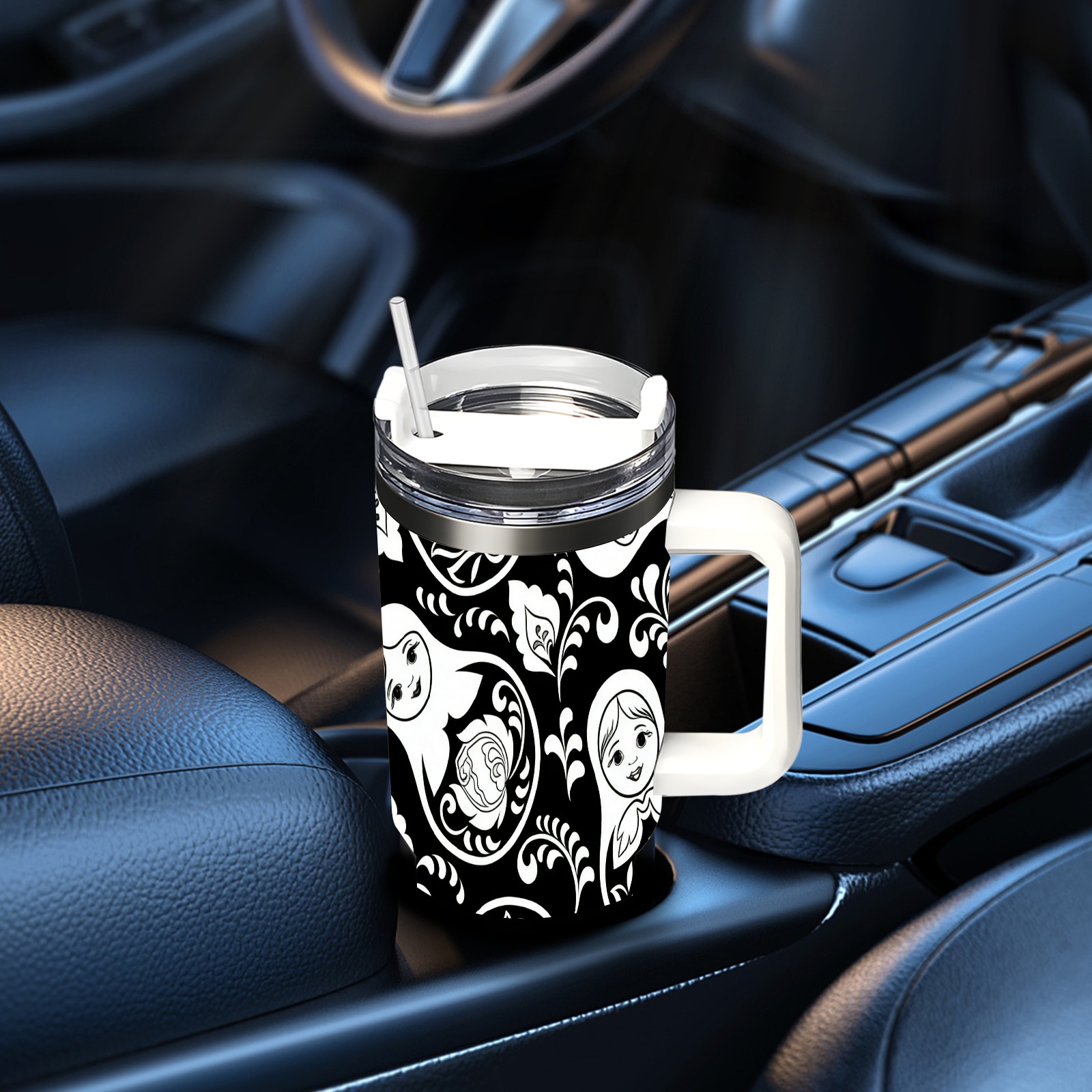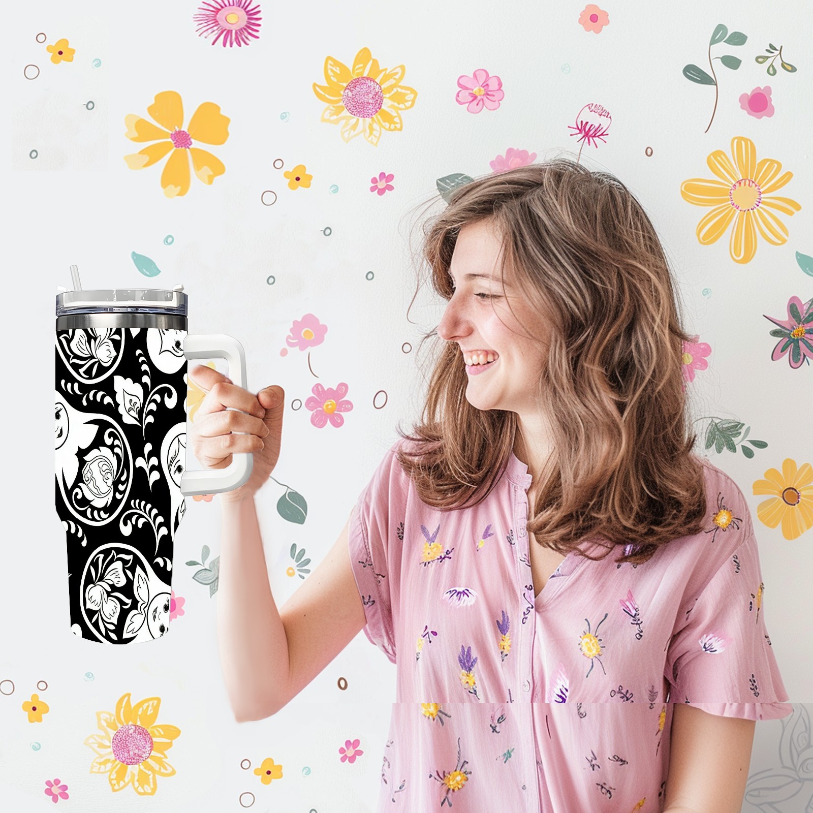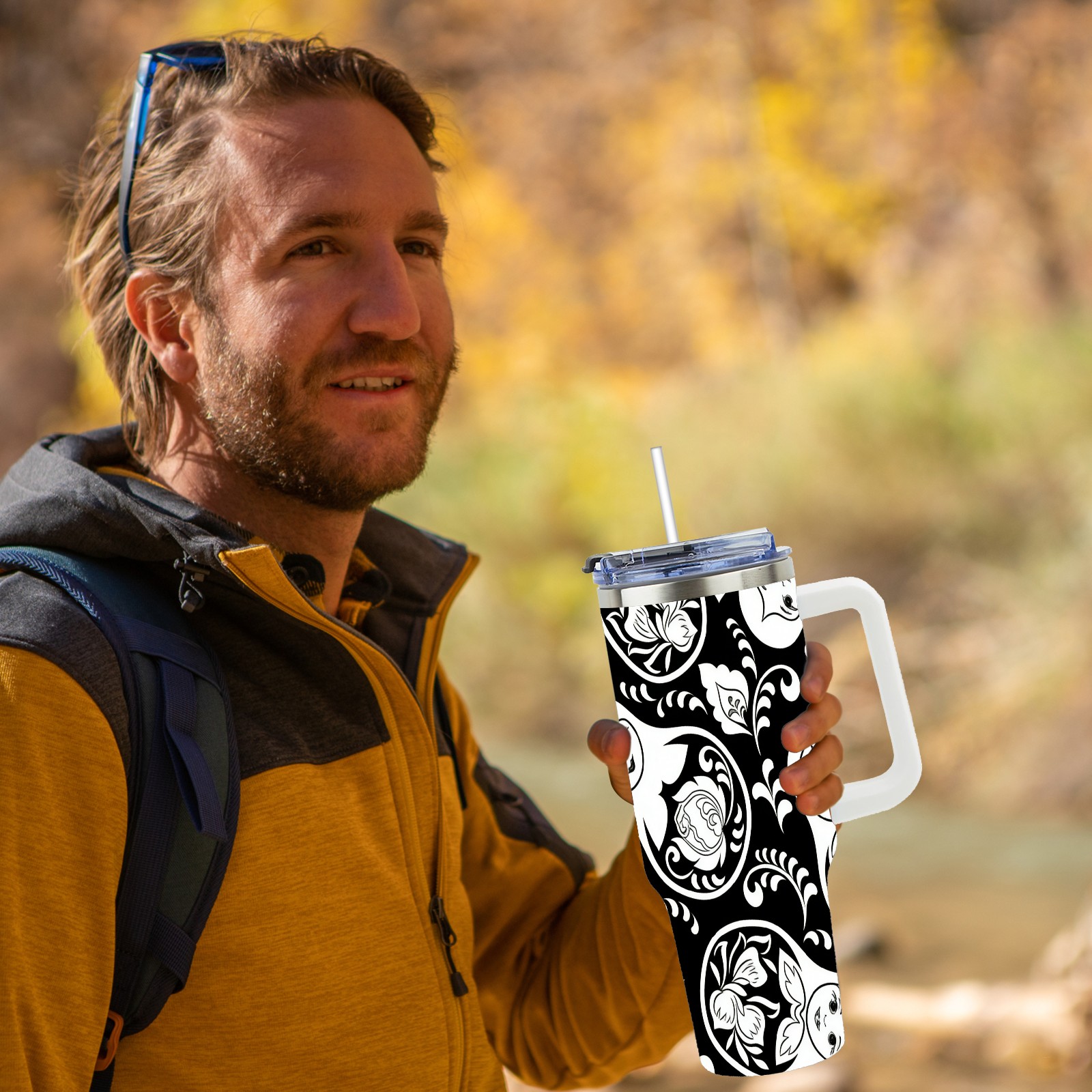 40 унций полностью напечатанный автомобильный стакан Retro Patterns Black