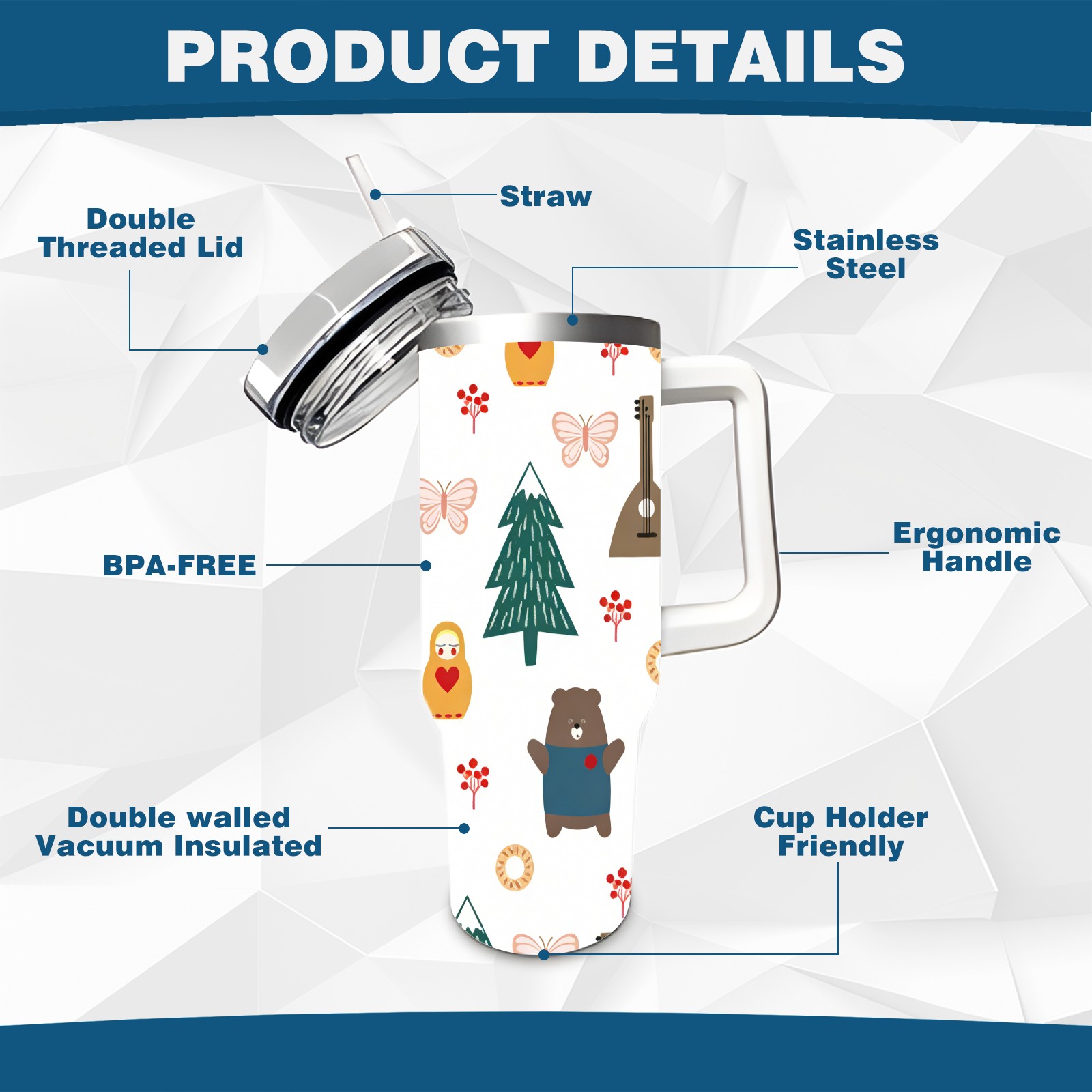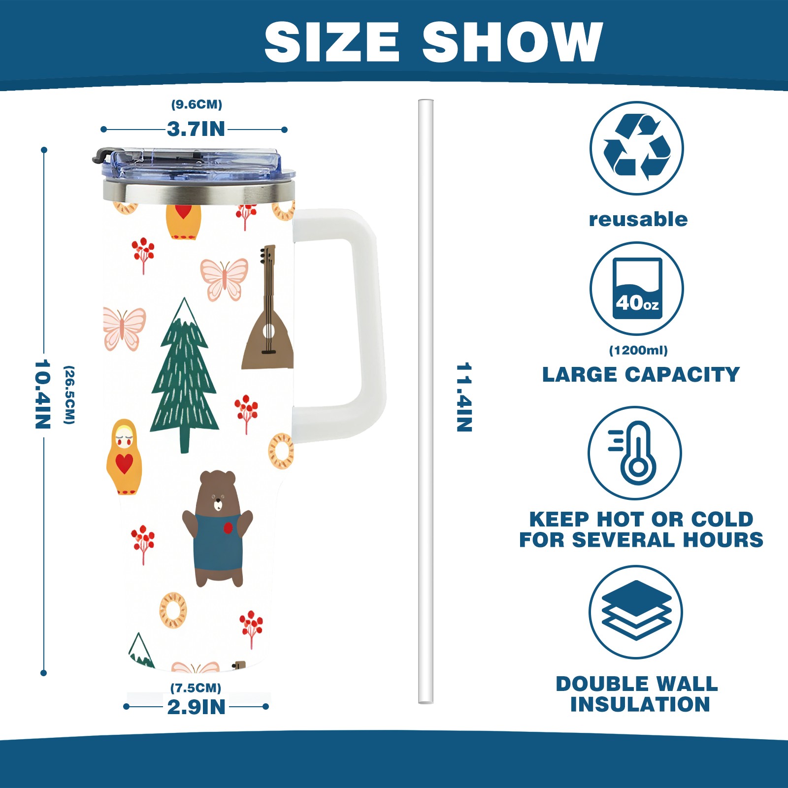 • С большой емкостью 40 унций, он обеспечивает вас гидратацией в течение всего дня, идеально подходит для воды, кофе, сока или других напитков. Эргономичный дизайн идеально вписывается в автомобильные держатели для бутылок, а прочный, герметичный колпачок предотвращает утечки во время передвижения. Путешествие. Антискользящее основание обеспечивает устойчивость, а гладкие поверхности делают уборку легкой — просто мойте вручную или кладите в посудомоечную машину (рекомендуется верхний поддон).