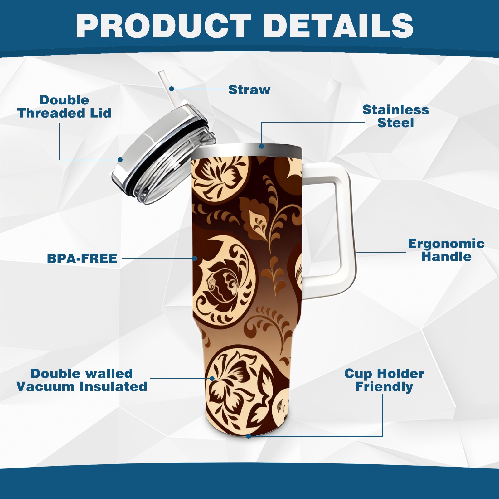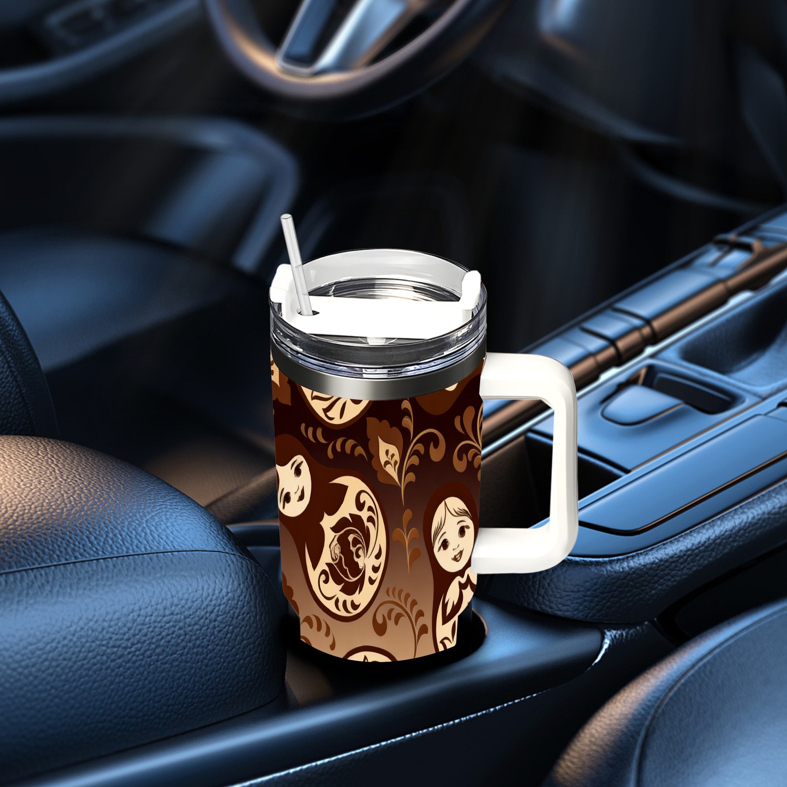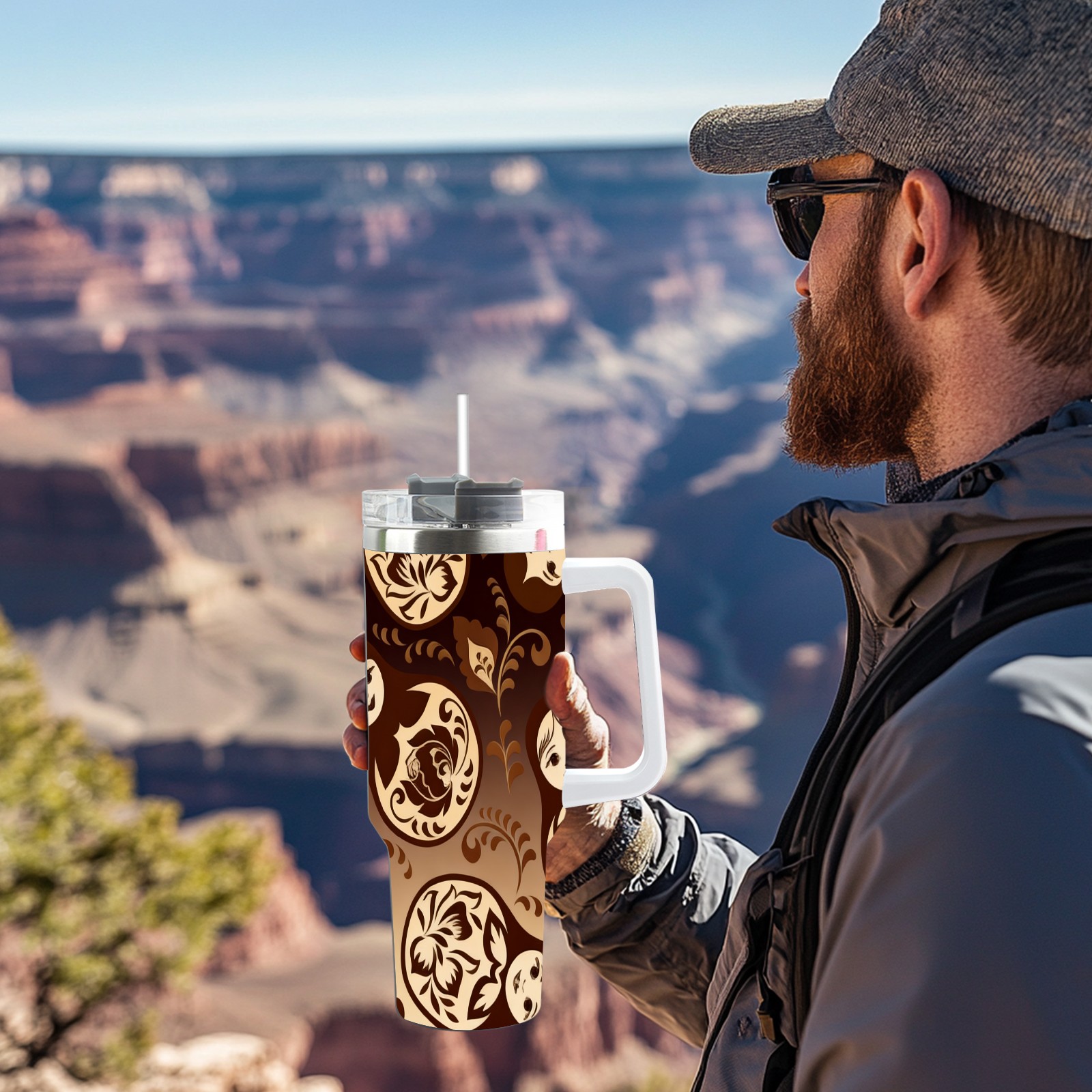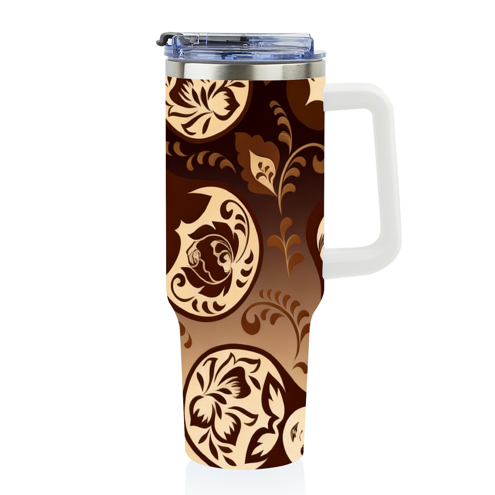 40 унций полностью напечатанный автомобильный стакан Vintage Patterns Brown