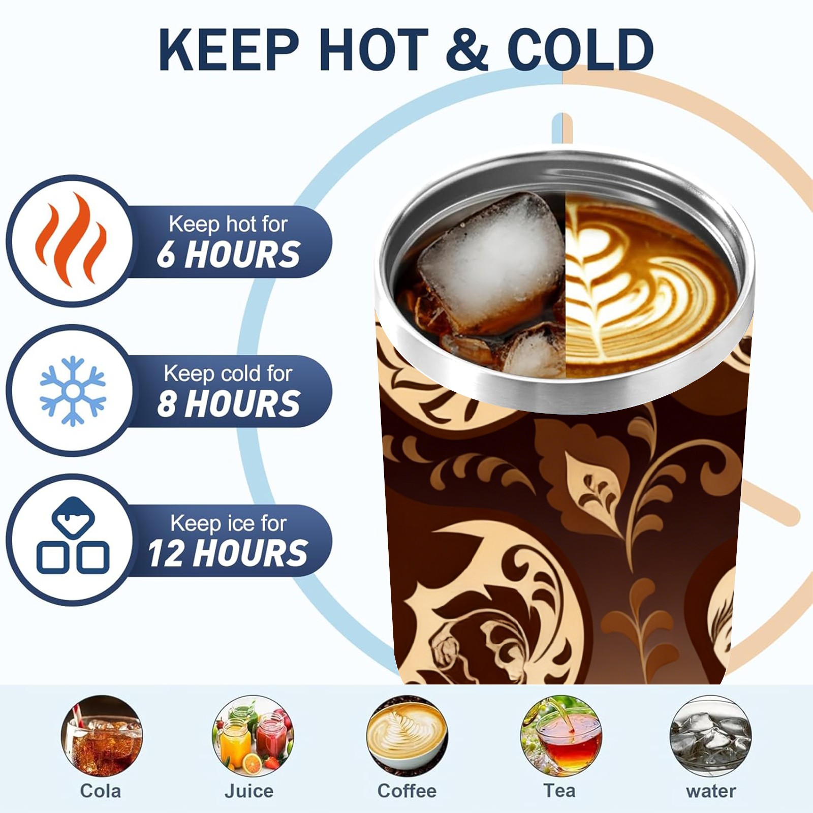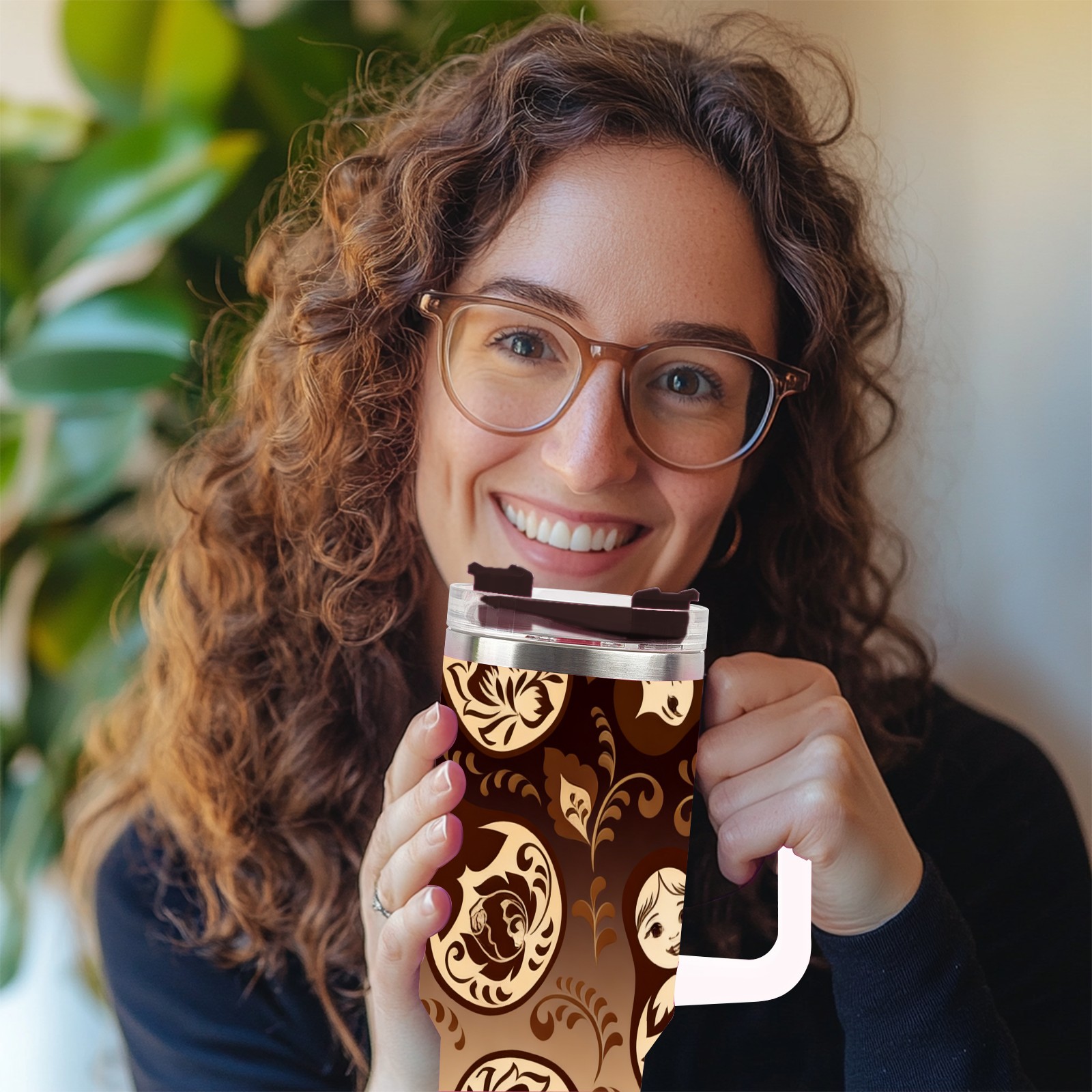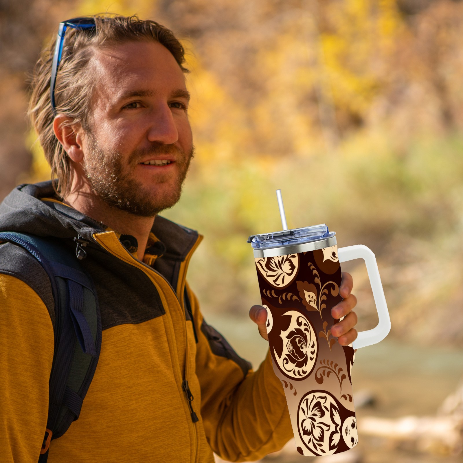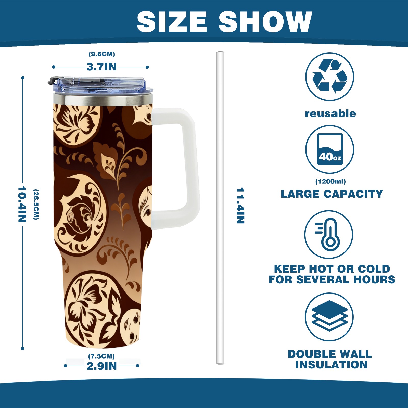 40 унций полностью напечатанный автомобильный стакан Vintage Patterns Brown