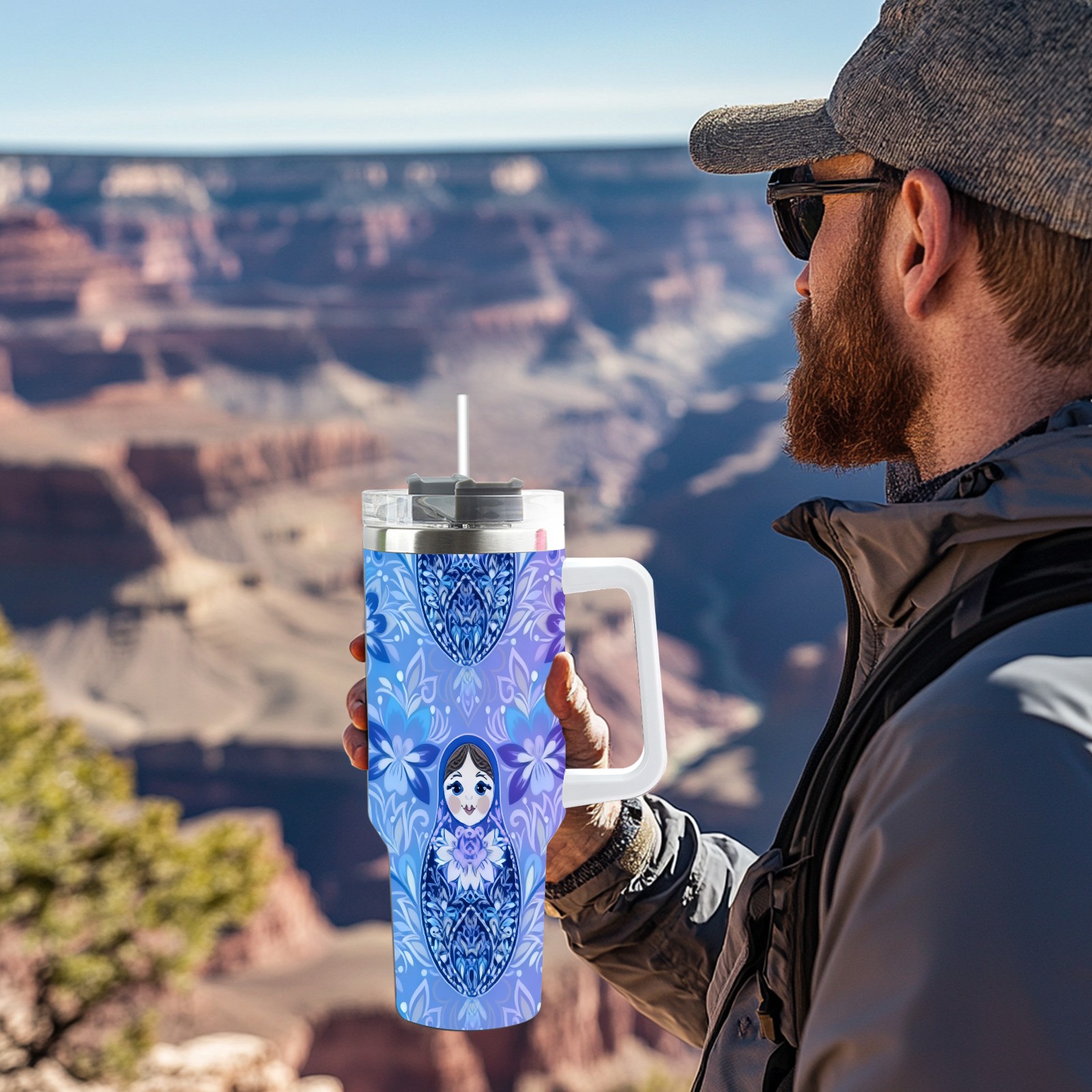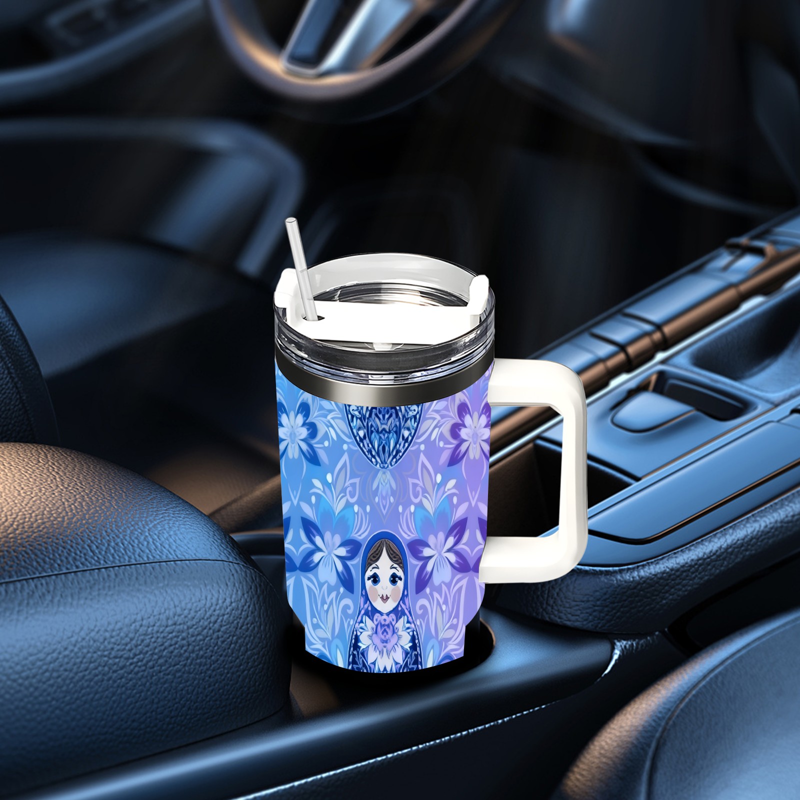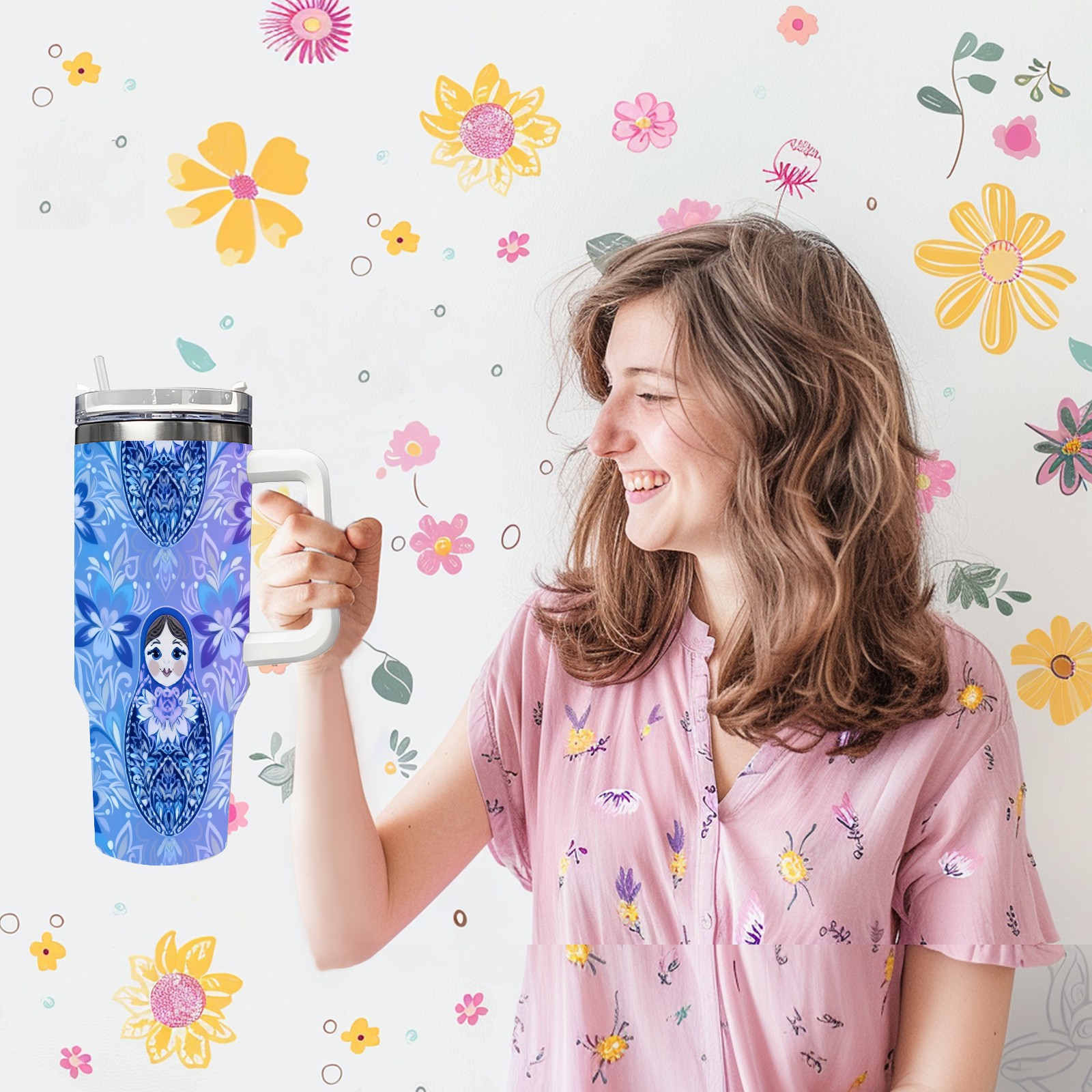 40 унций полностью напечатанный автомобильный стакан Dreamy Patterns Blue