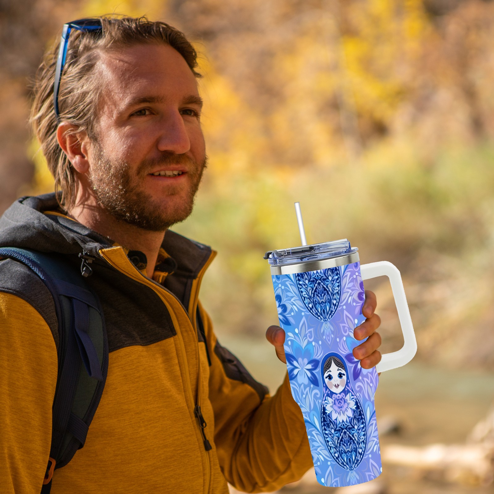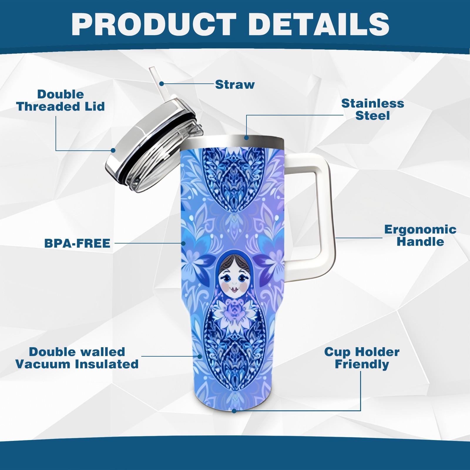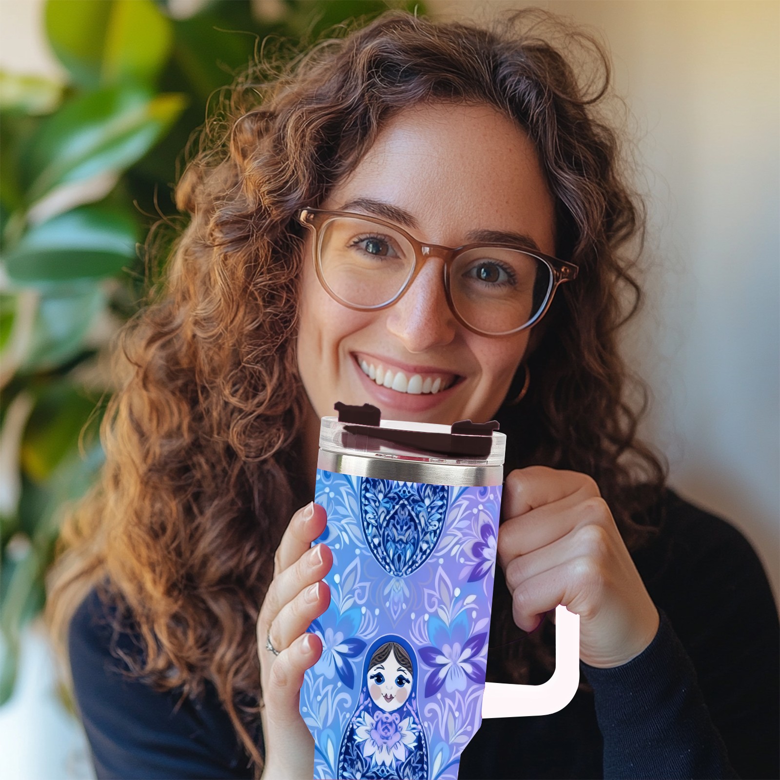 40 унций полностью напечатанный автомобильный стакан Dreamy Patterns Blue